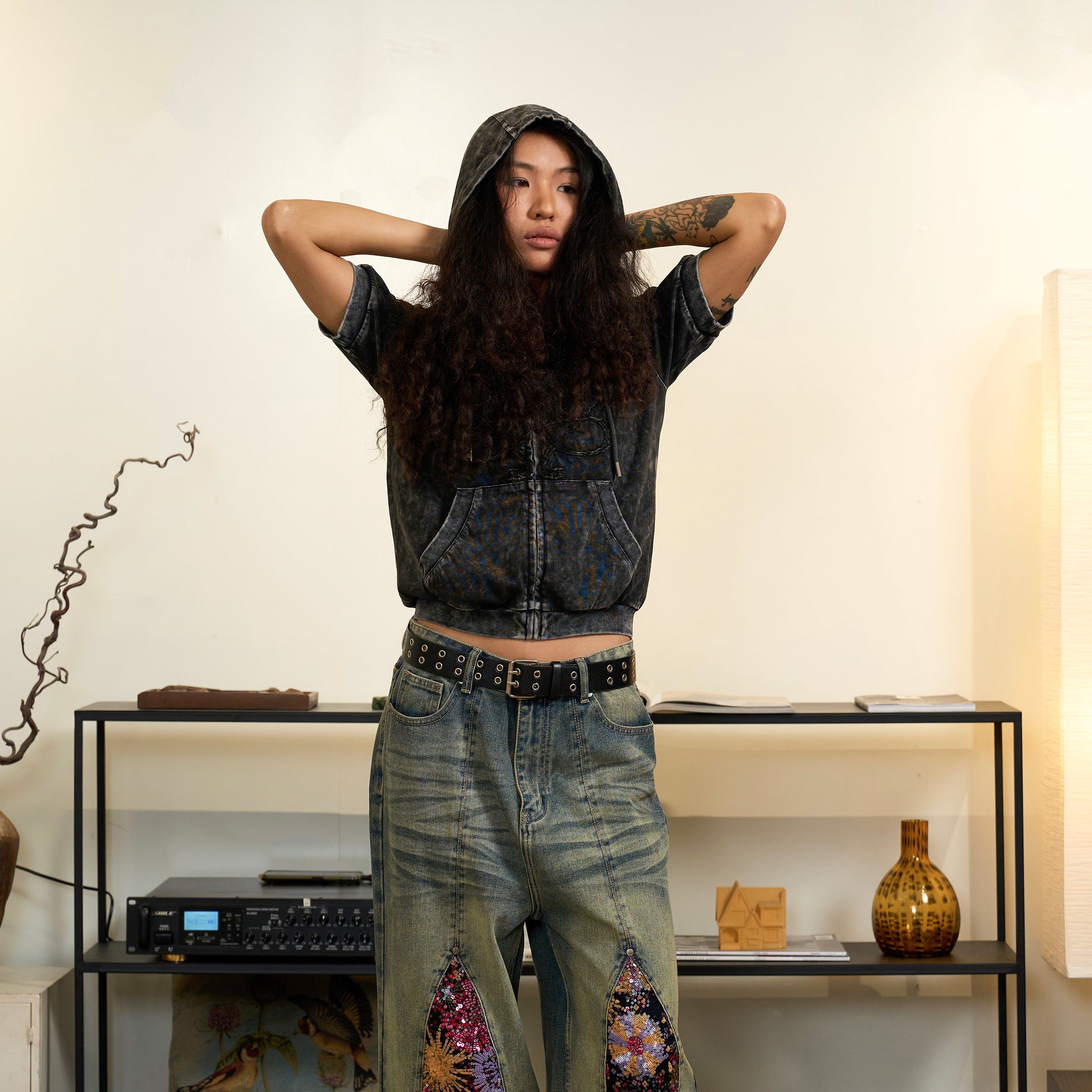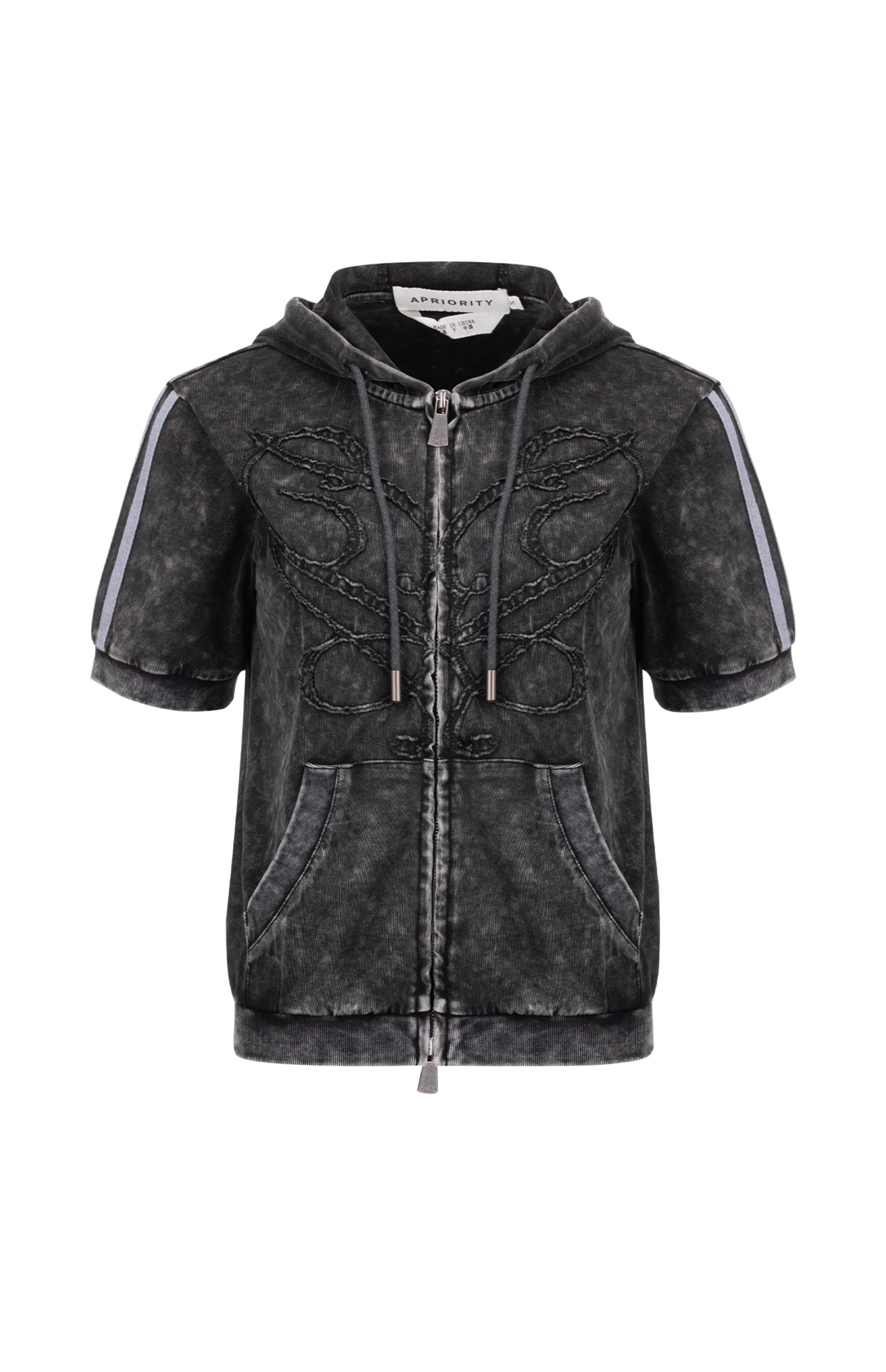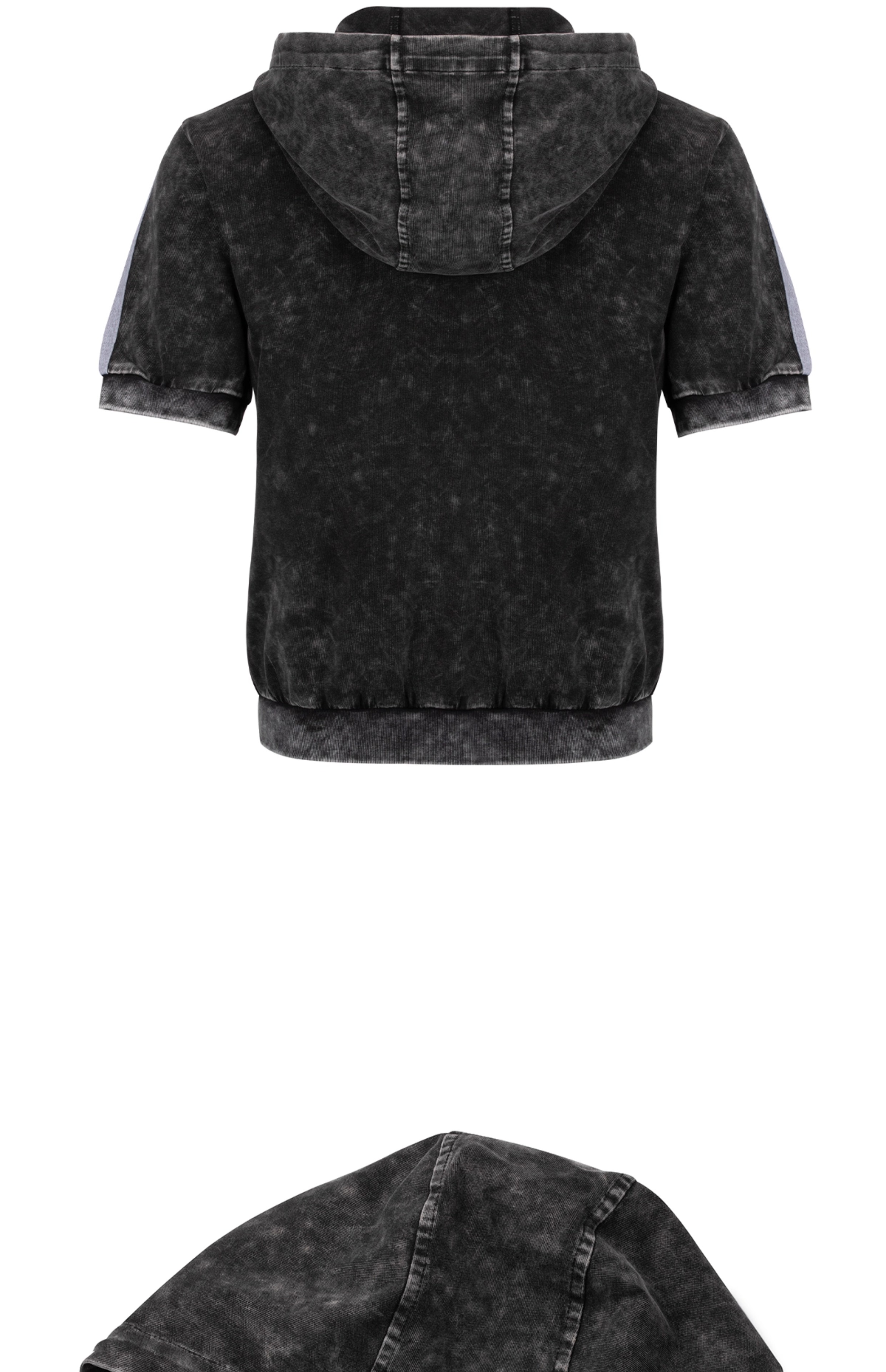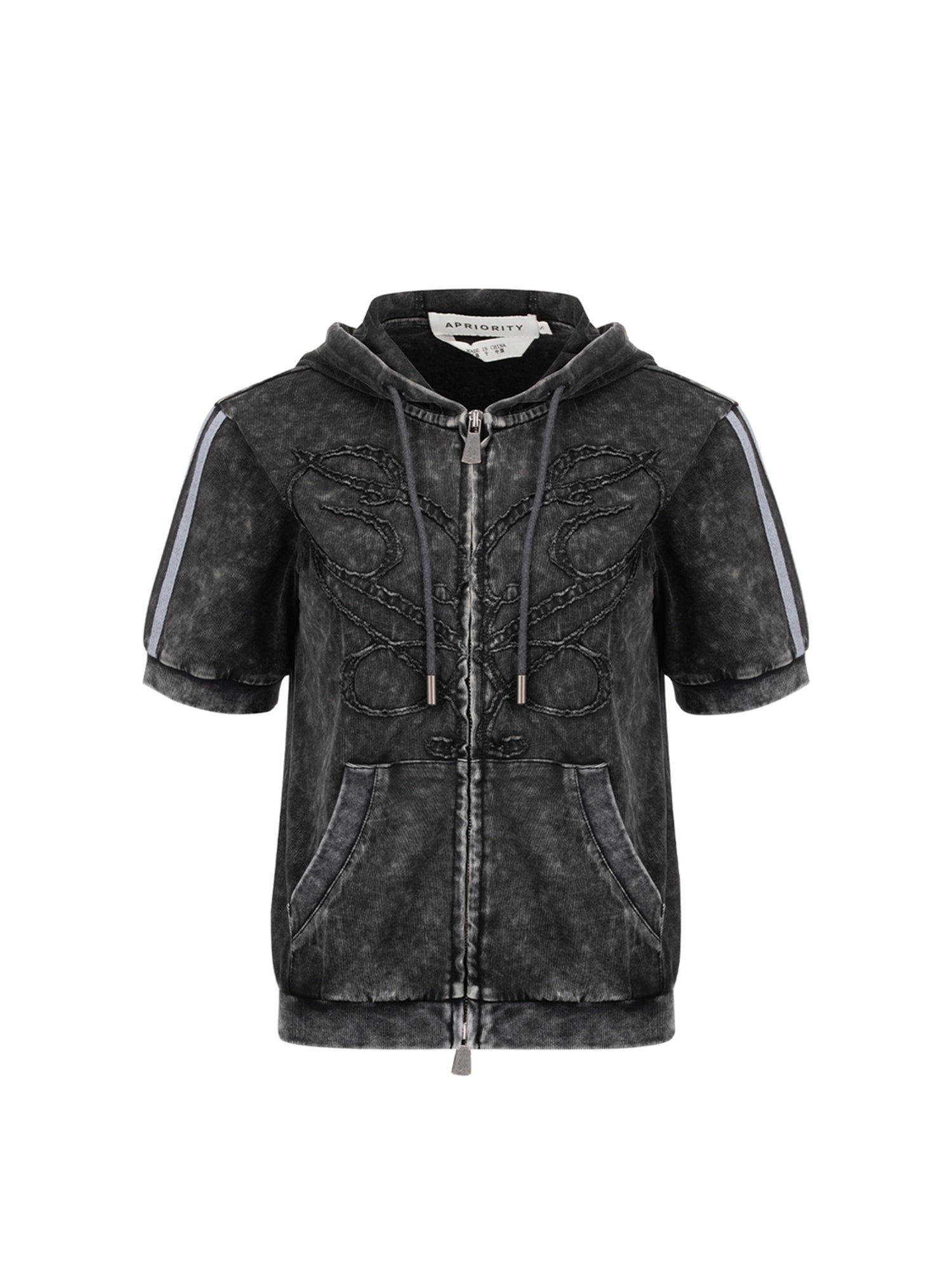 Wash Patch Embroidery Zipper Short Sleeve Hoodie WN18937