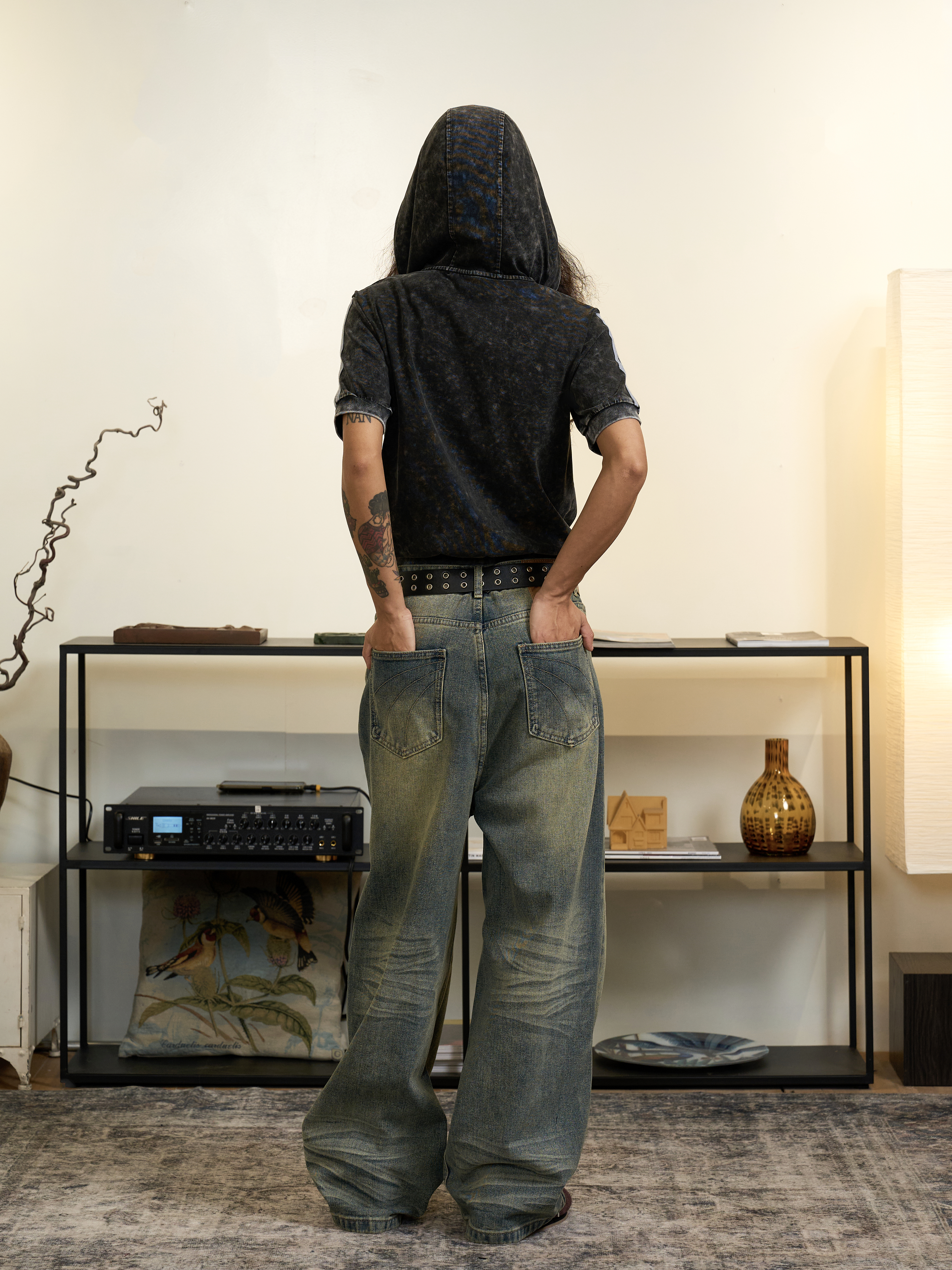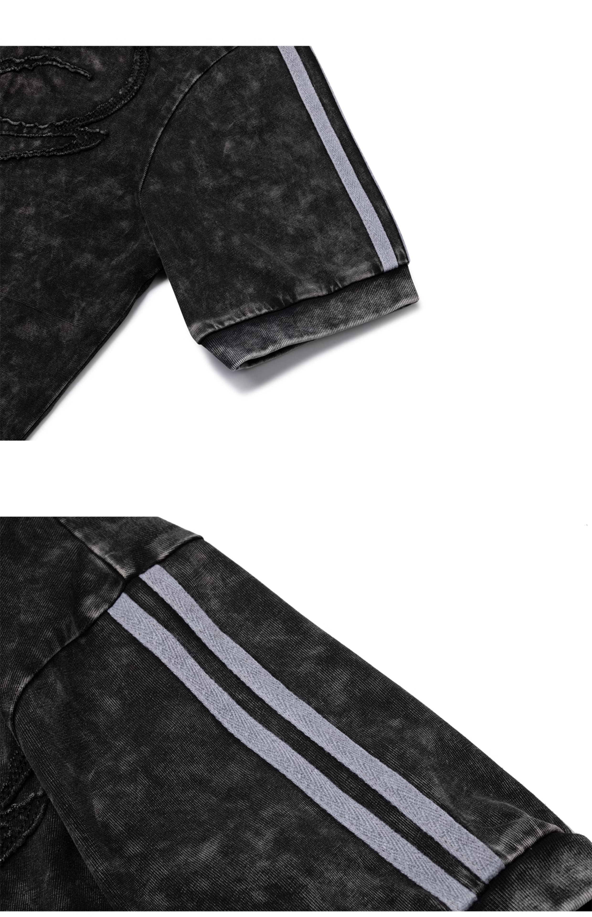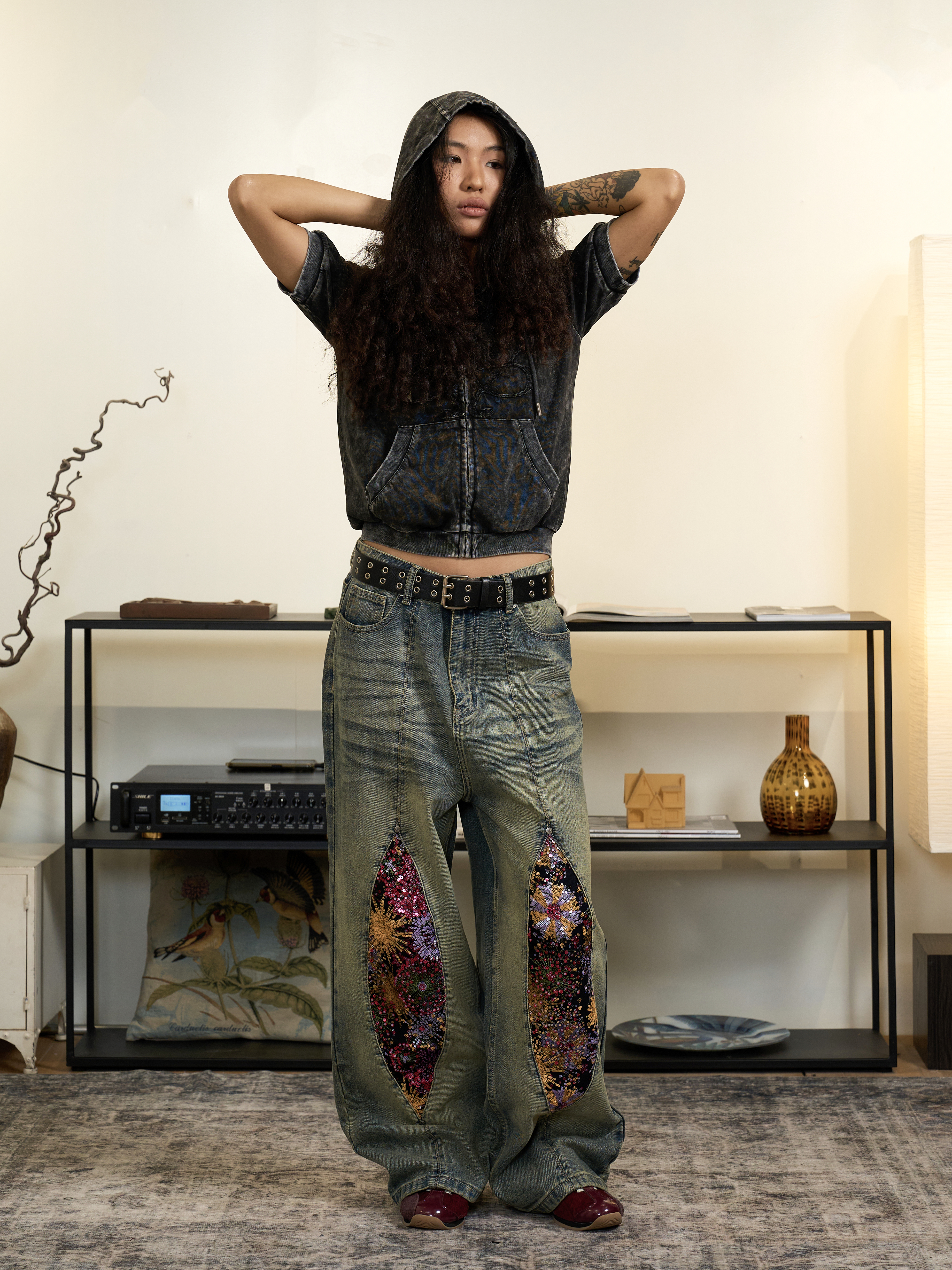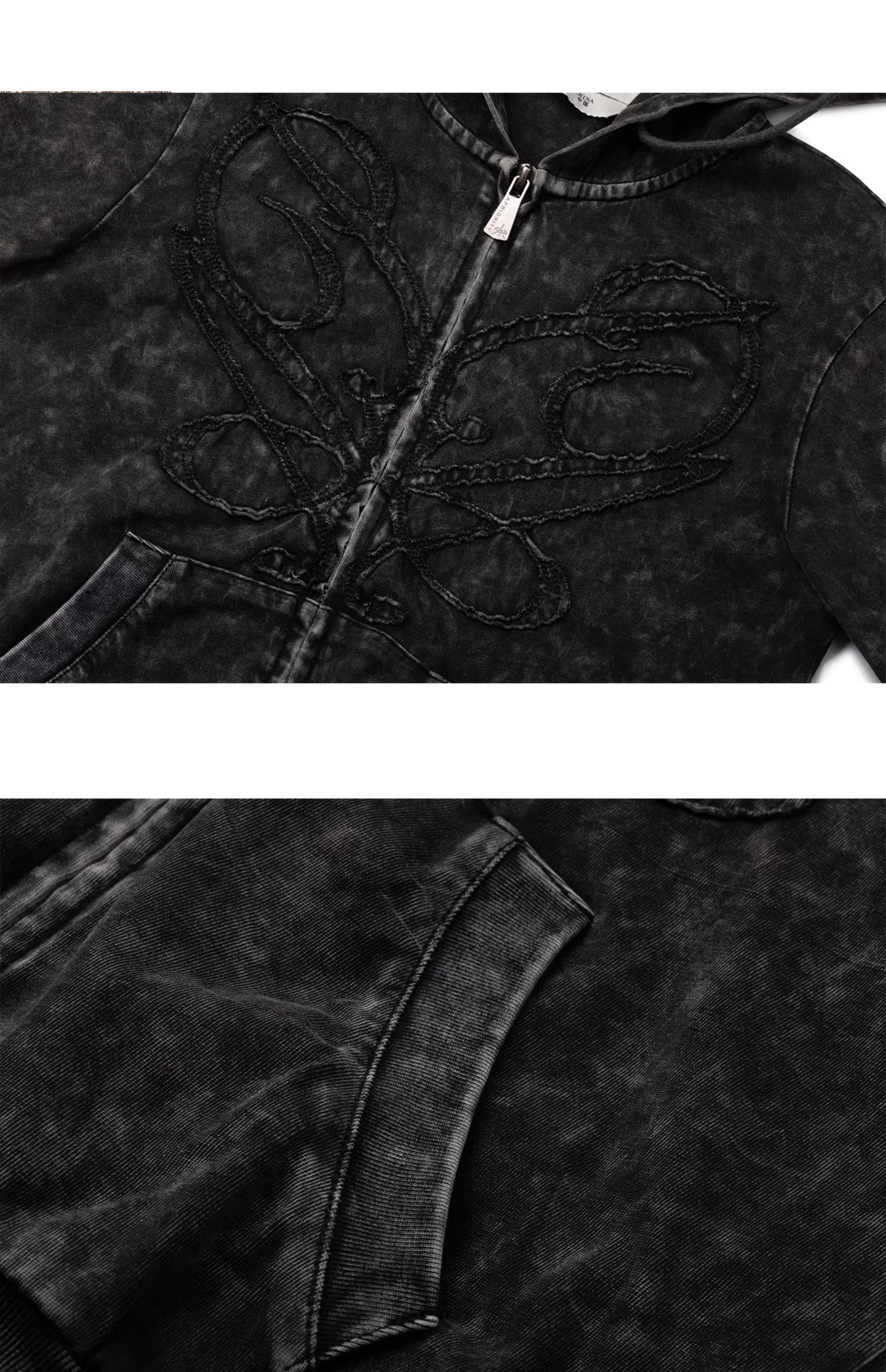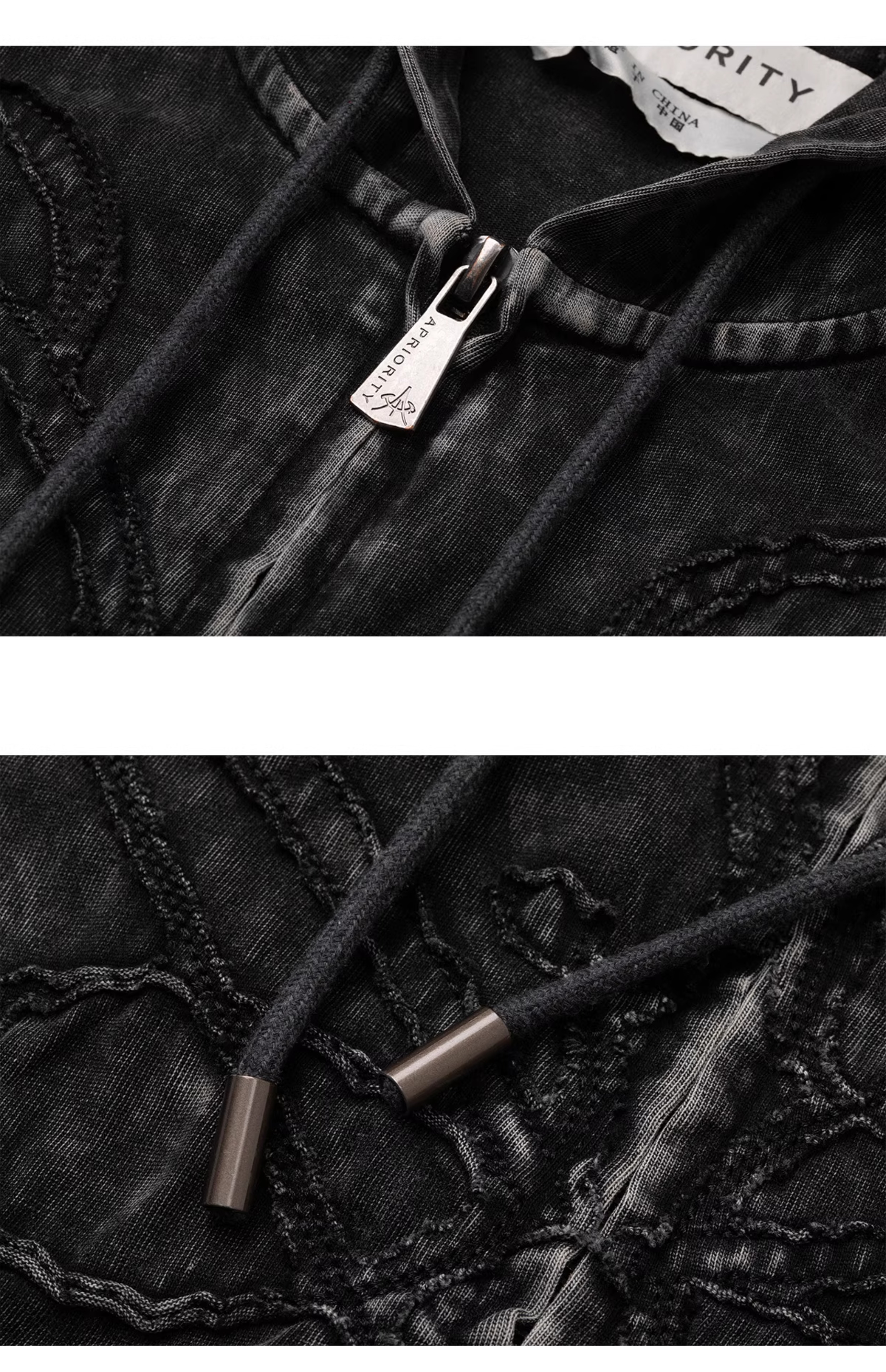 Wash Patch Embroidery Zipper Short Sleeve Hoodie WN18937