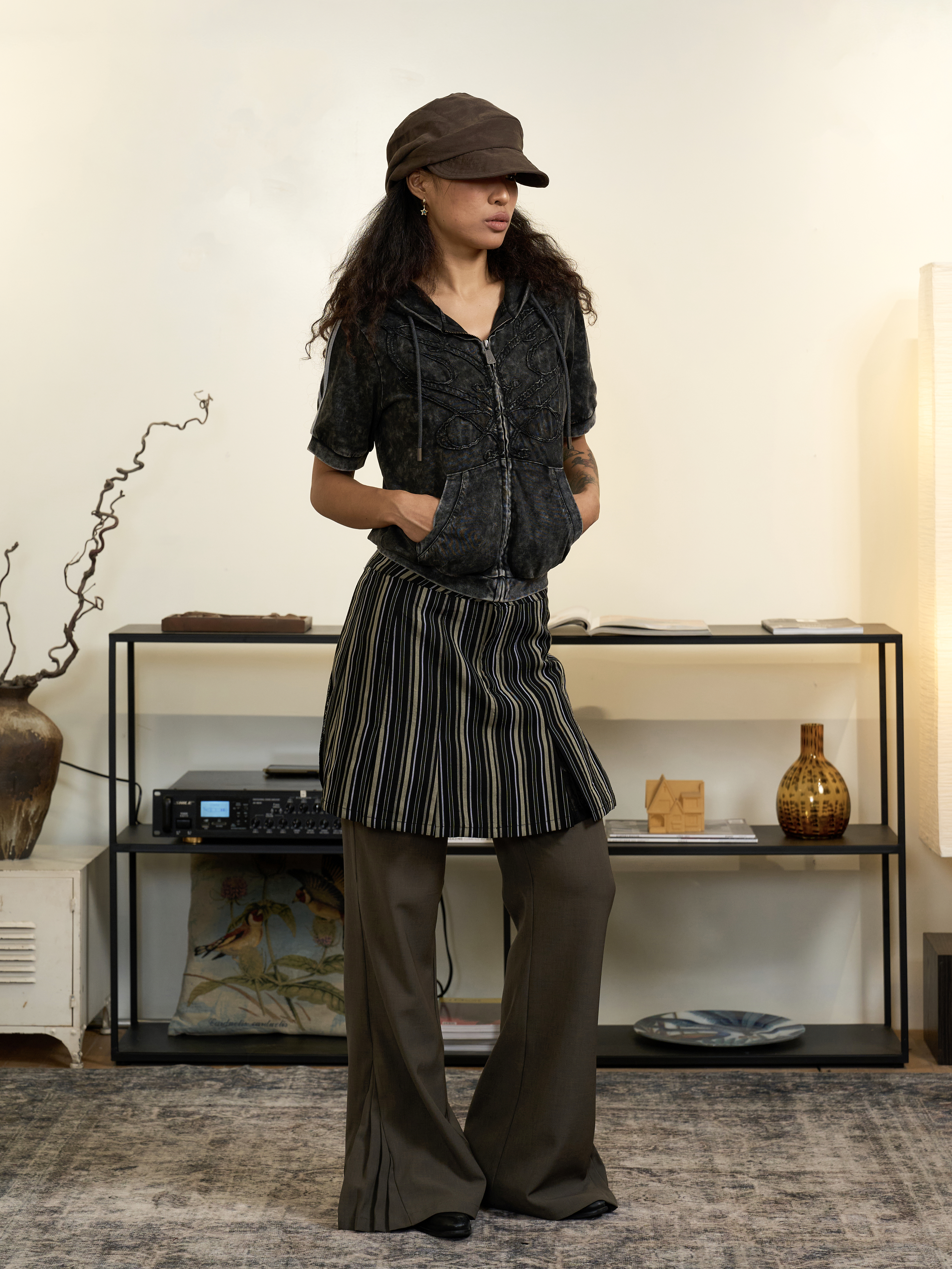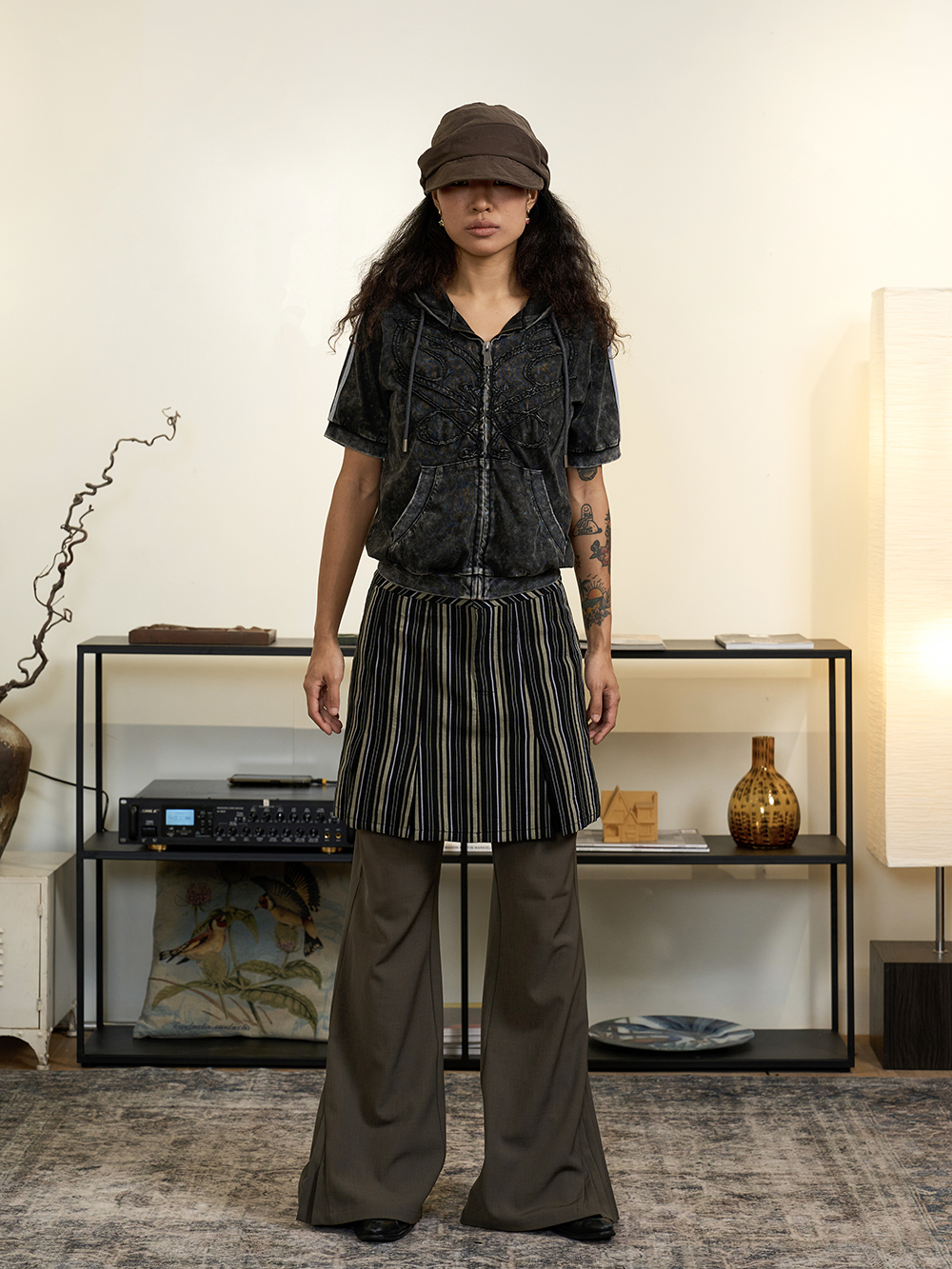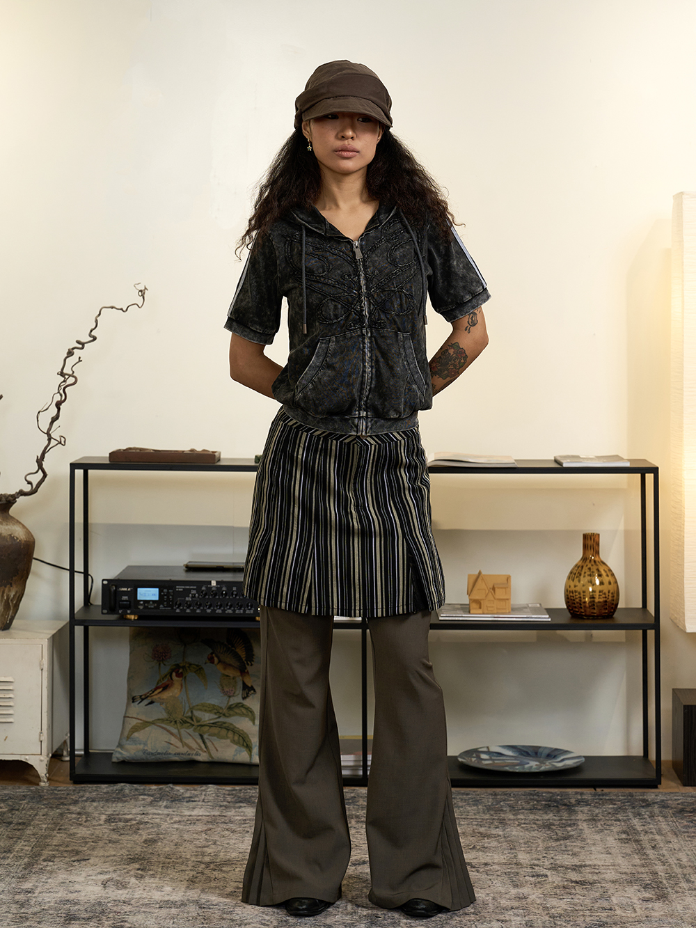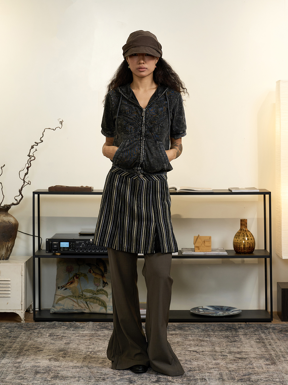 Wash Patch Embroidery Zipper Short Sleeve Hoodie WN18937