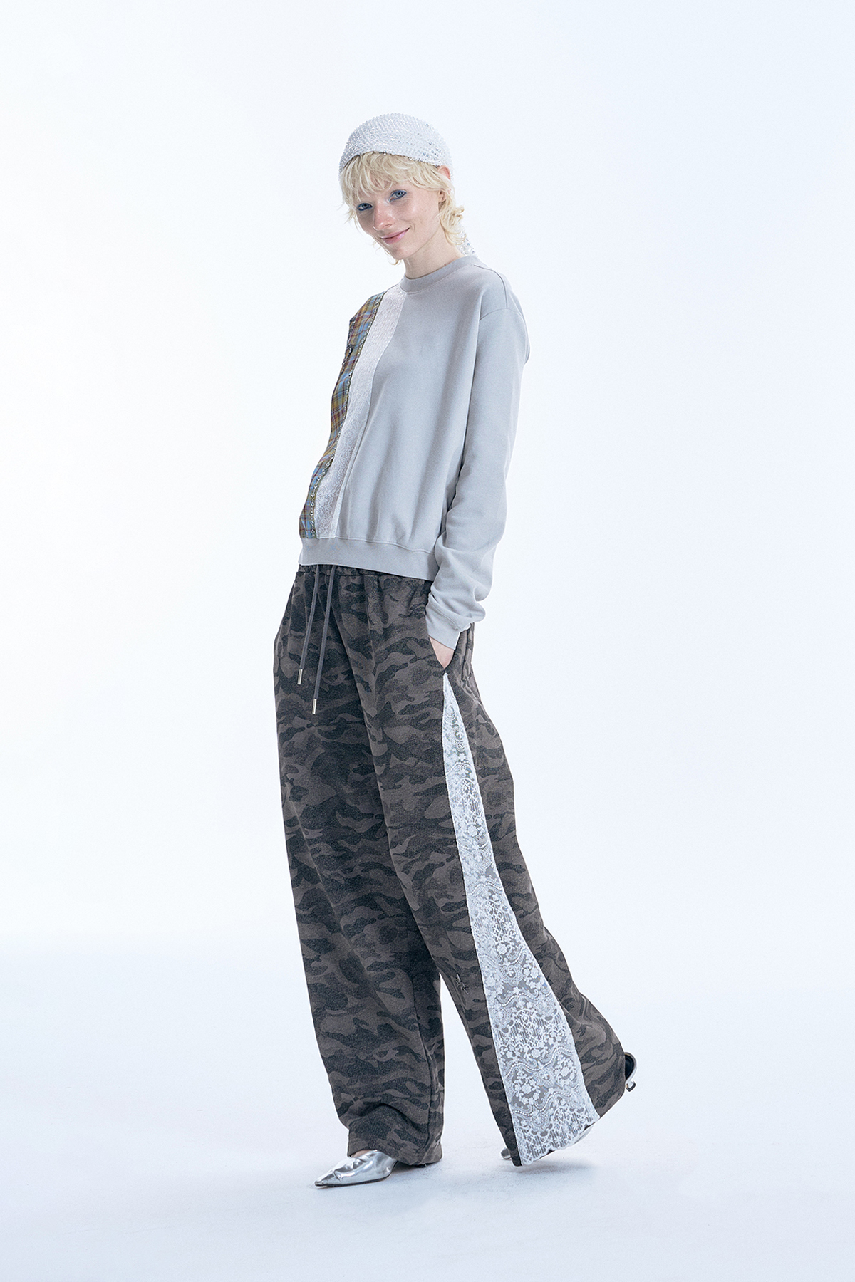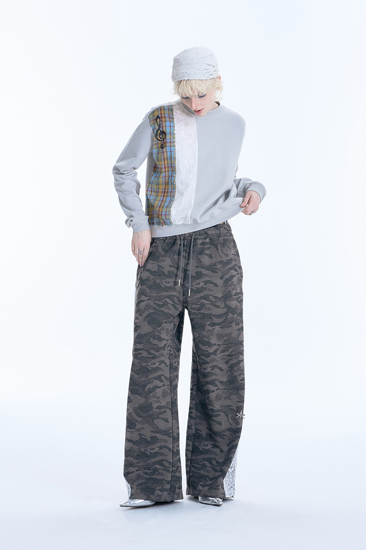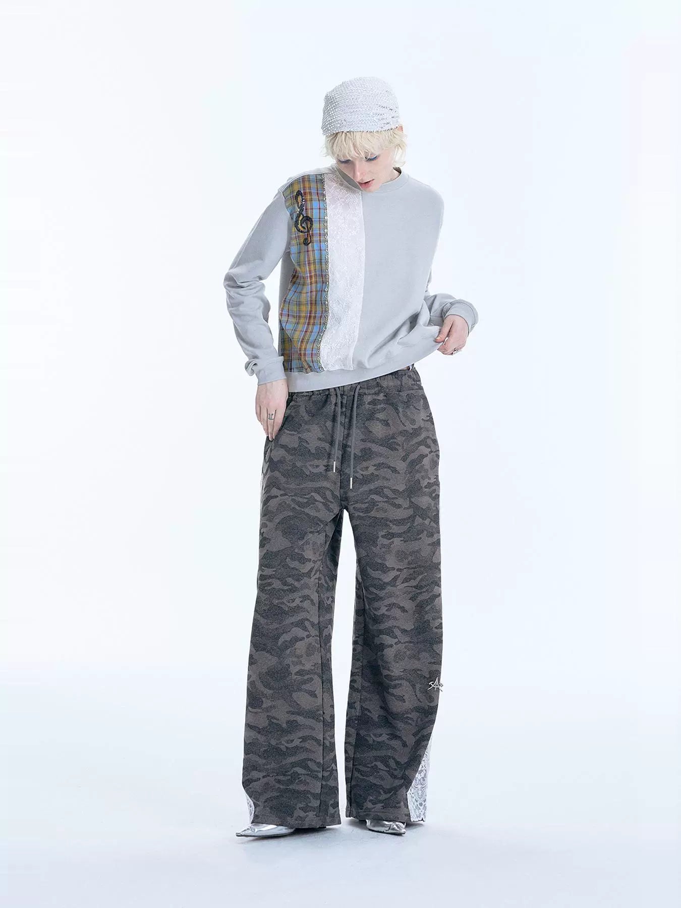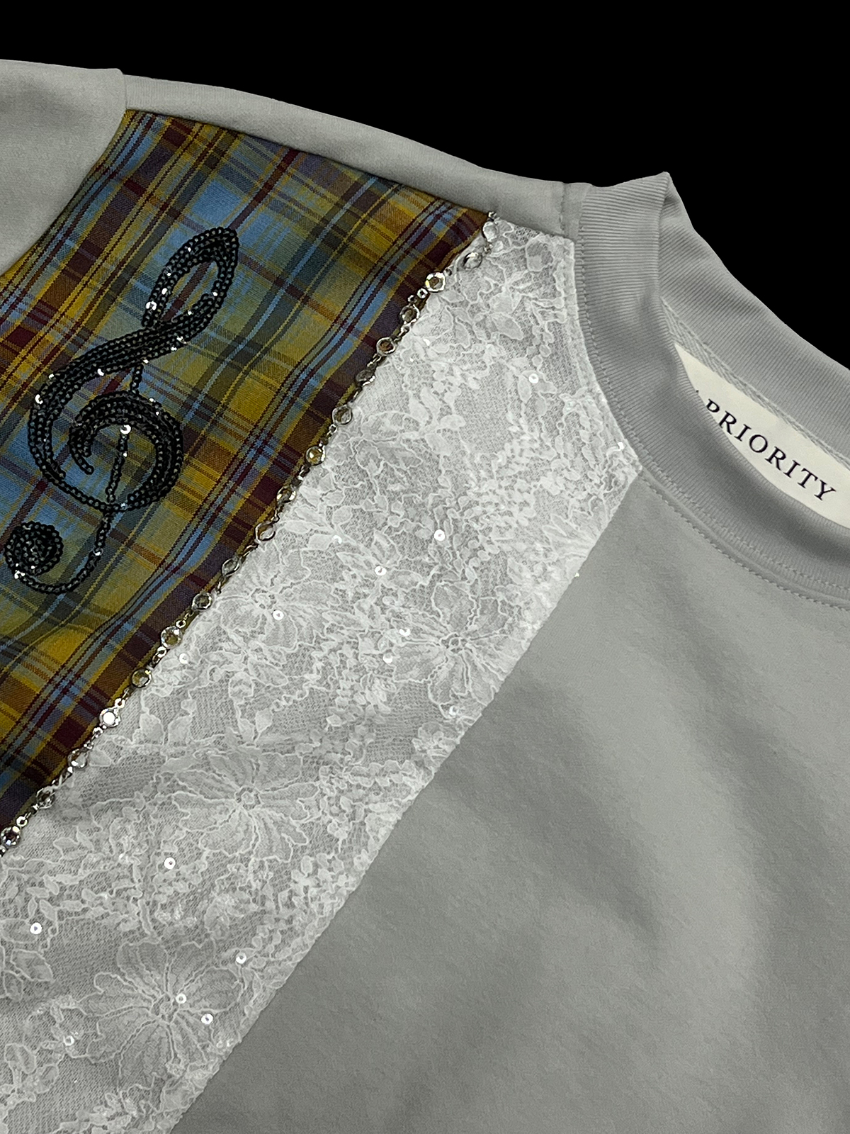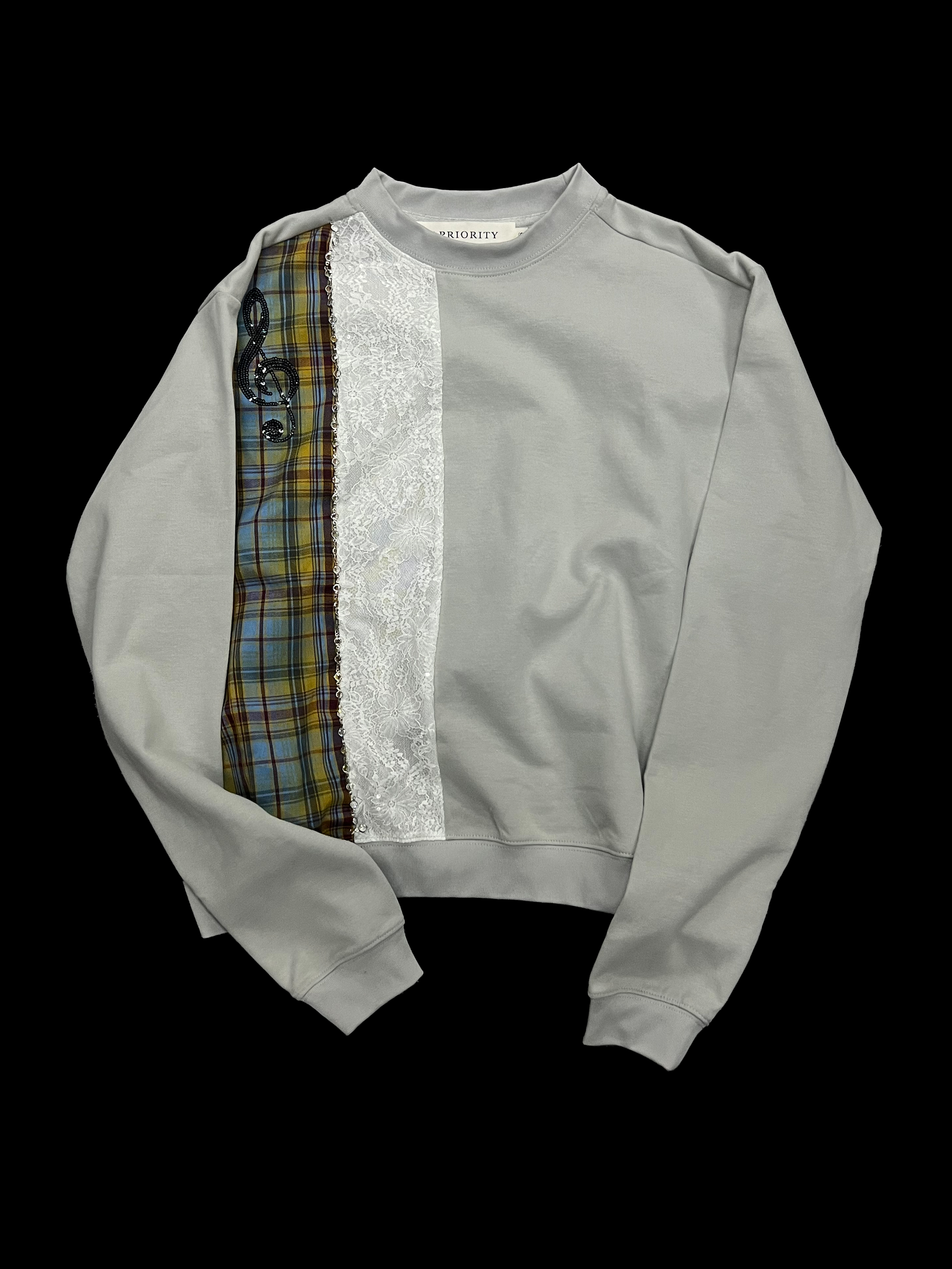 Patchwork Lace Cutout Sequin Embroidery Sweatshirt WN18947