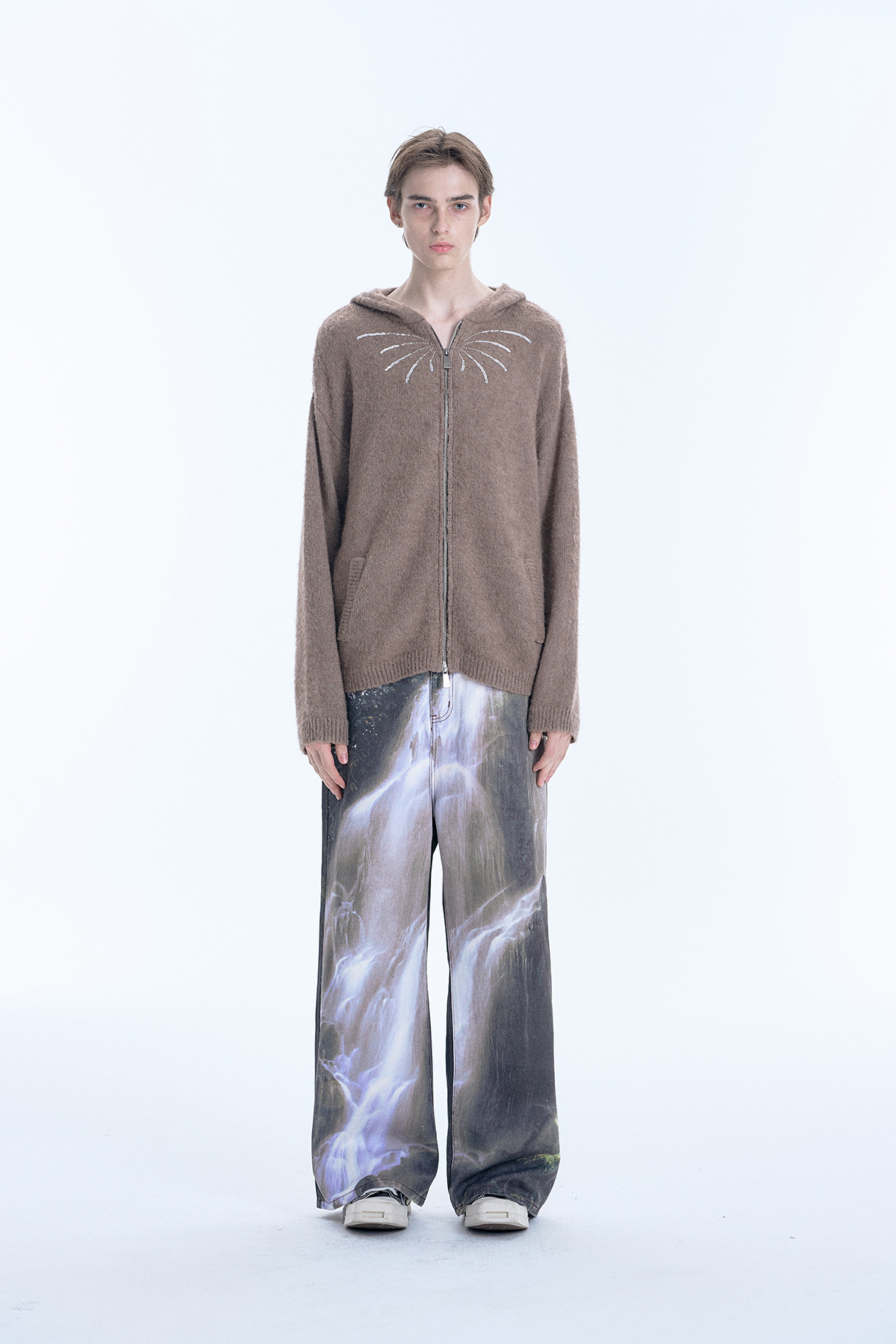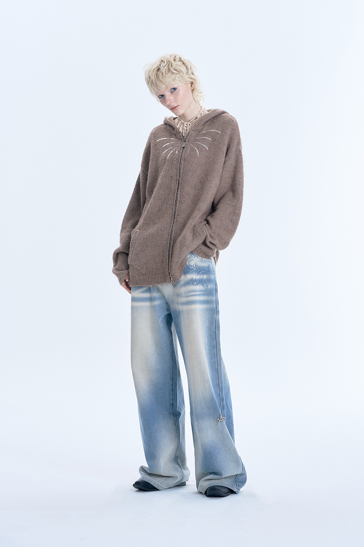 Sequin Embroidery Wool Zipper Hoodie WN18949