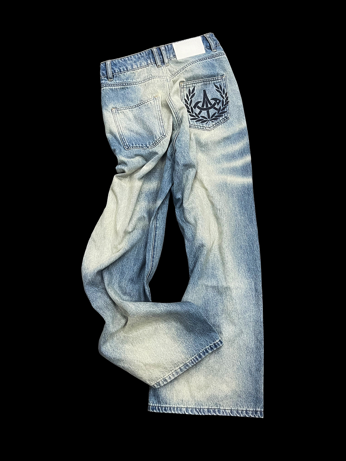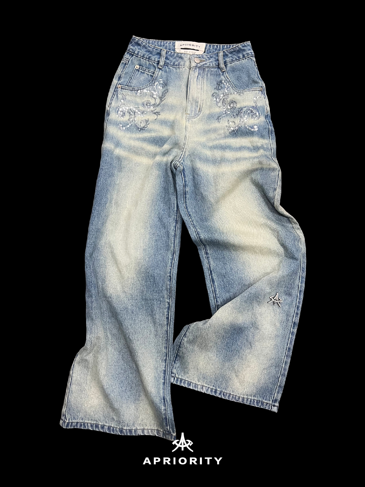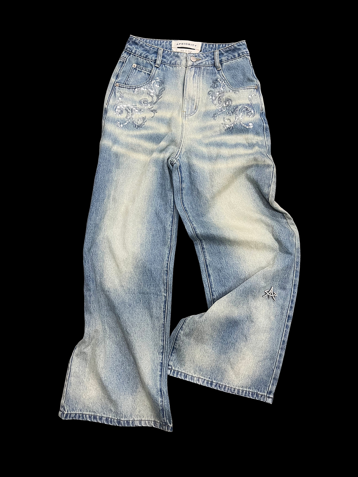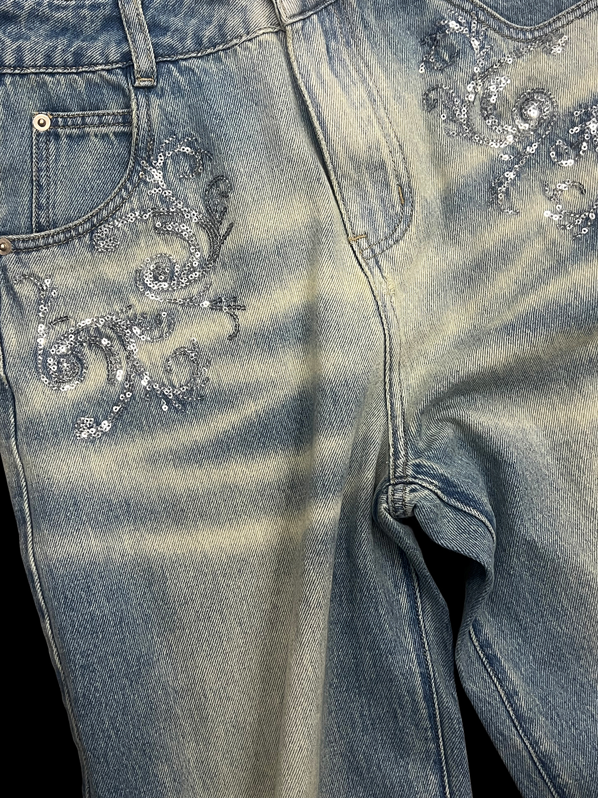 Faust Sequin Embroidery Washed Denim Jeans WN19041