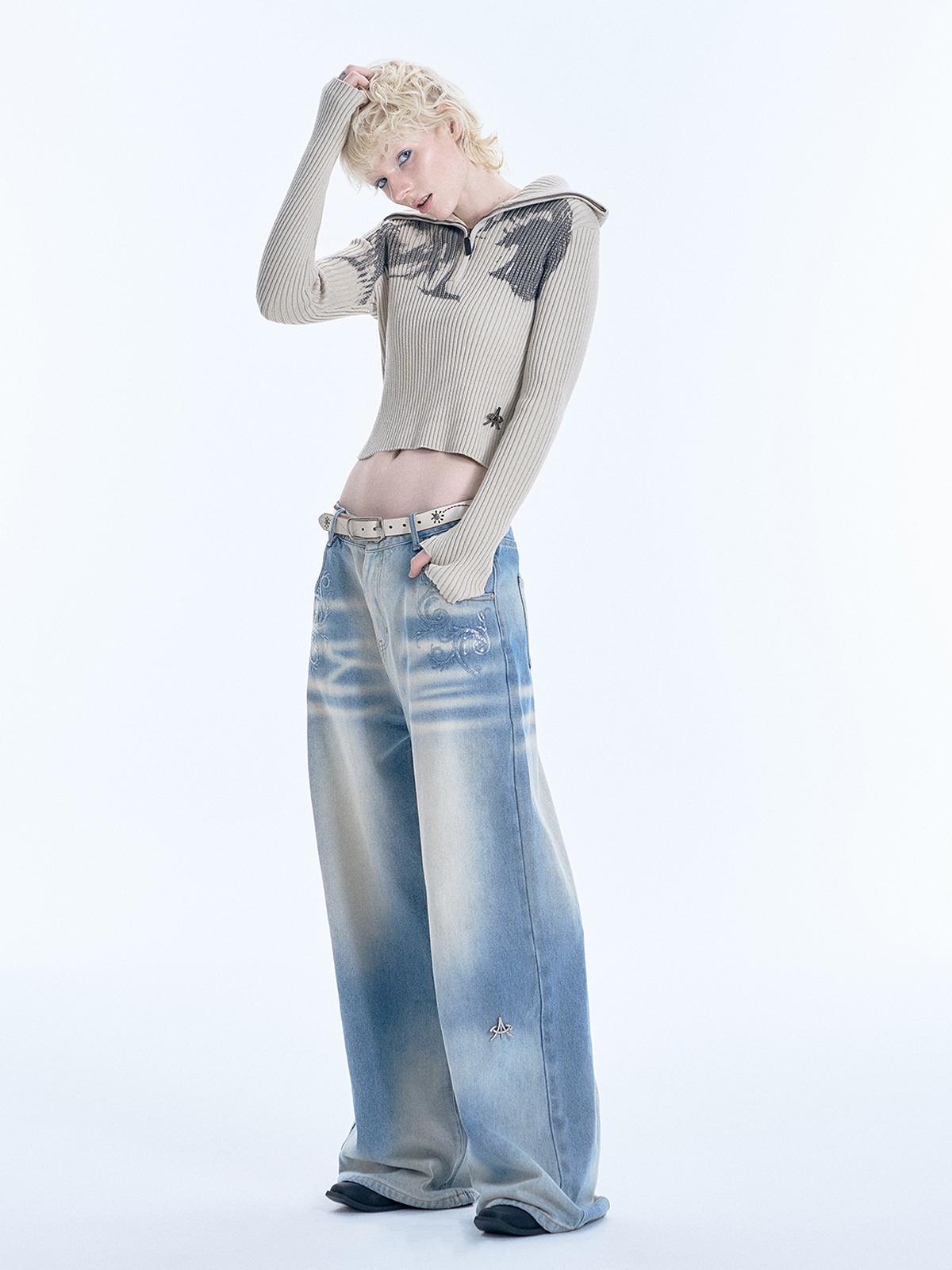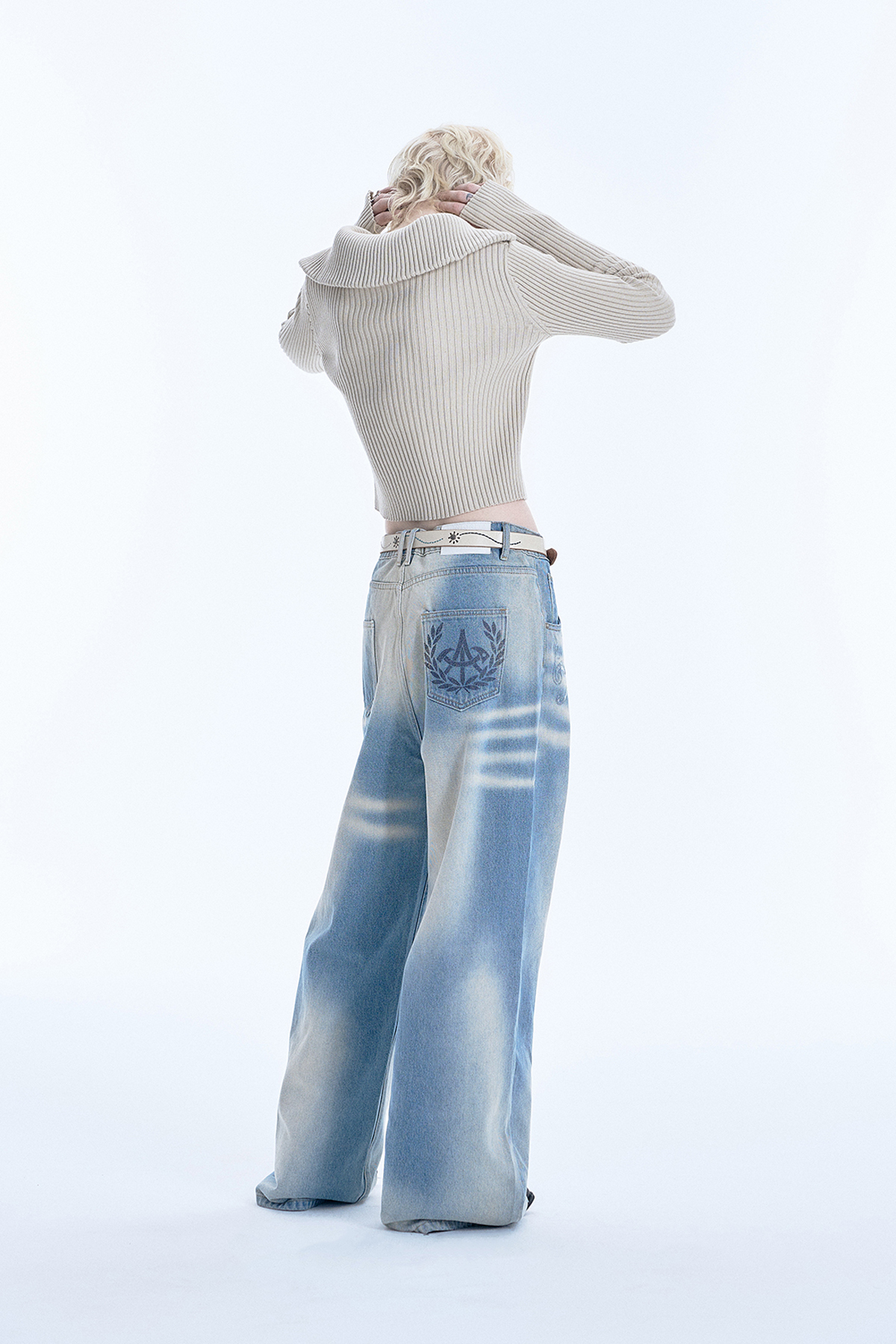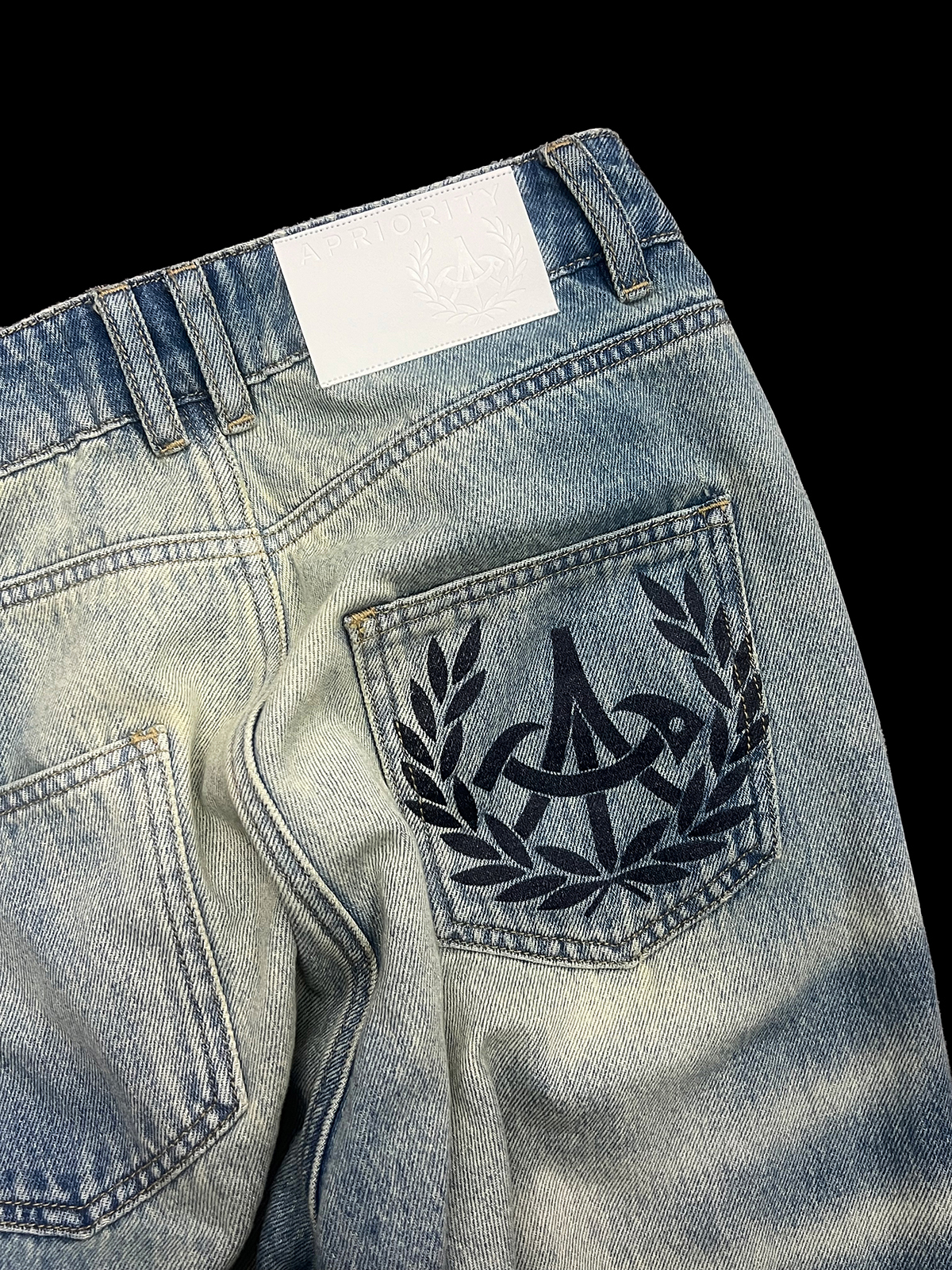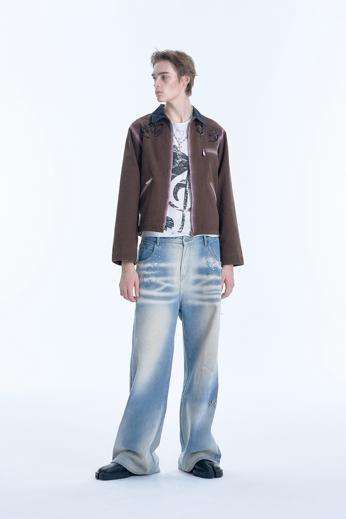 Faust Sequin Embroidery Washed Denim Jeans WN19041