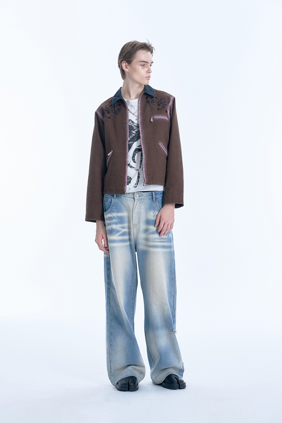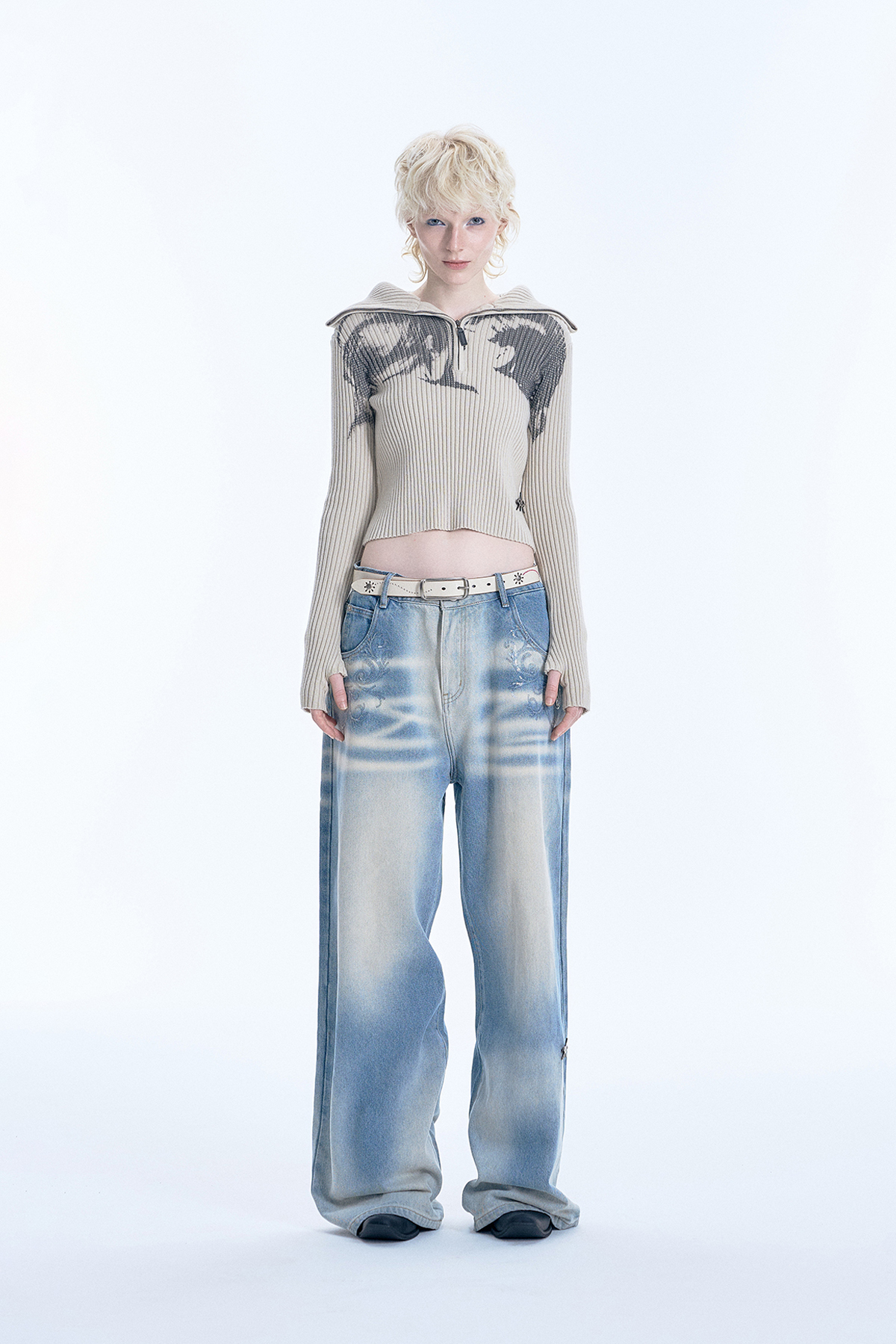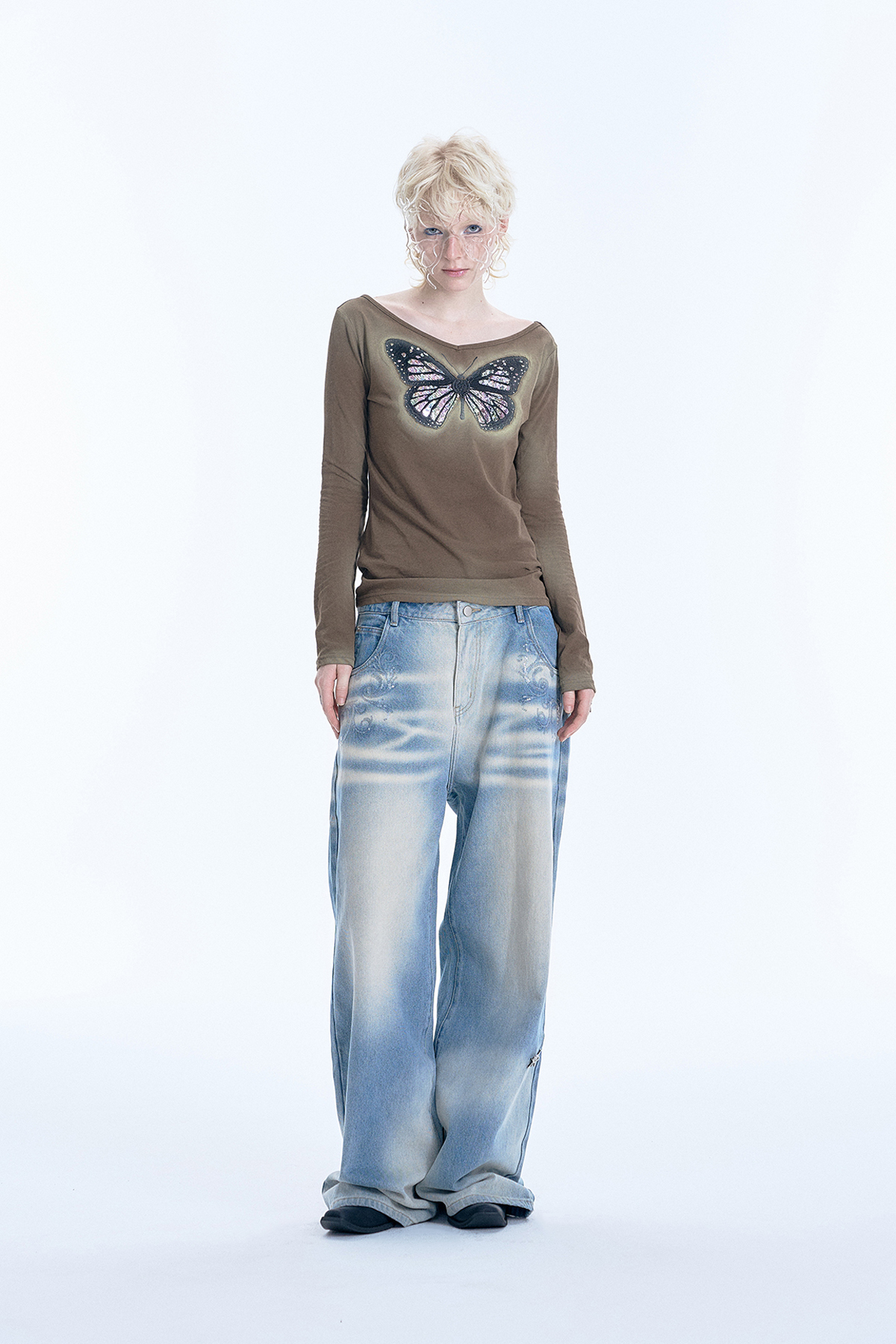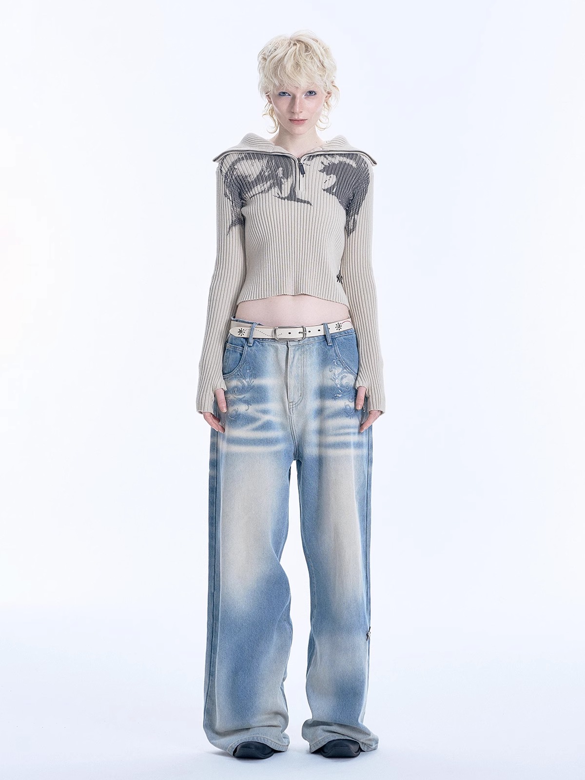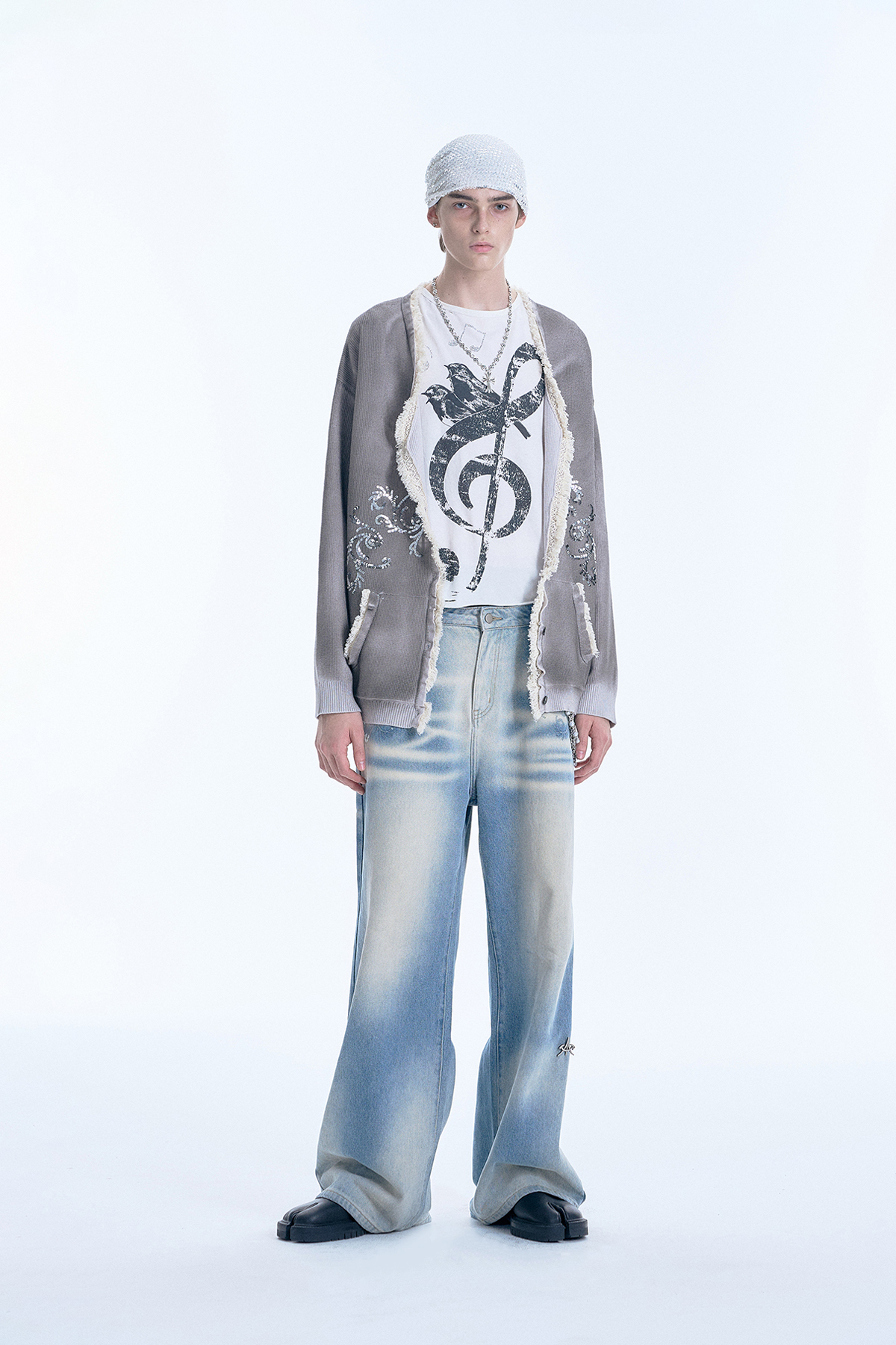 Faust Sequin Embroidery Washed Denim Jeans WN19041
