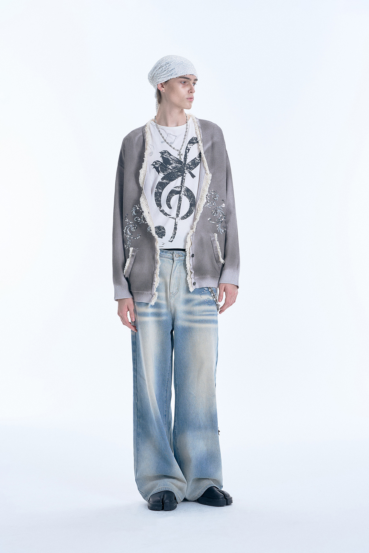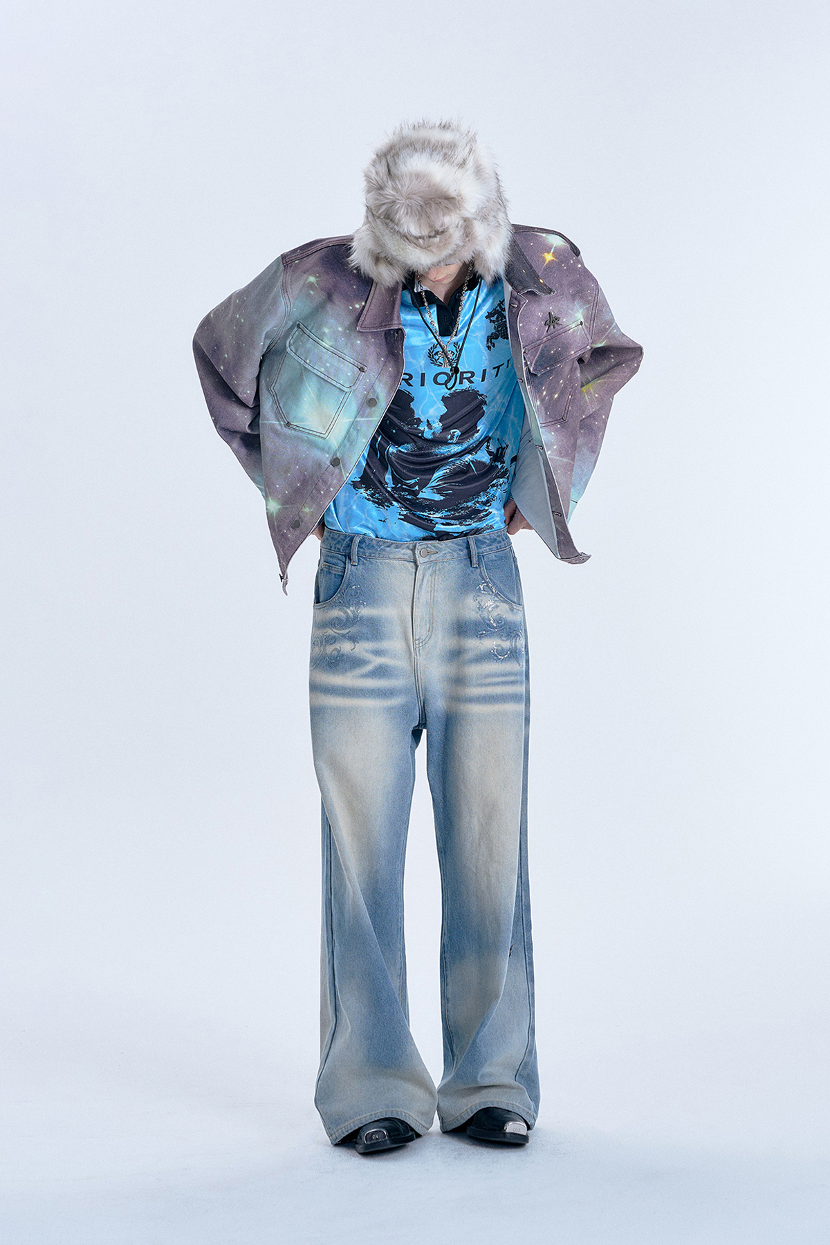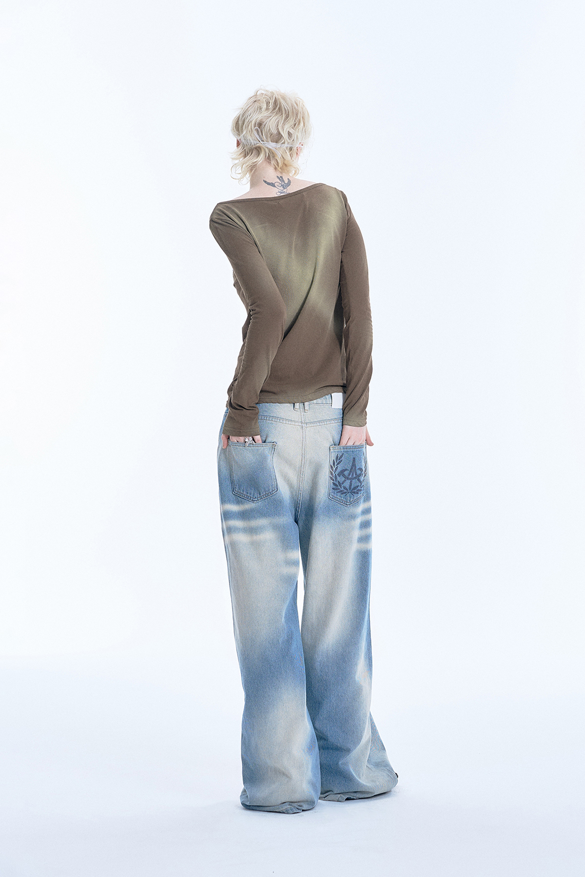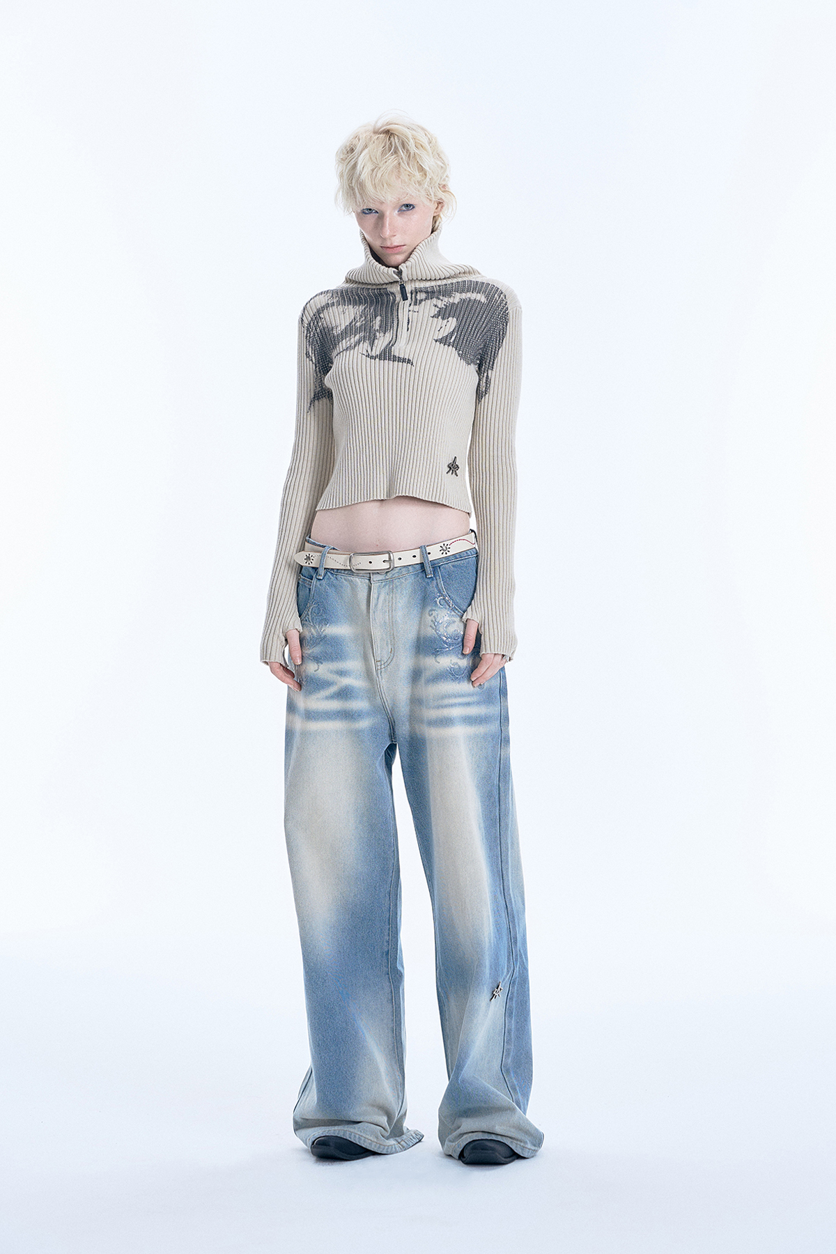 Faust Sequin Embroidery Washed Denim Jeans WN19041