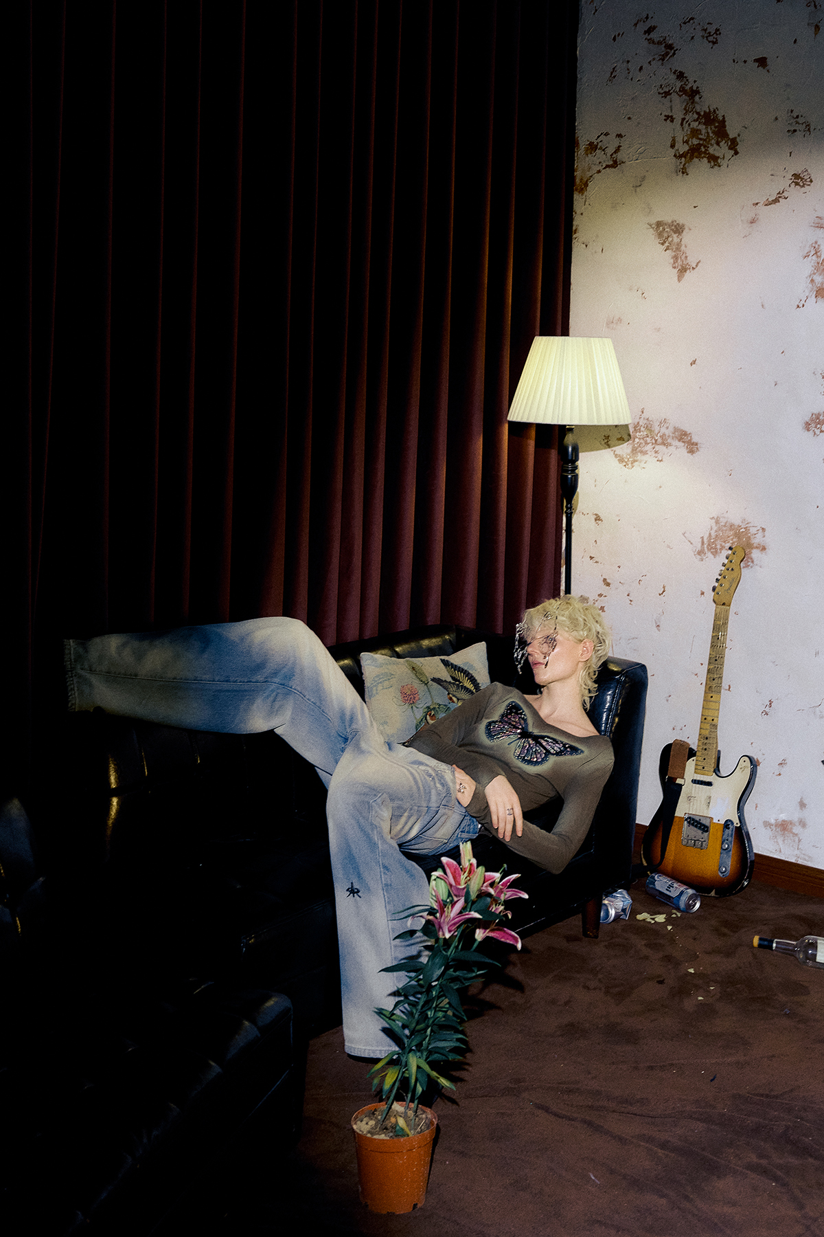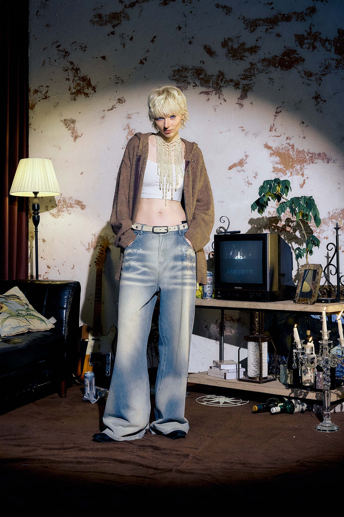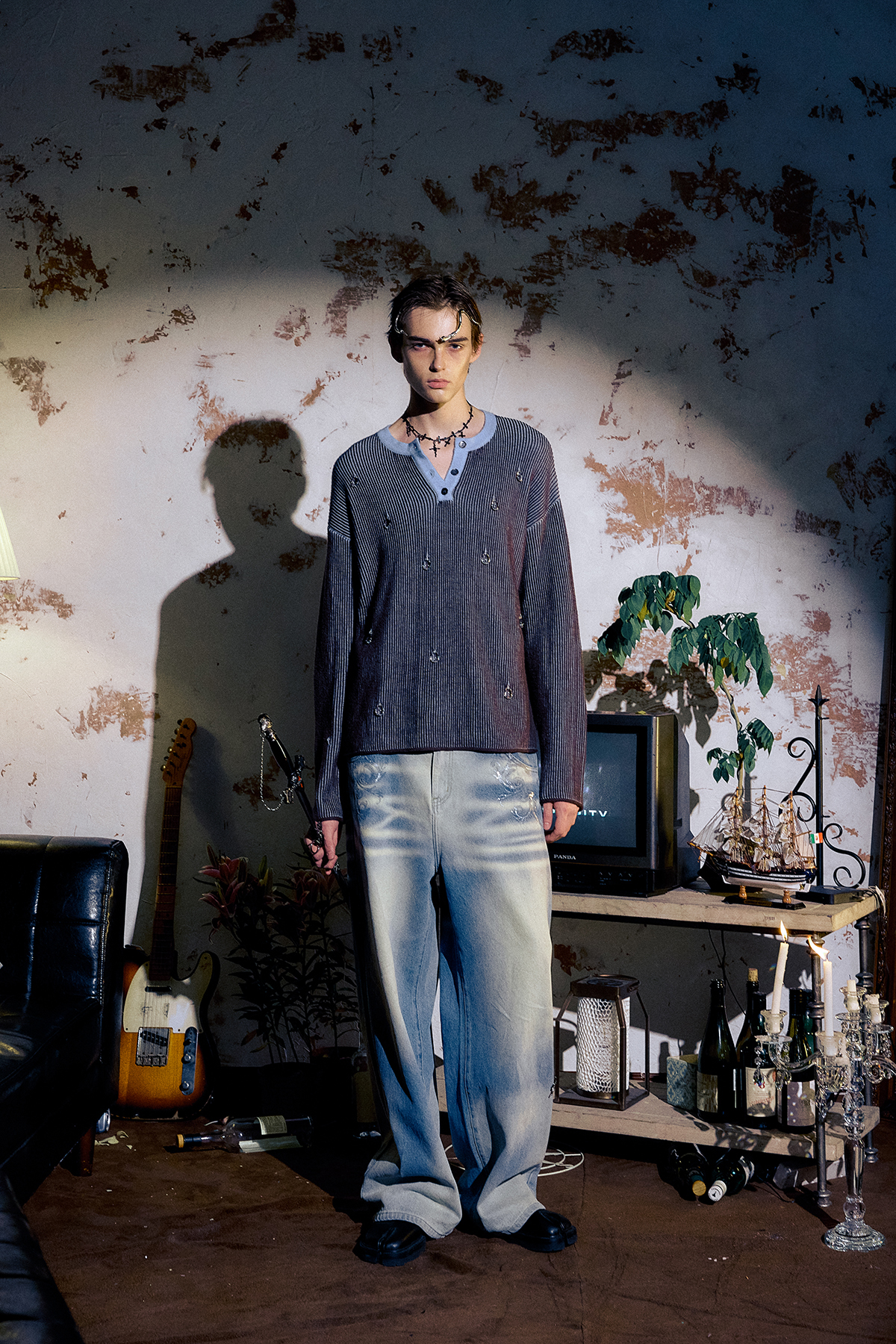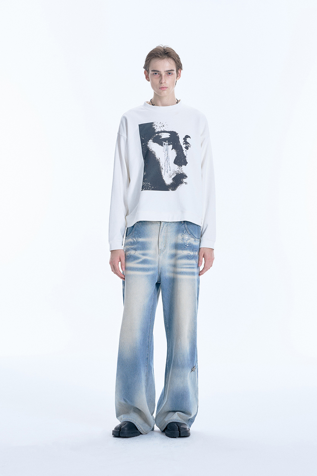Faust Sequin Embroidery Washed Denim Jeans WN19041