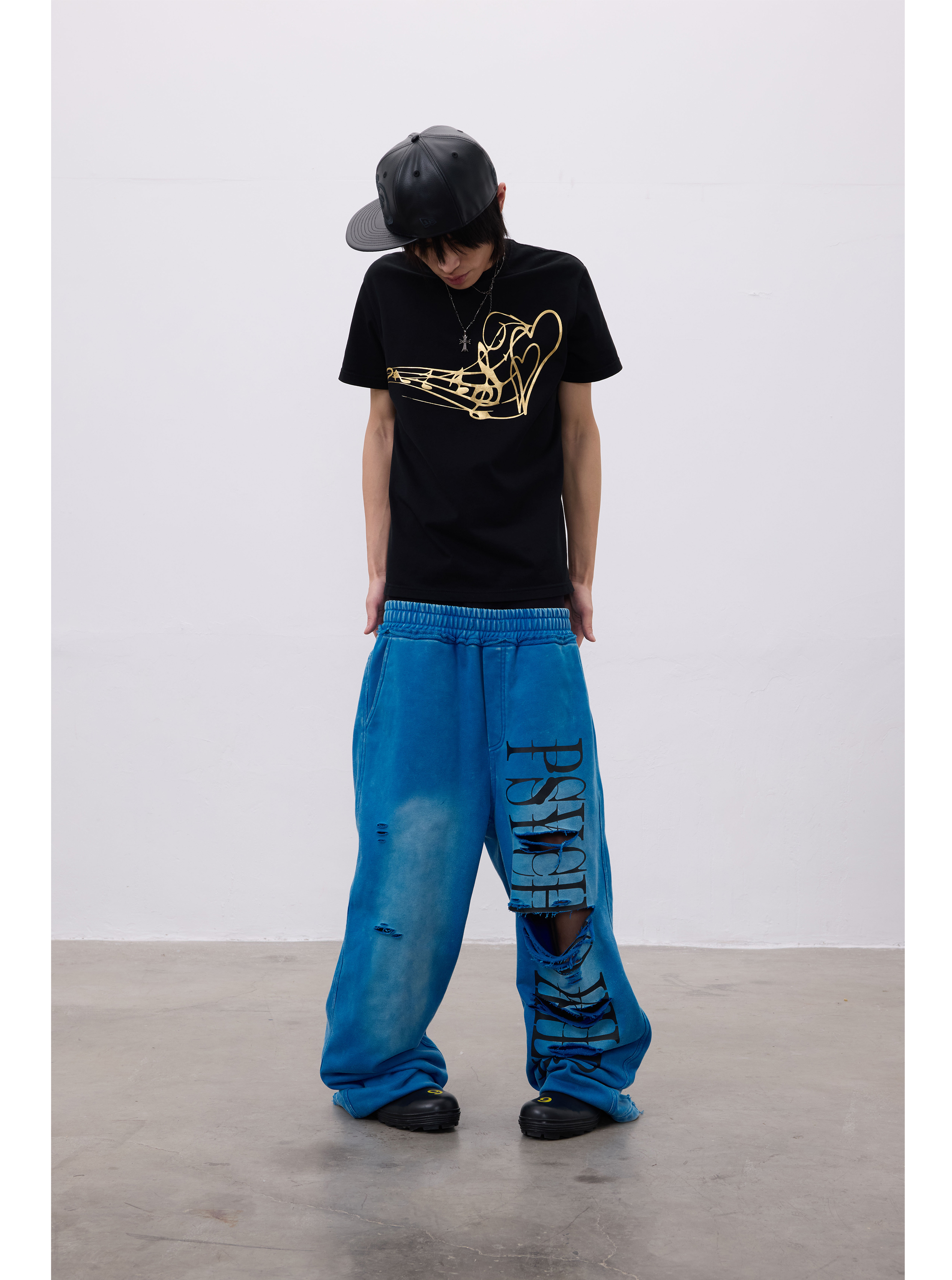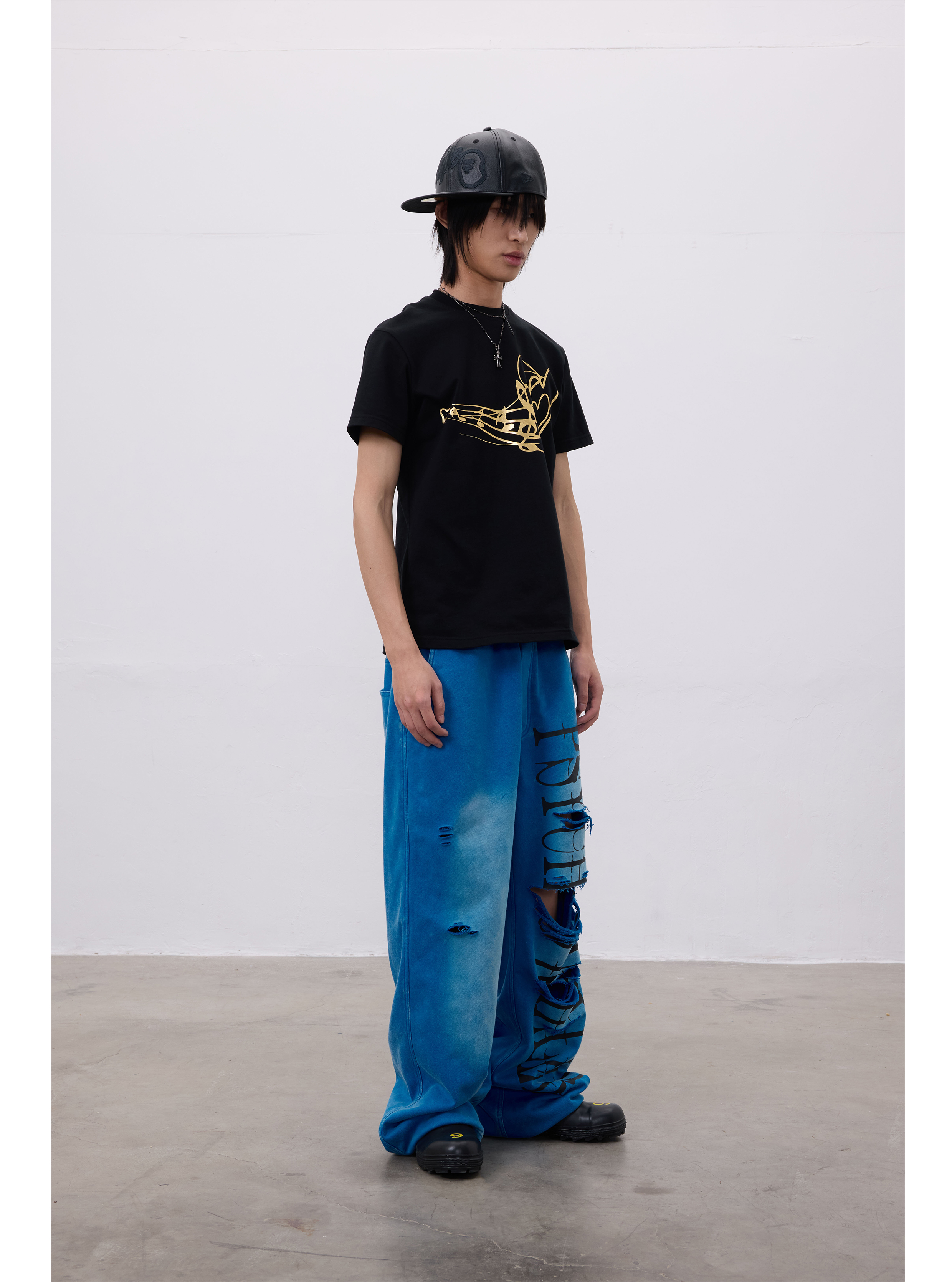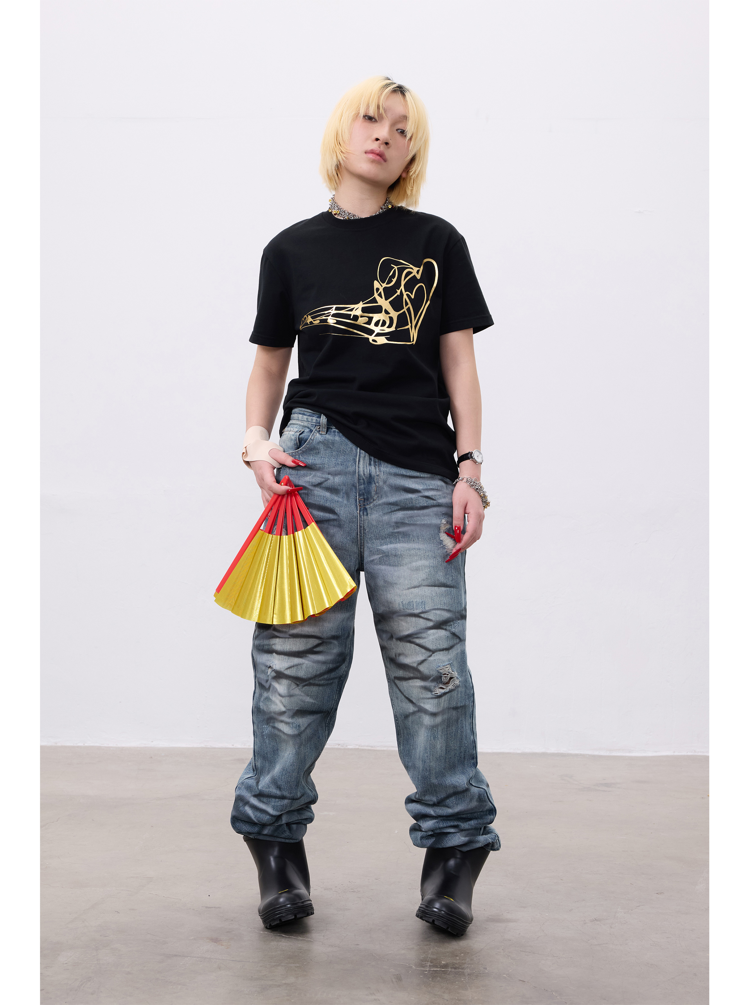 Music Note Heart Foil Print Slim Short Sleeve T-Shirt WN19074