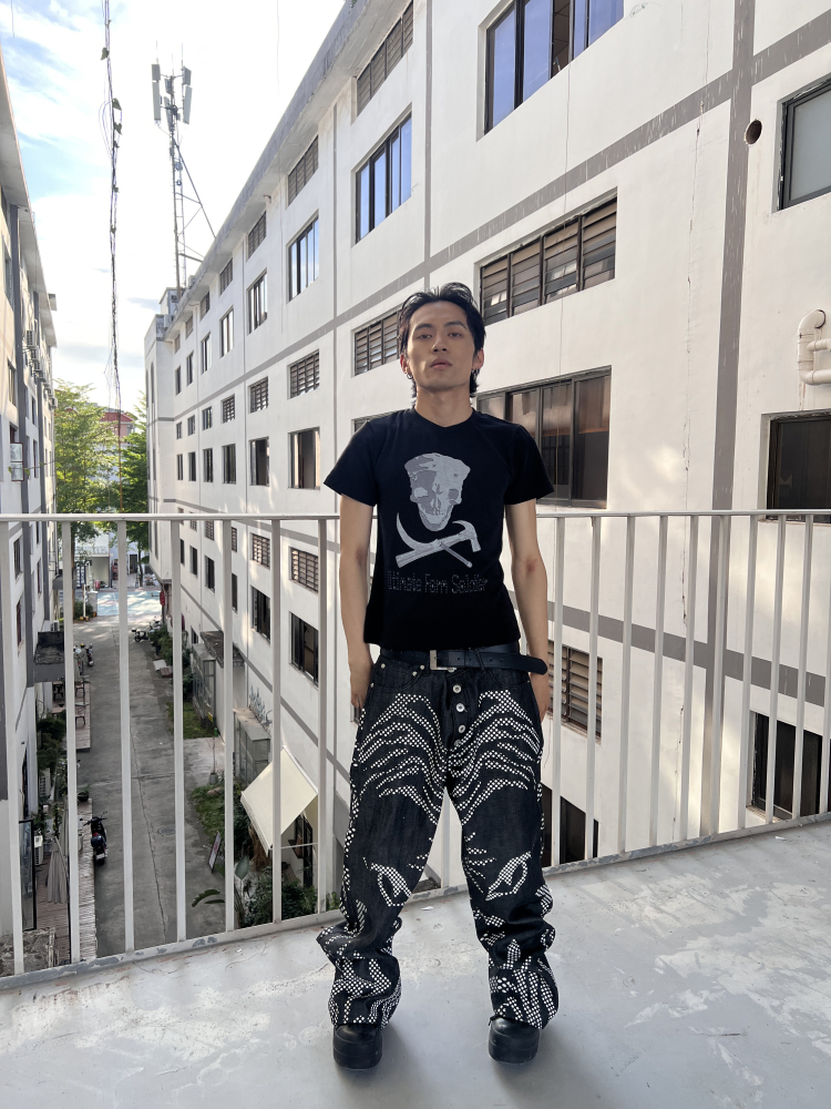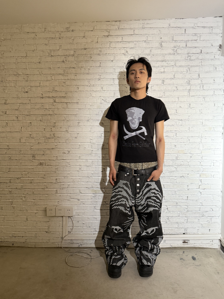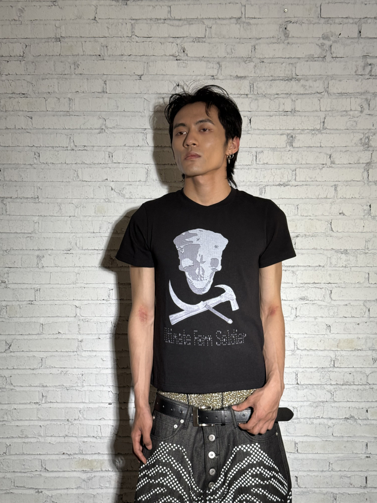 Hammer & Sickle White Ink Skull Print Slim Short Sleeve T-Shirt WN19087