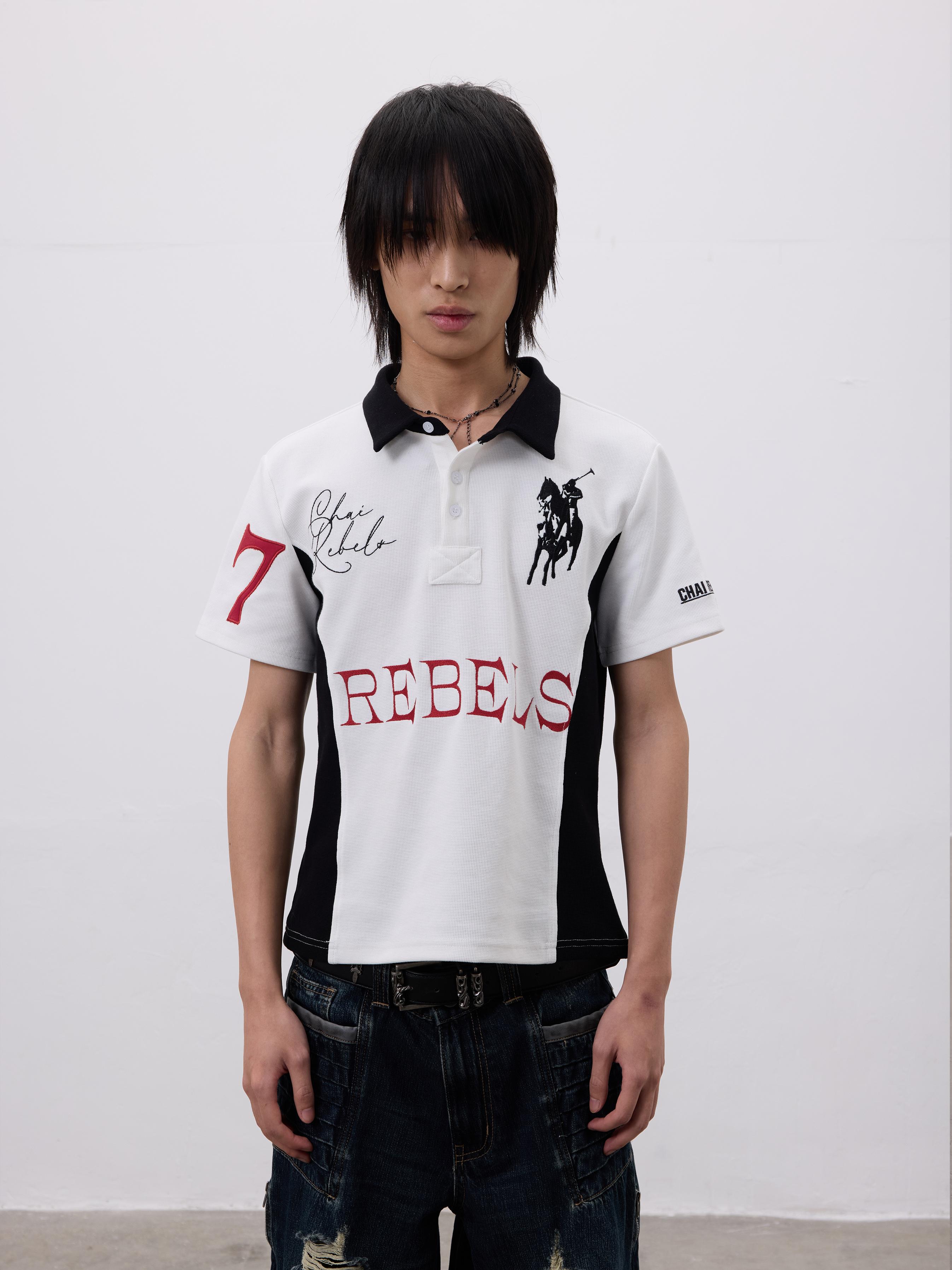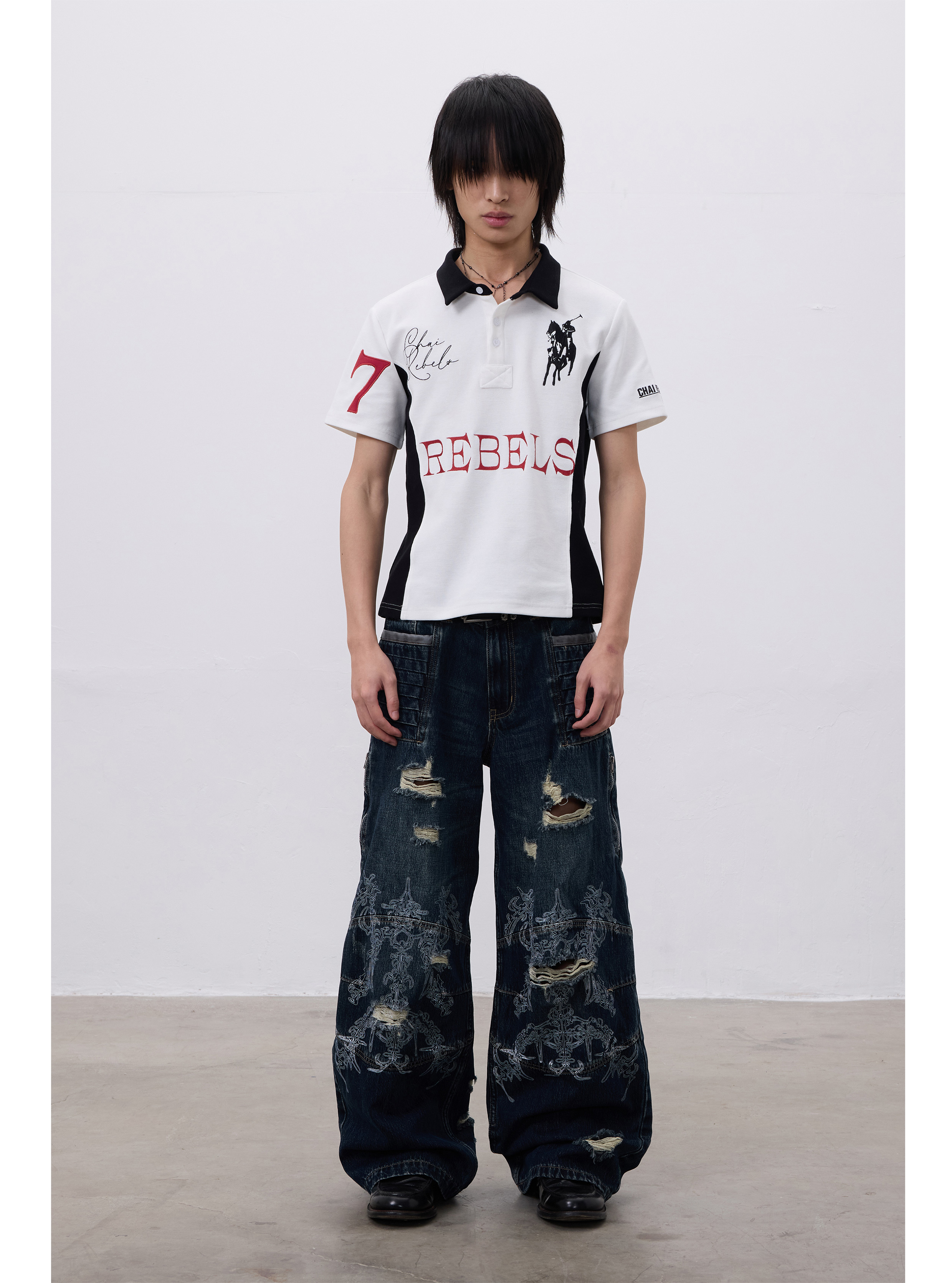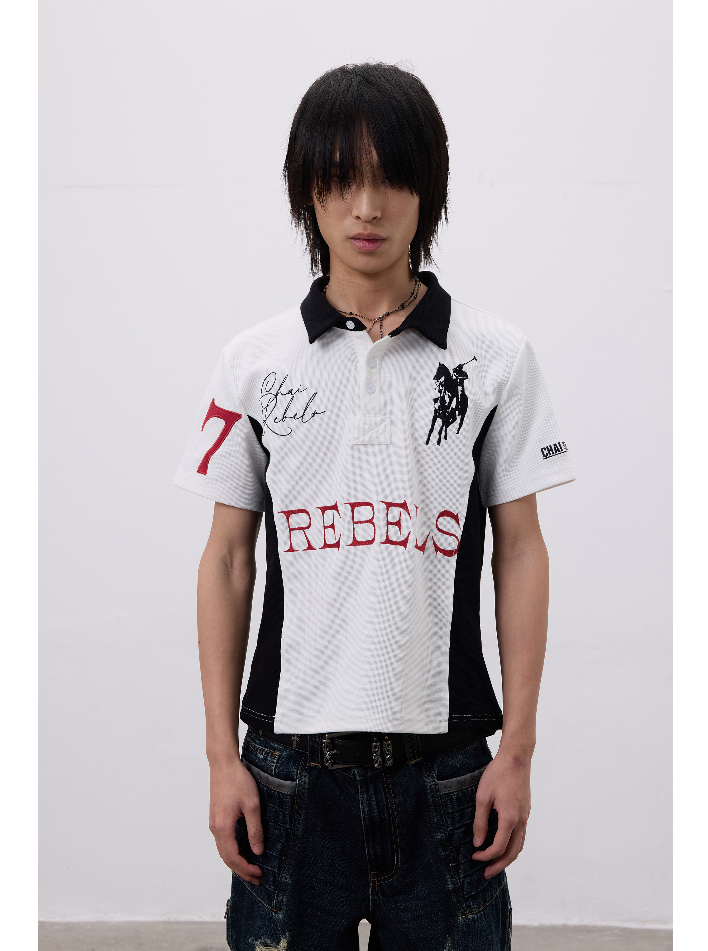 Embroidery Patchwork Polo Short Sleeve T-Shirt WN19101