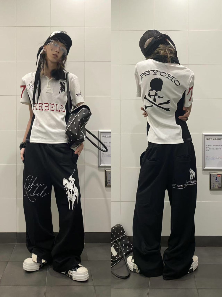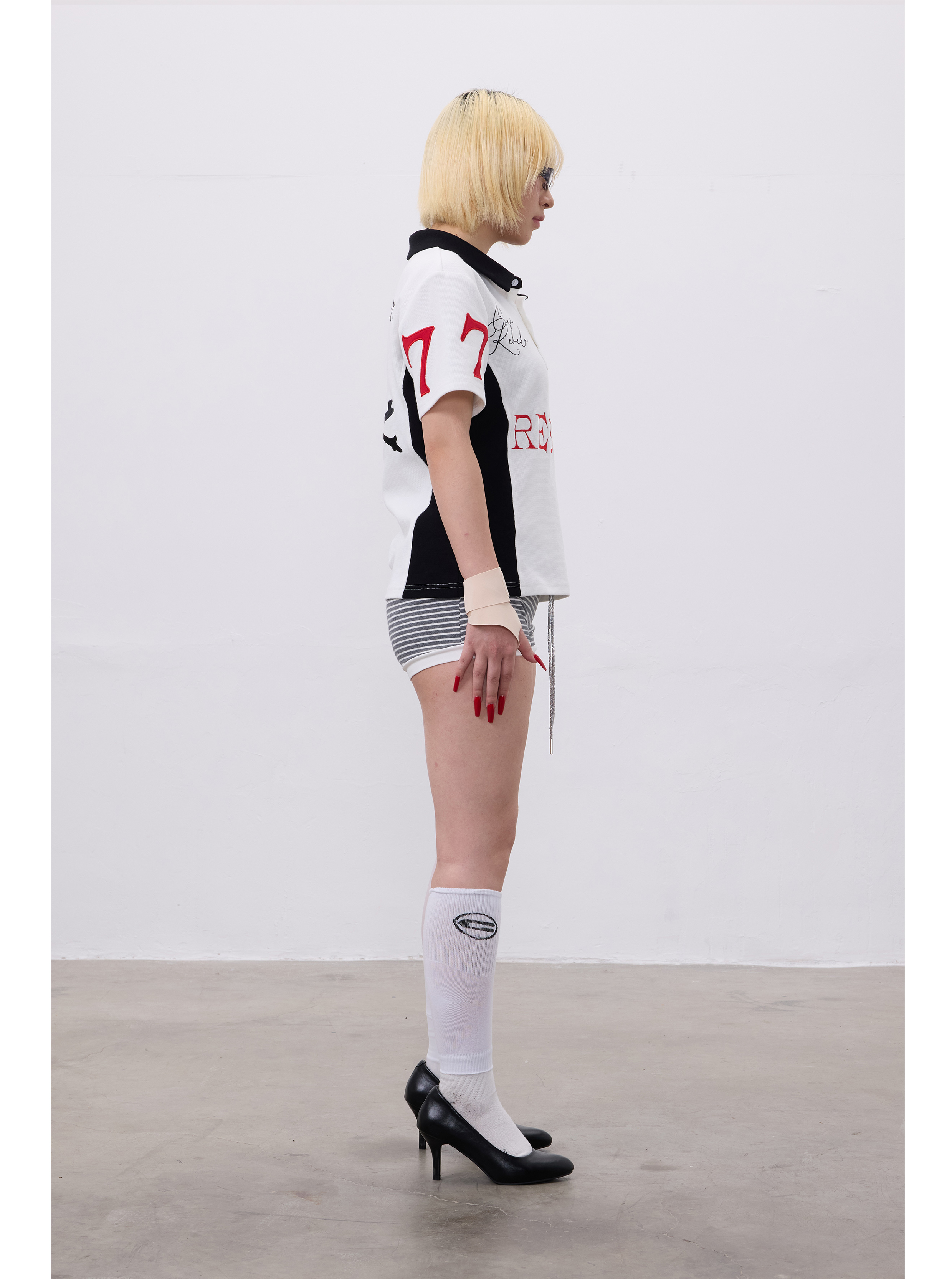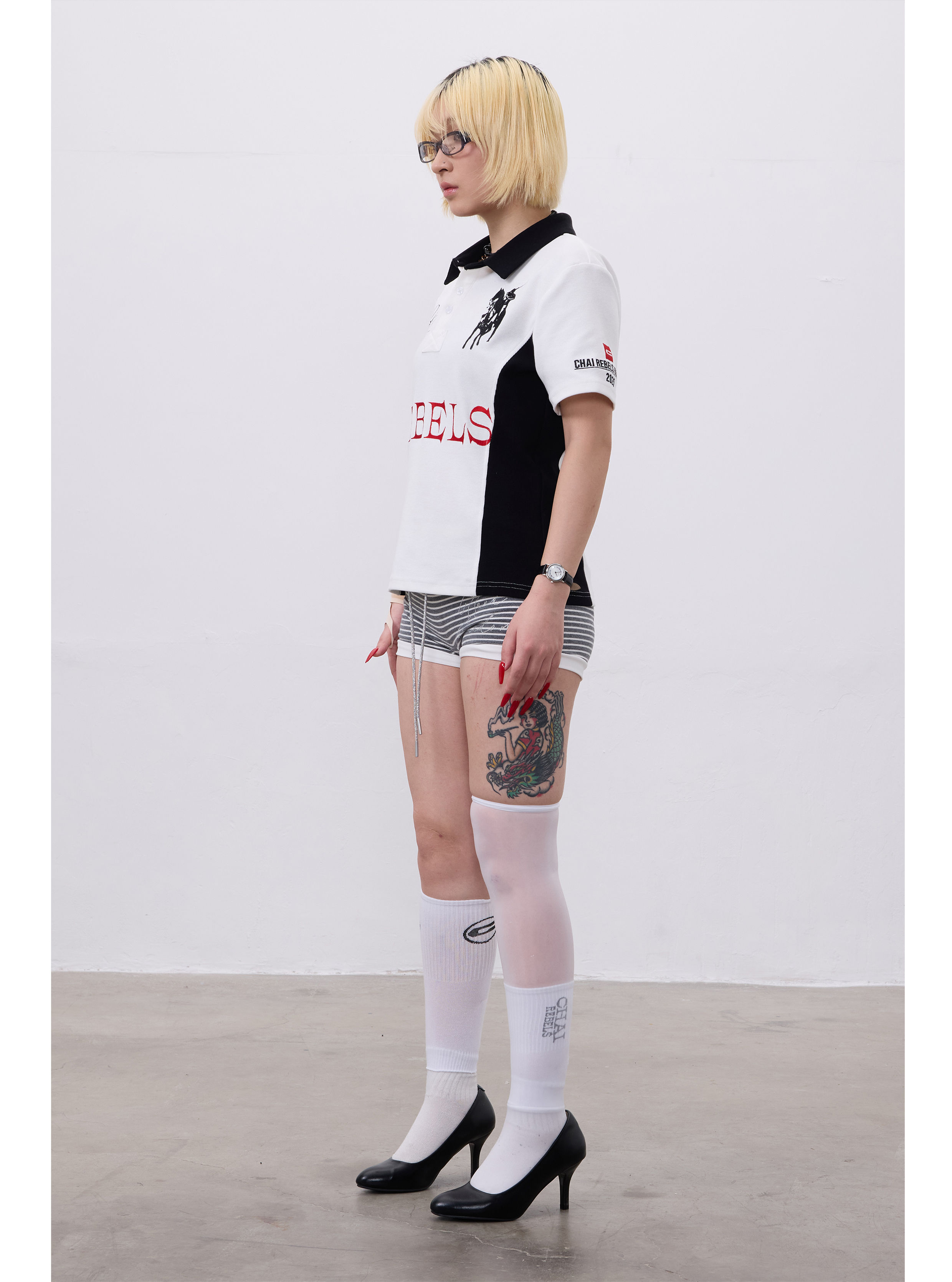 Embroidery Patchwork Polo Short Sleeve T-Shirt WN19101