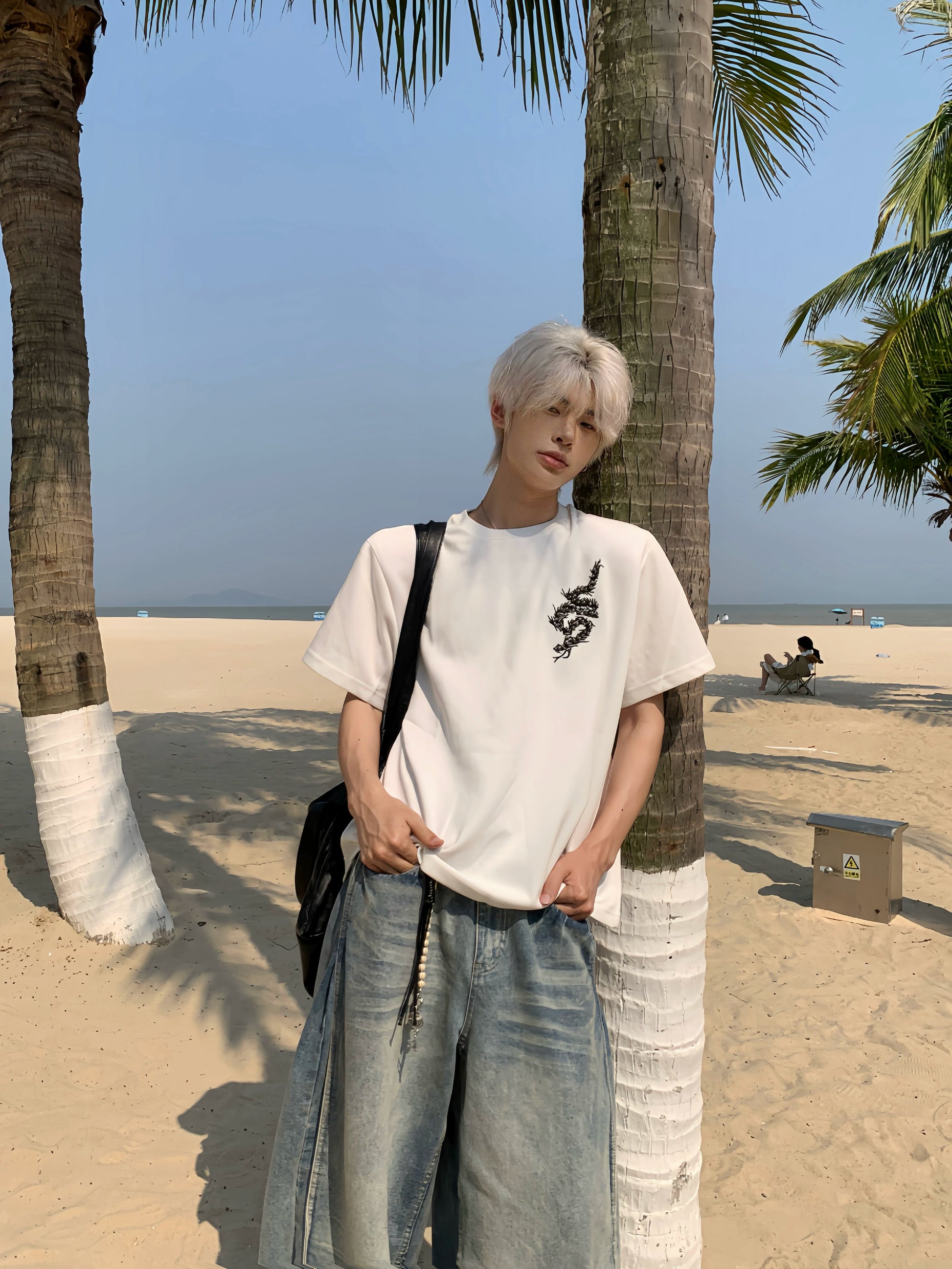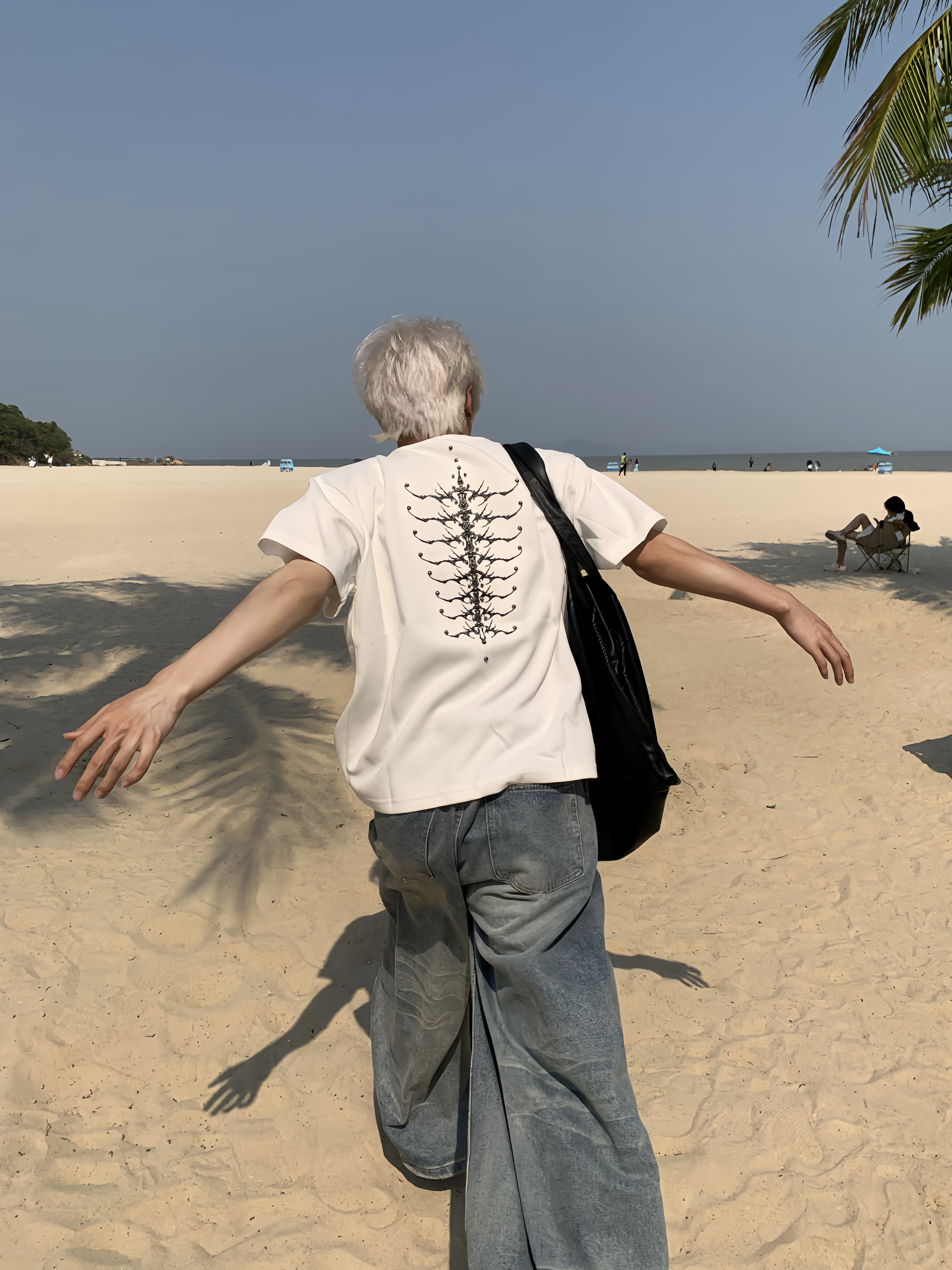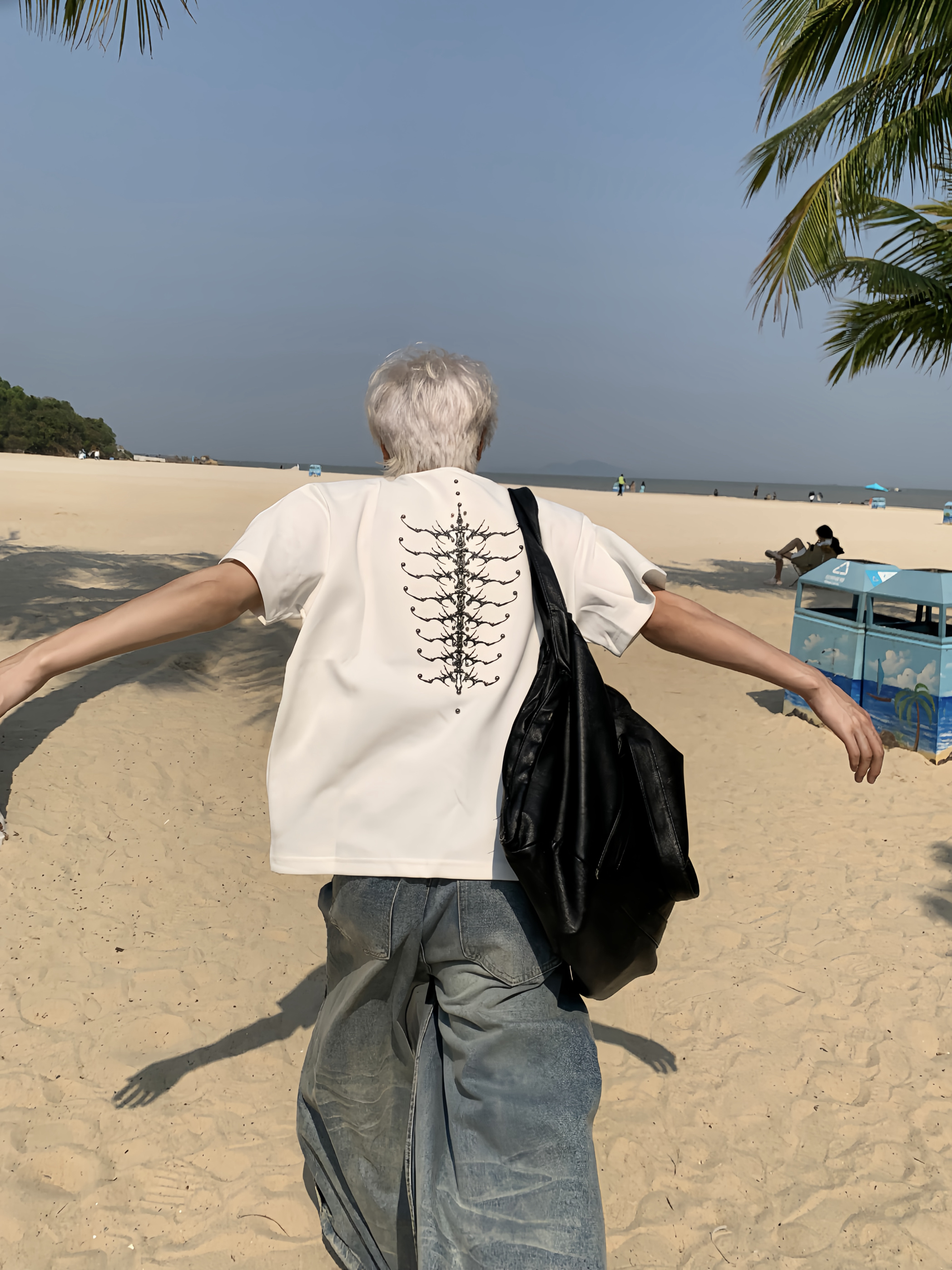 Studs Spine Embroidery Short Sleeve T-Shirt WN19779