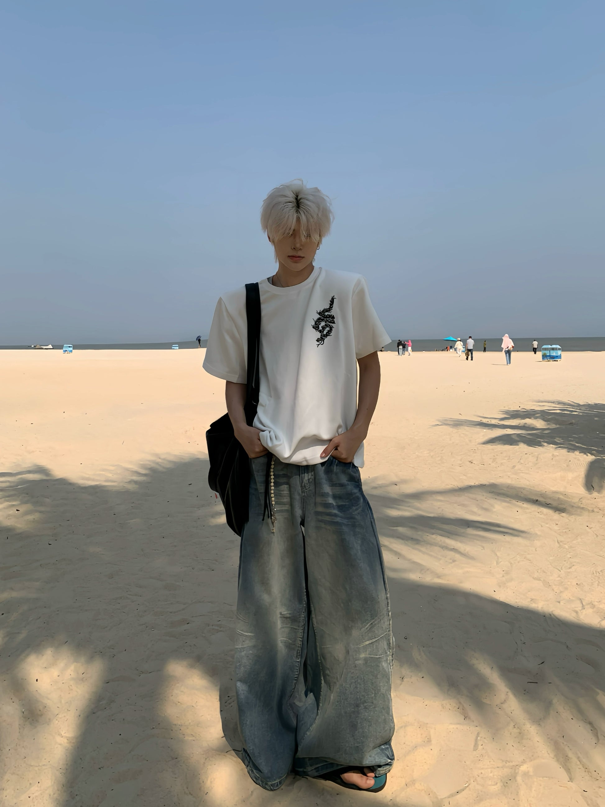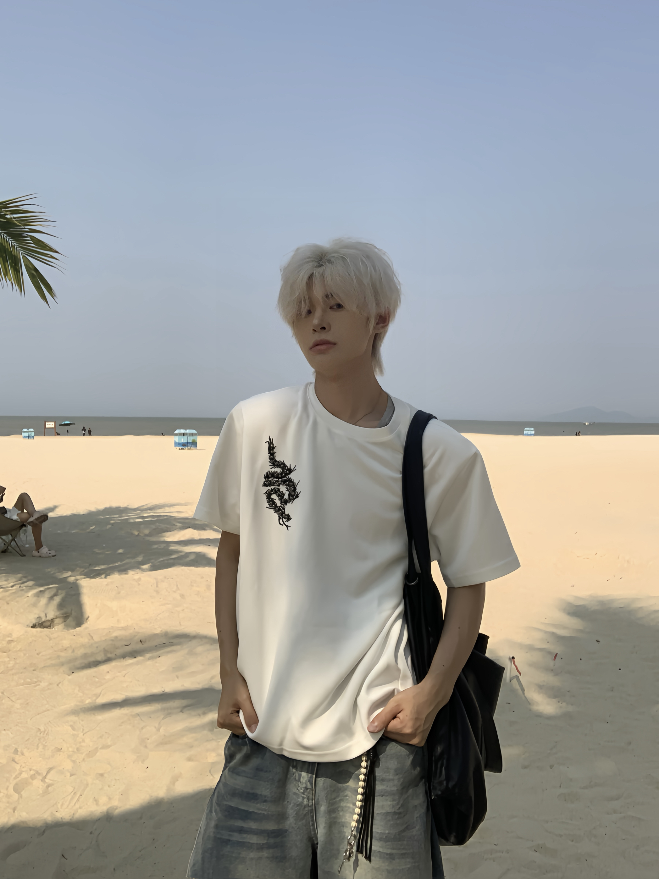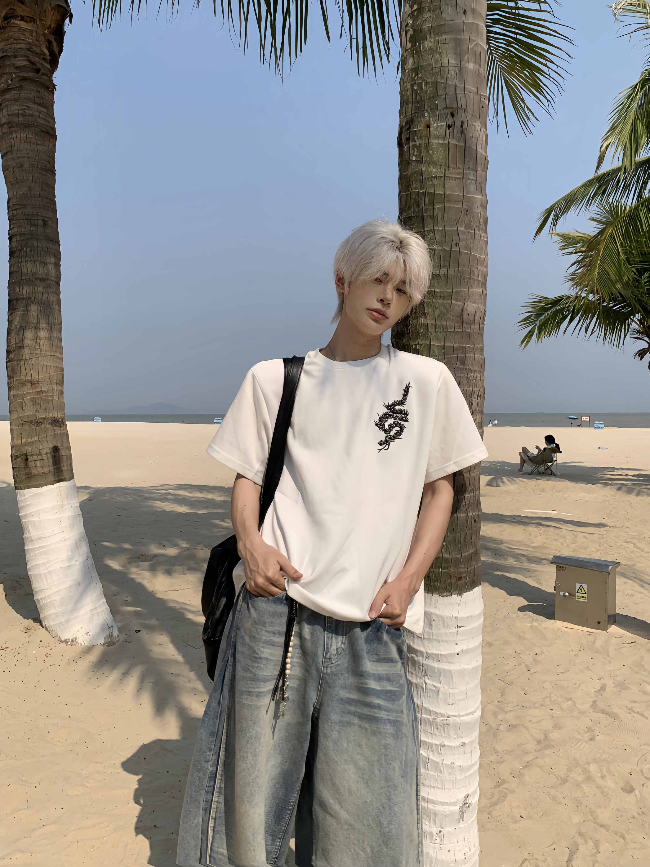 Studs Spine Embroidery Short Sleeve T-Shirt WN19779