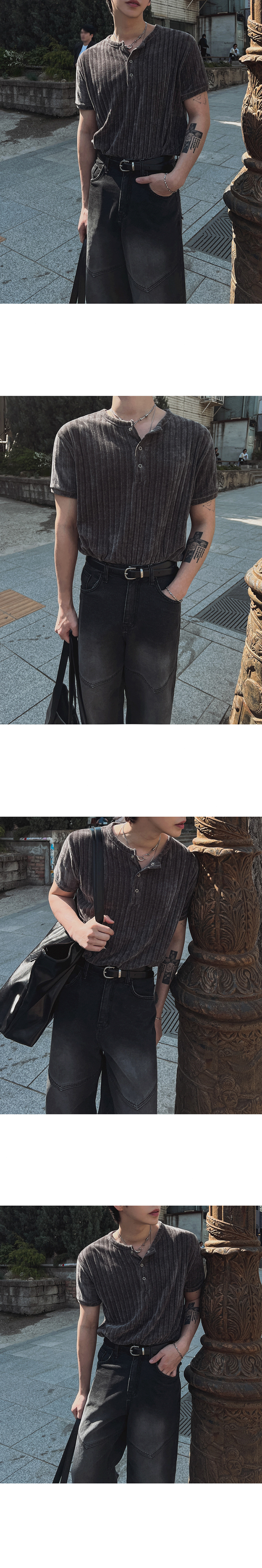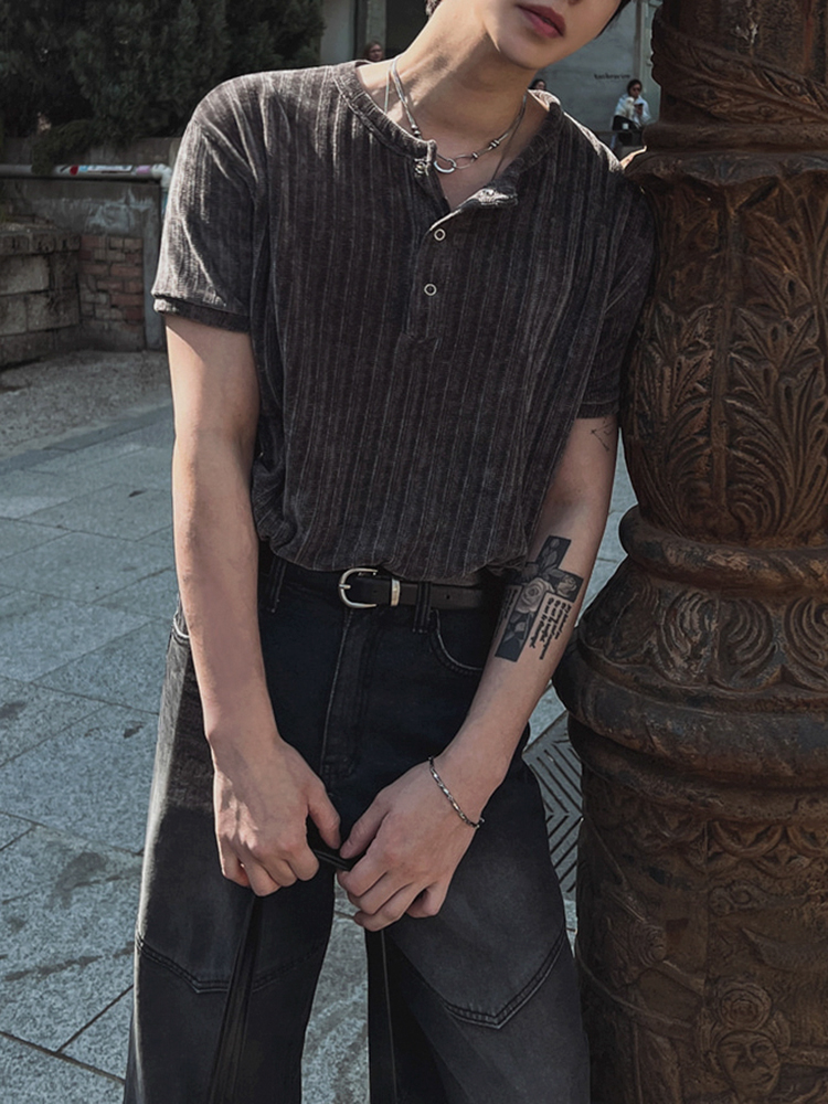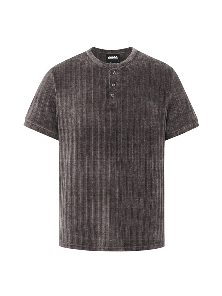 Henley Neck Plain Design Short Sleeve T-Shirt WN20269