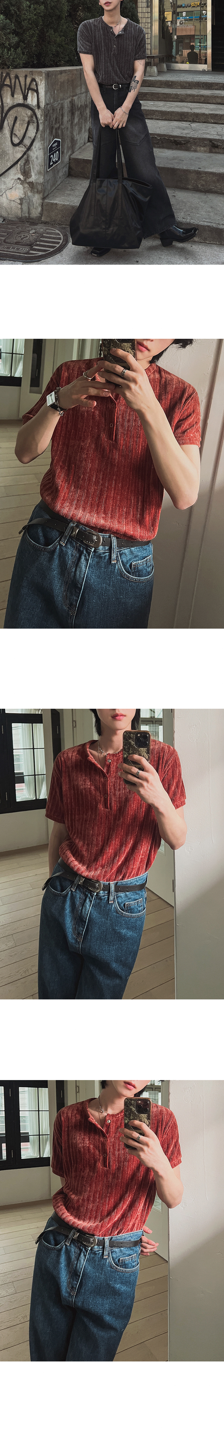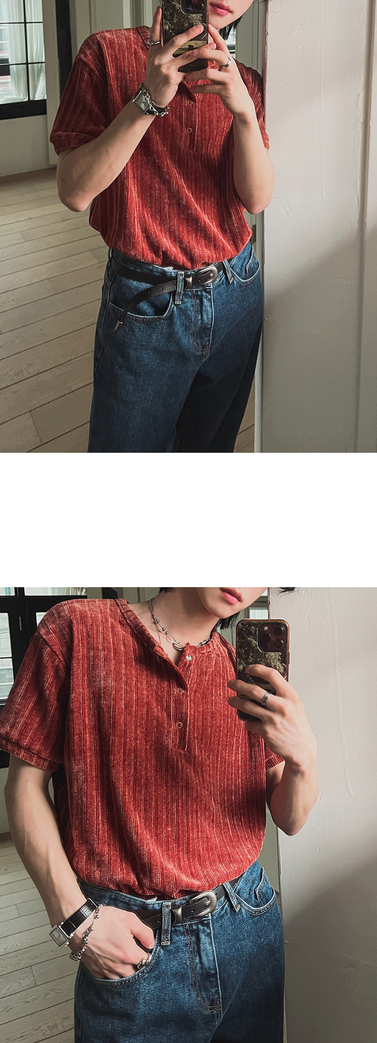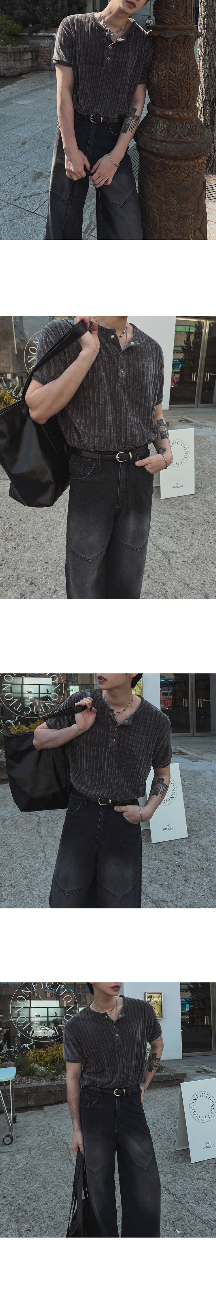 Henley Neck Plain Design Short Sleeve T-Shirt WN20269