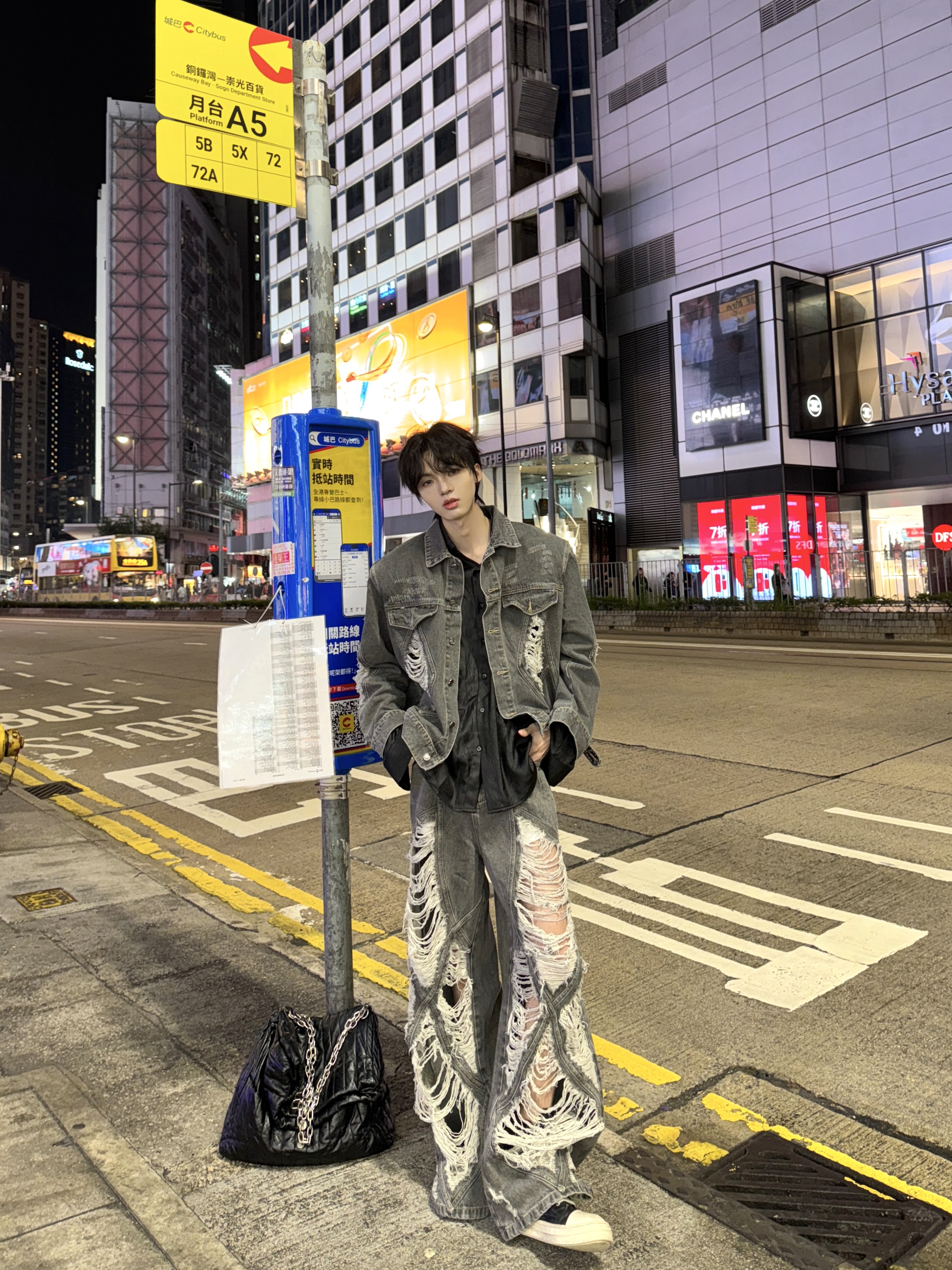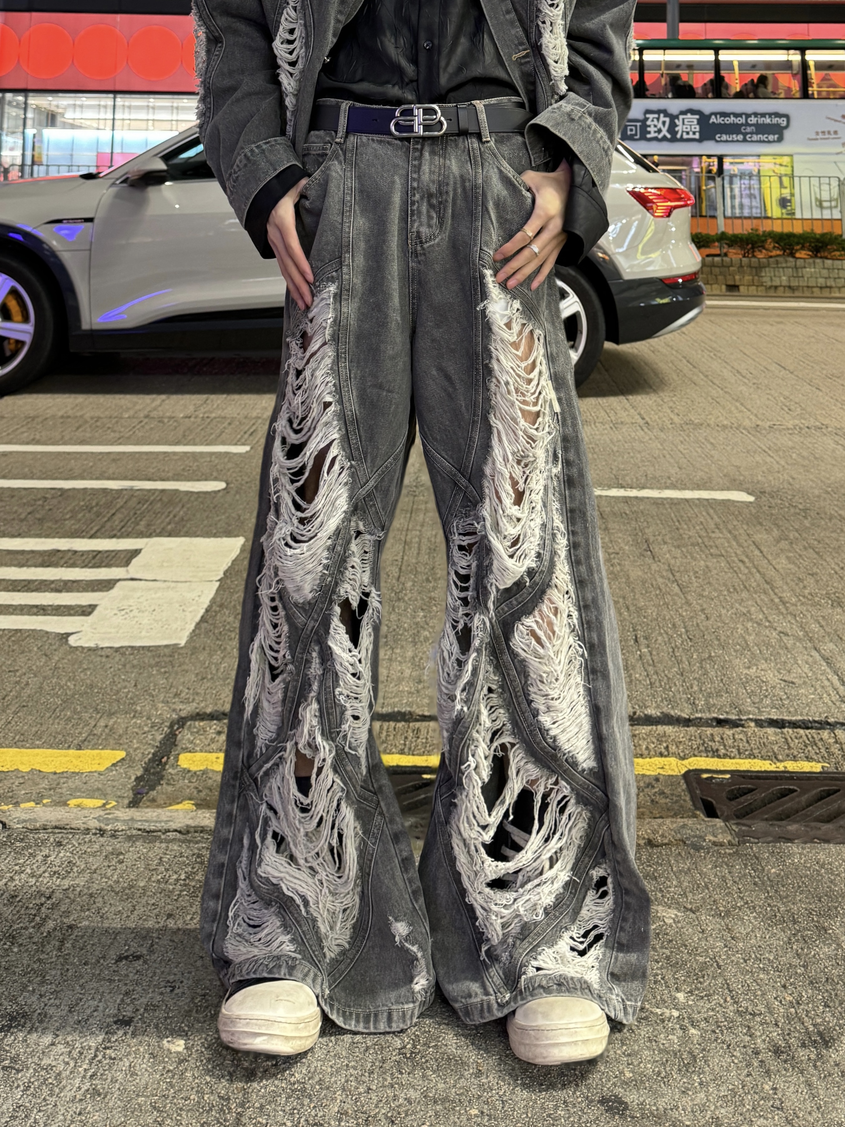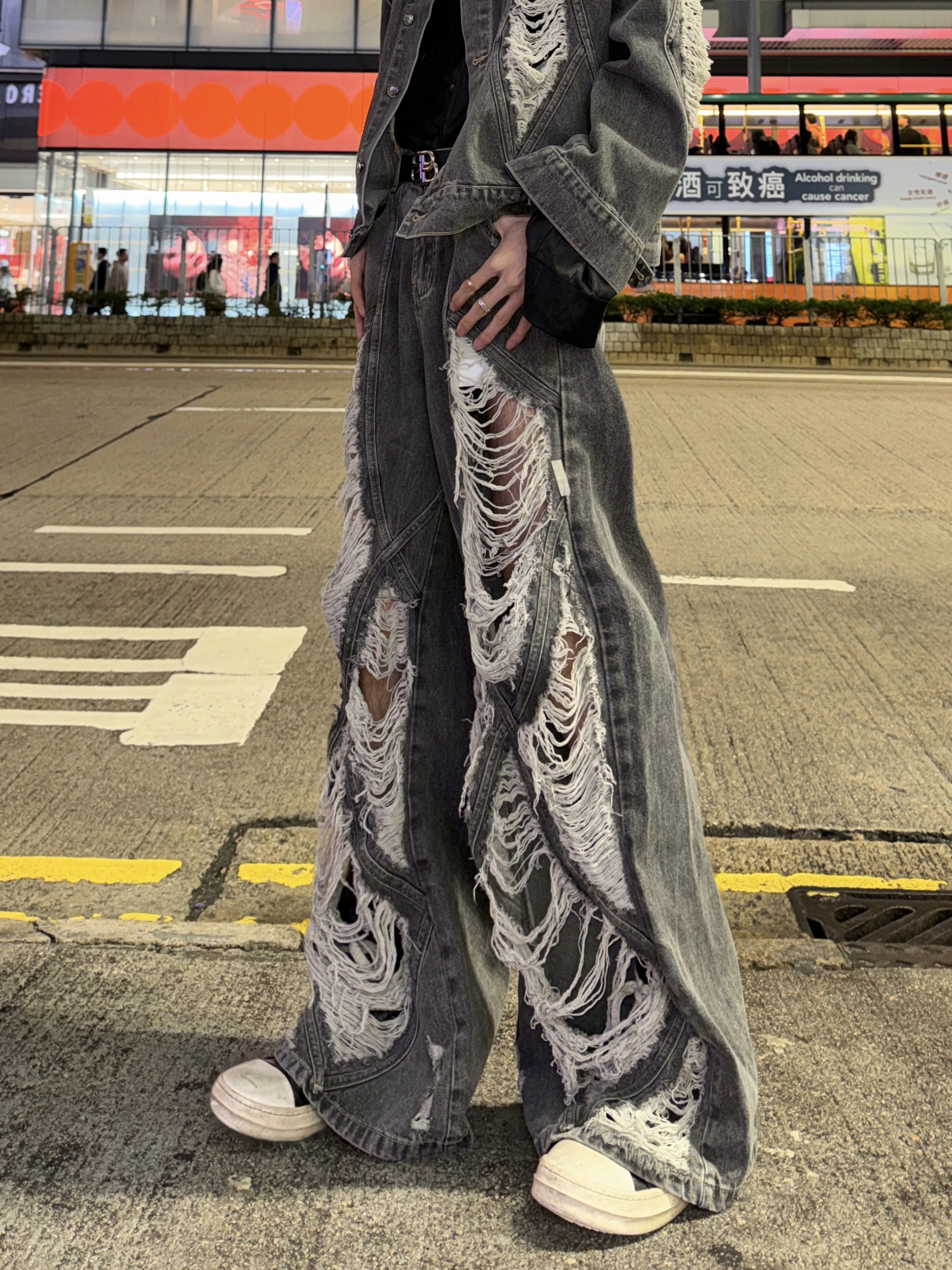 Damage Wash Heavyweight Denim Jacket & Wide Leg Denim Jeans Setup WN20734