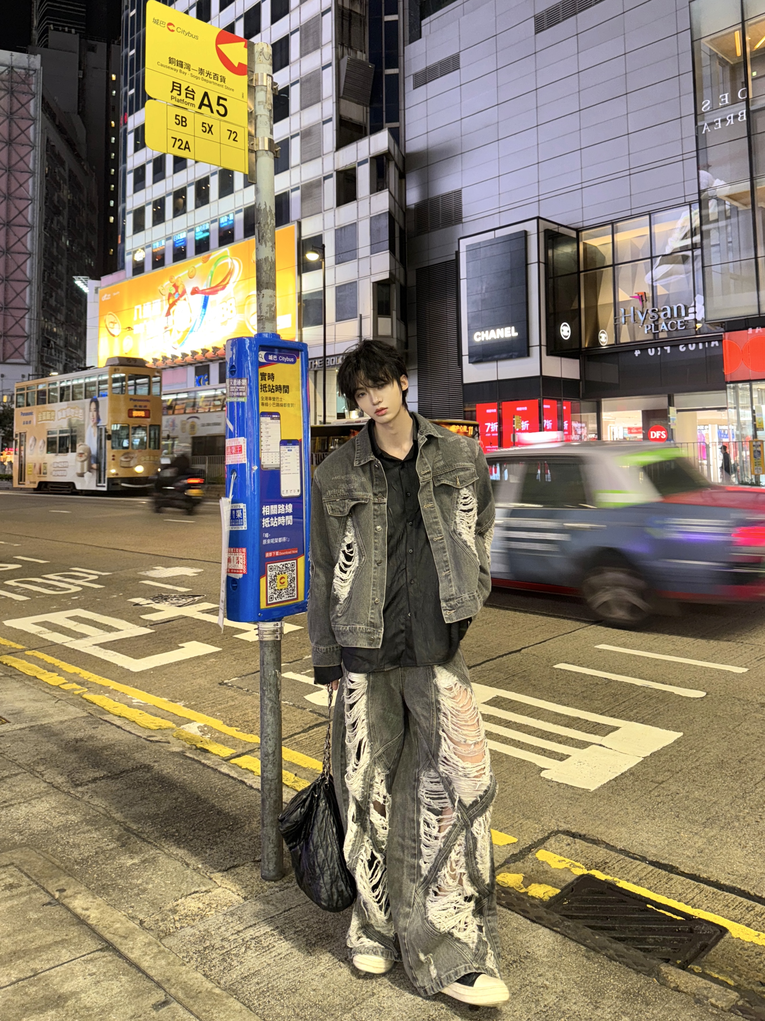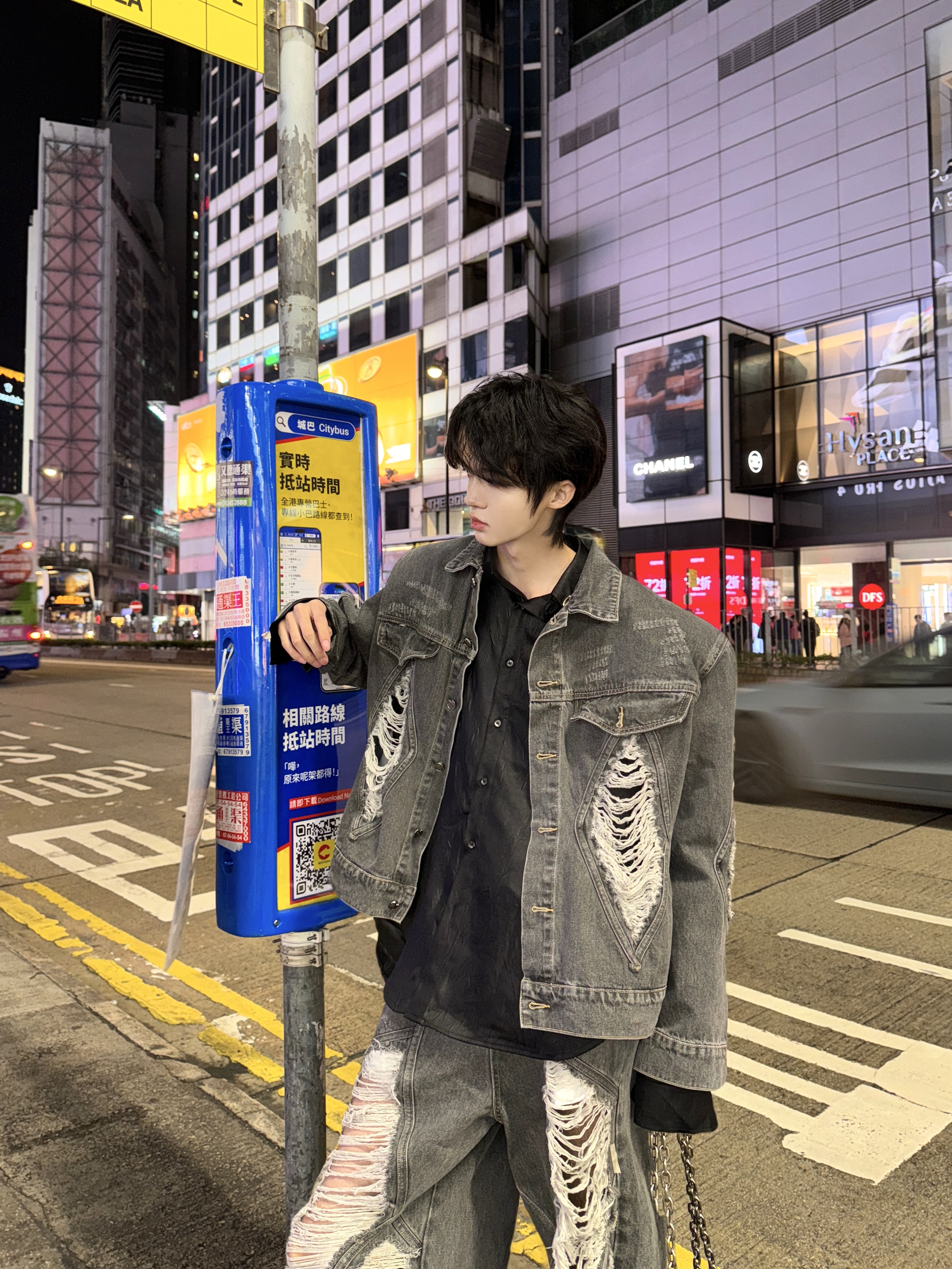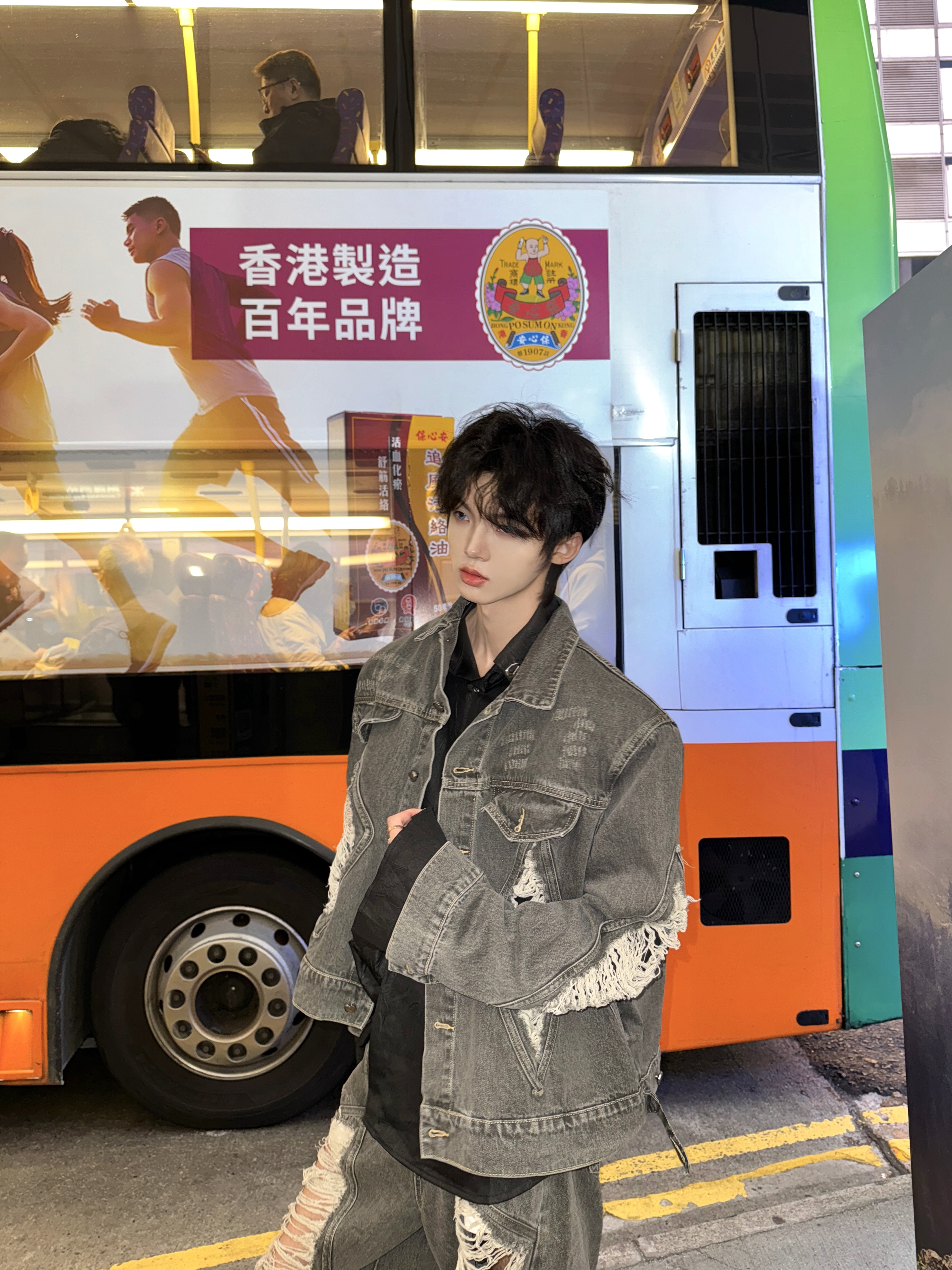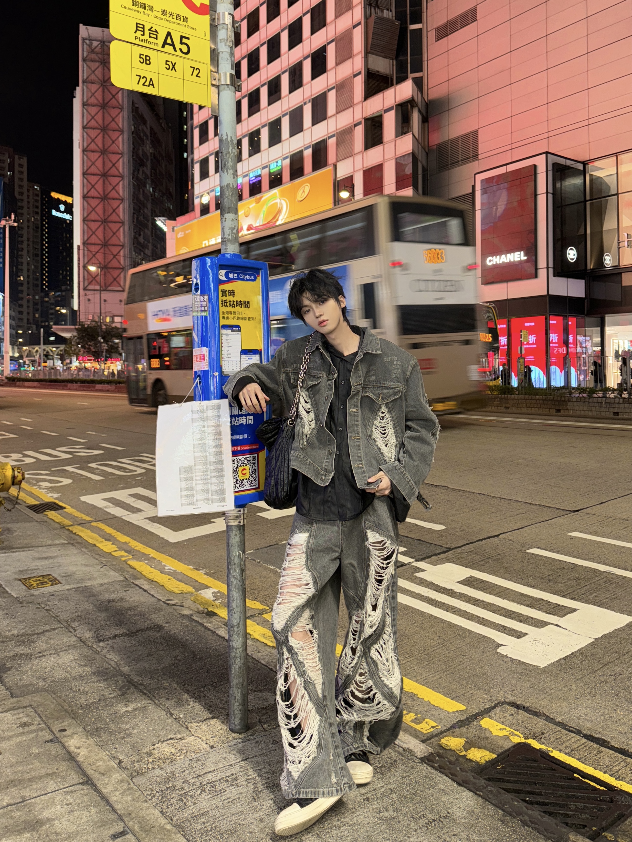 Damage Wash Heavyweight Denim Jacket & Wide Leg Denim Jeans Setup WN20734