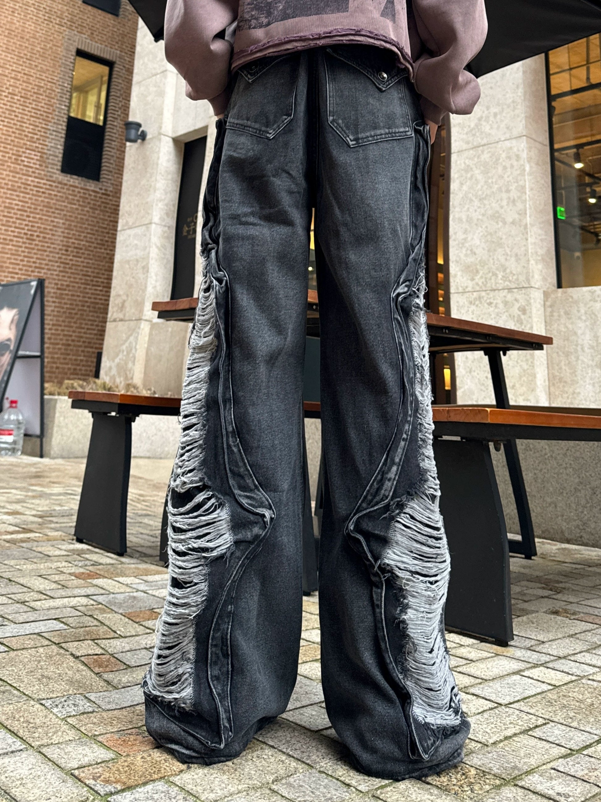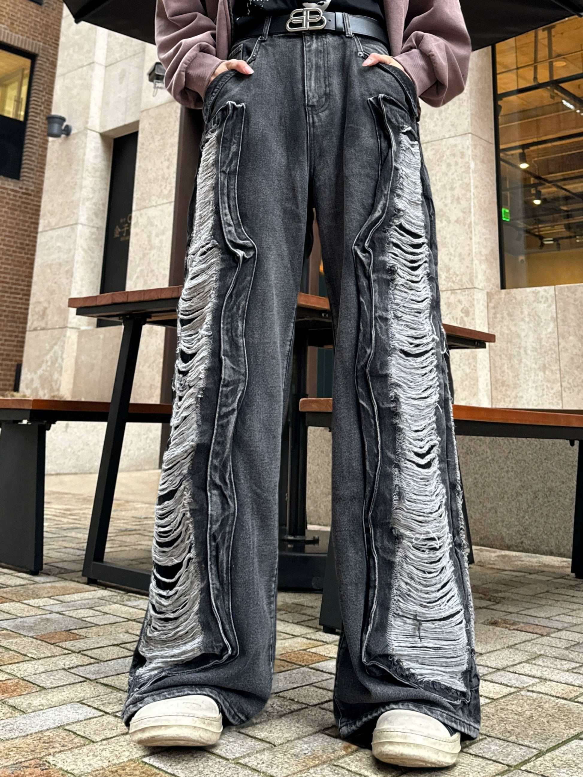Patchwork Tassel Damage Wash Denim Jeans WN20738