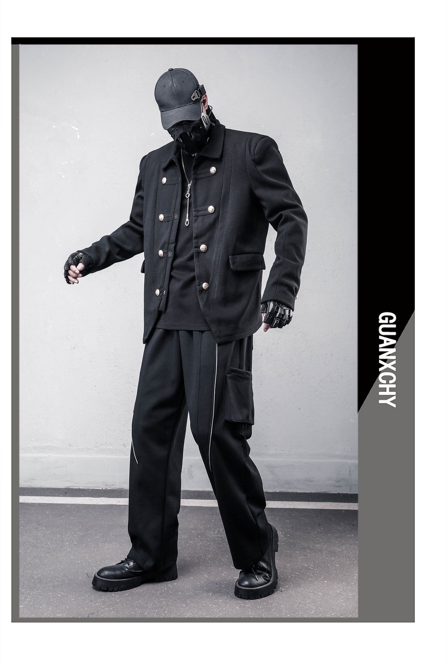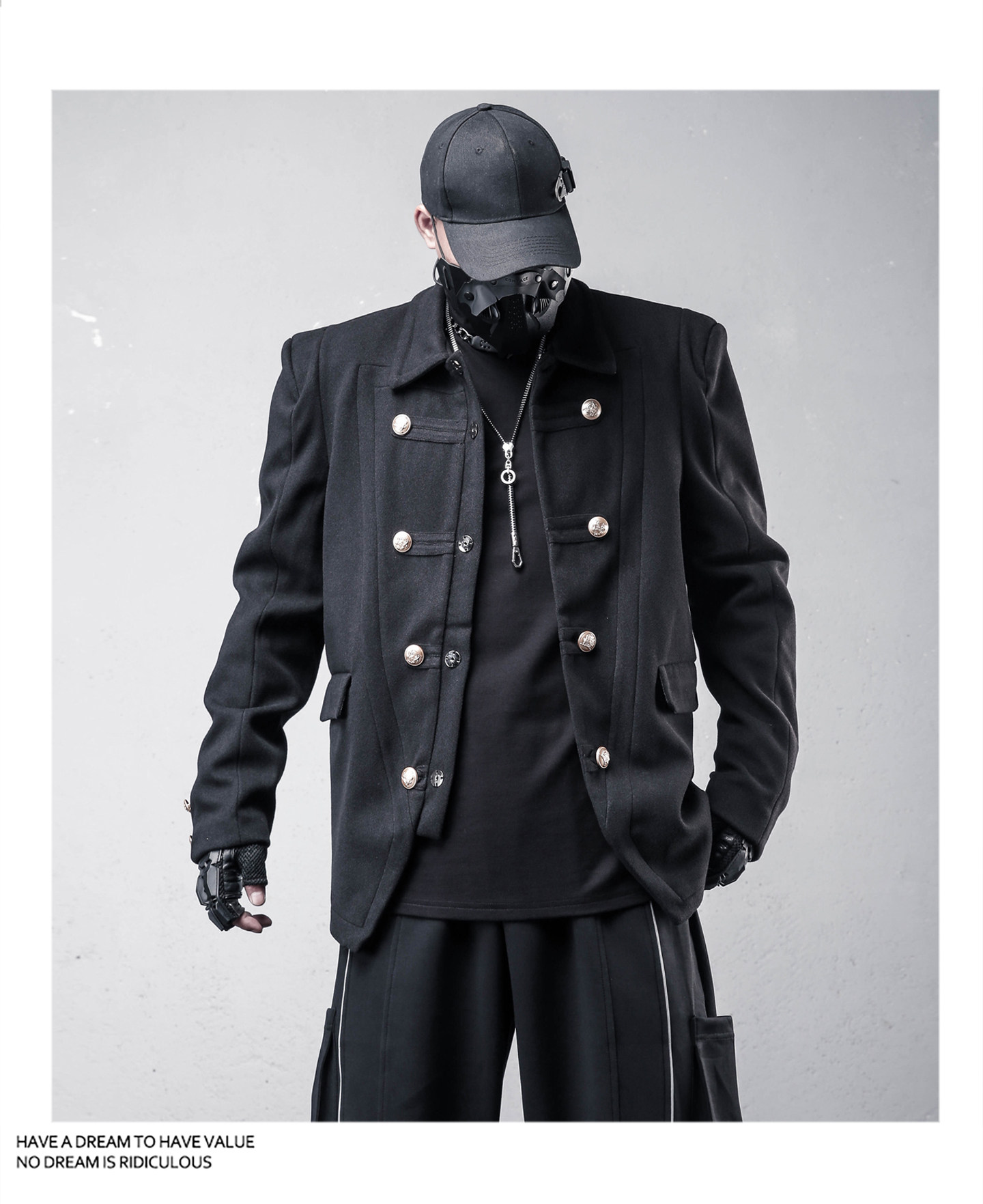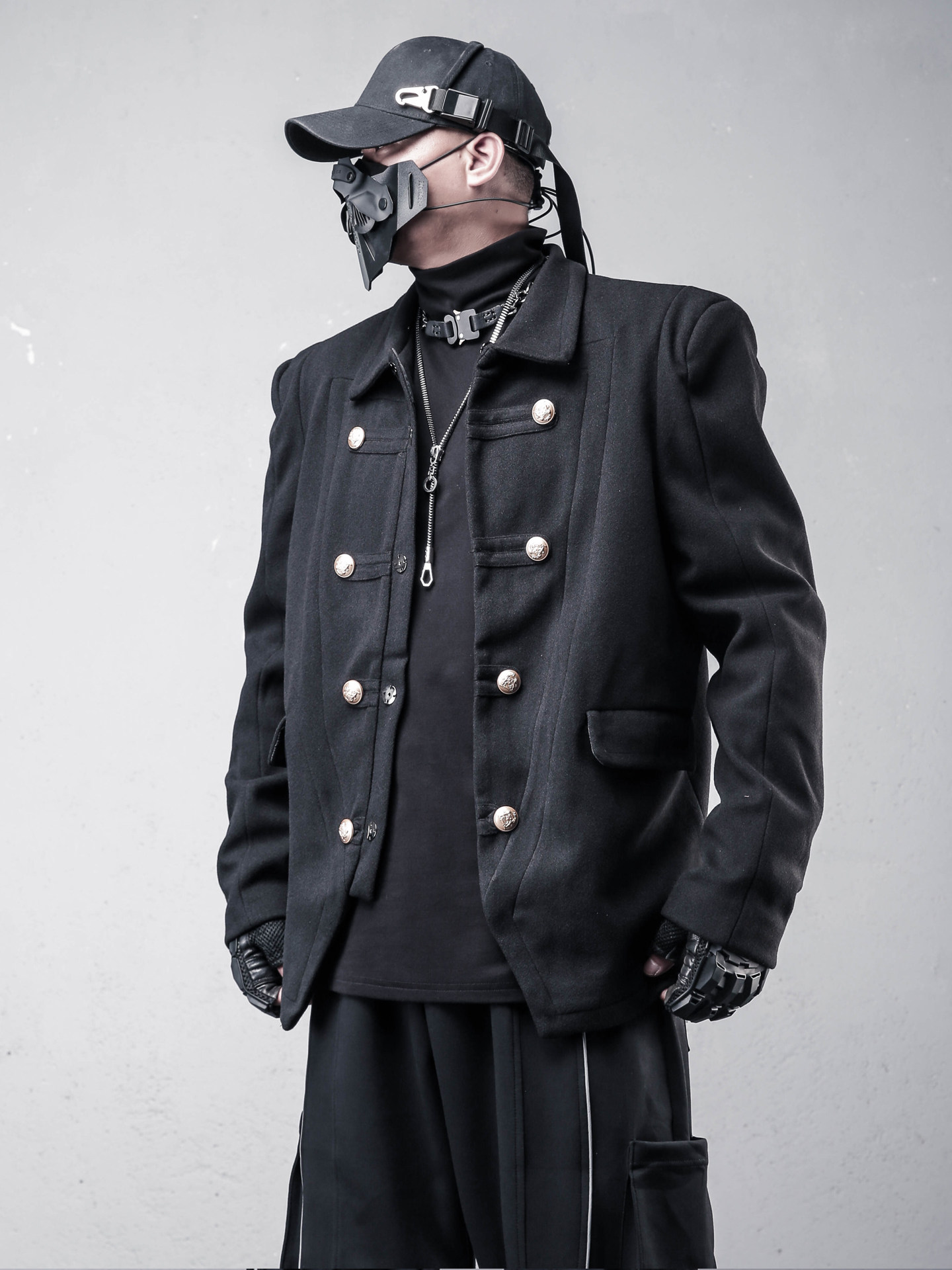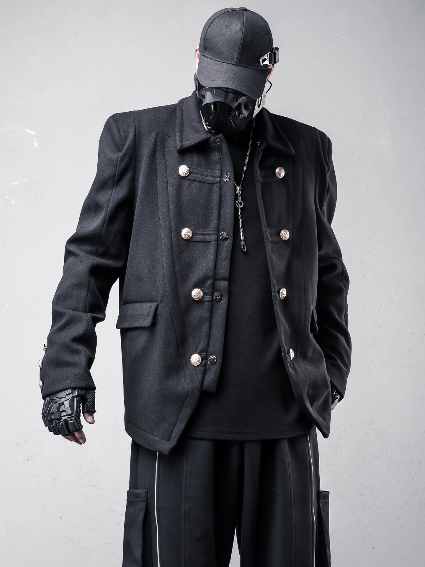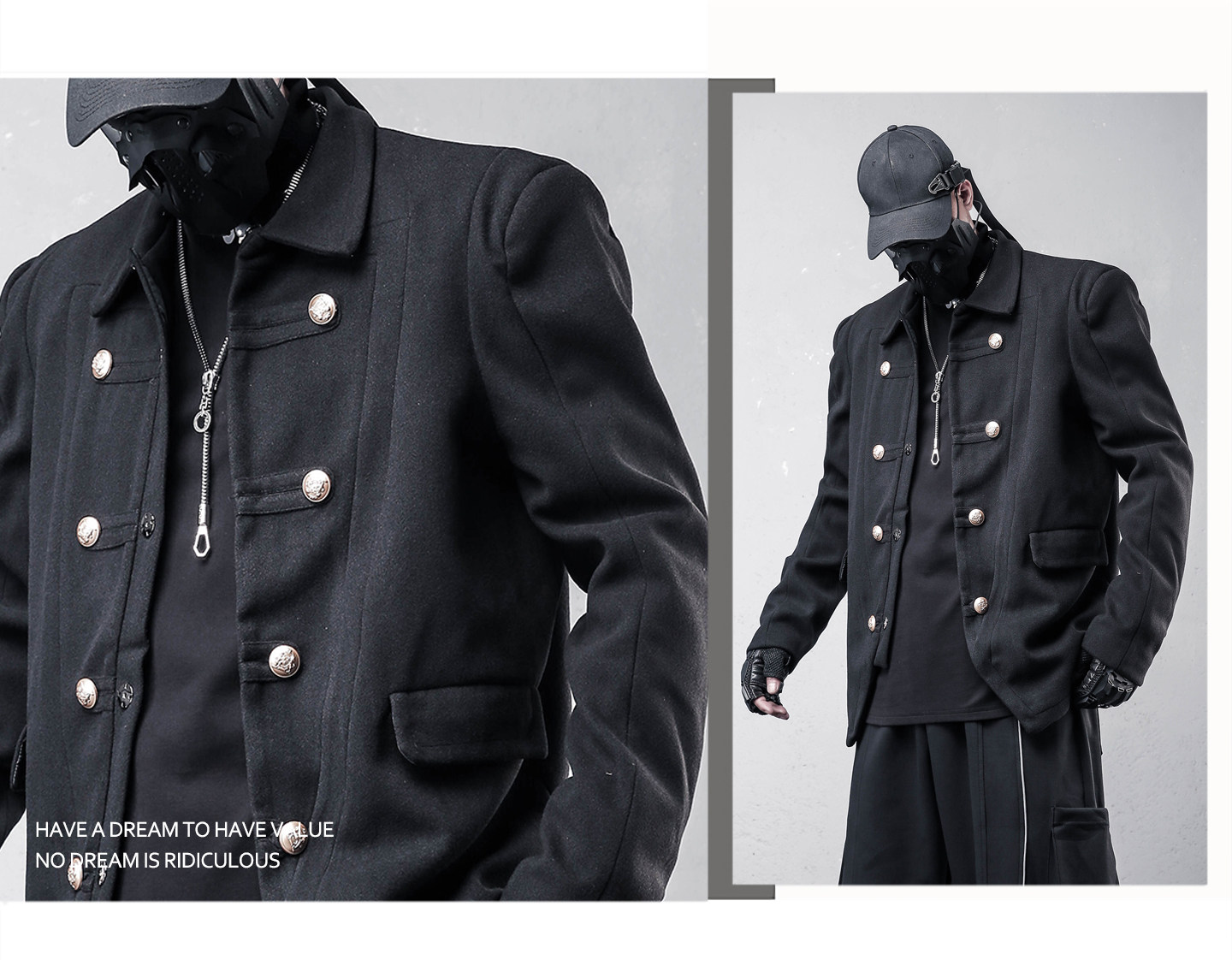 Tweed Metal Button Shoulder-Pad Short Jacket WN22570