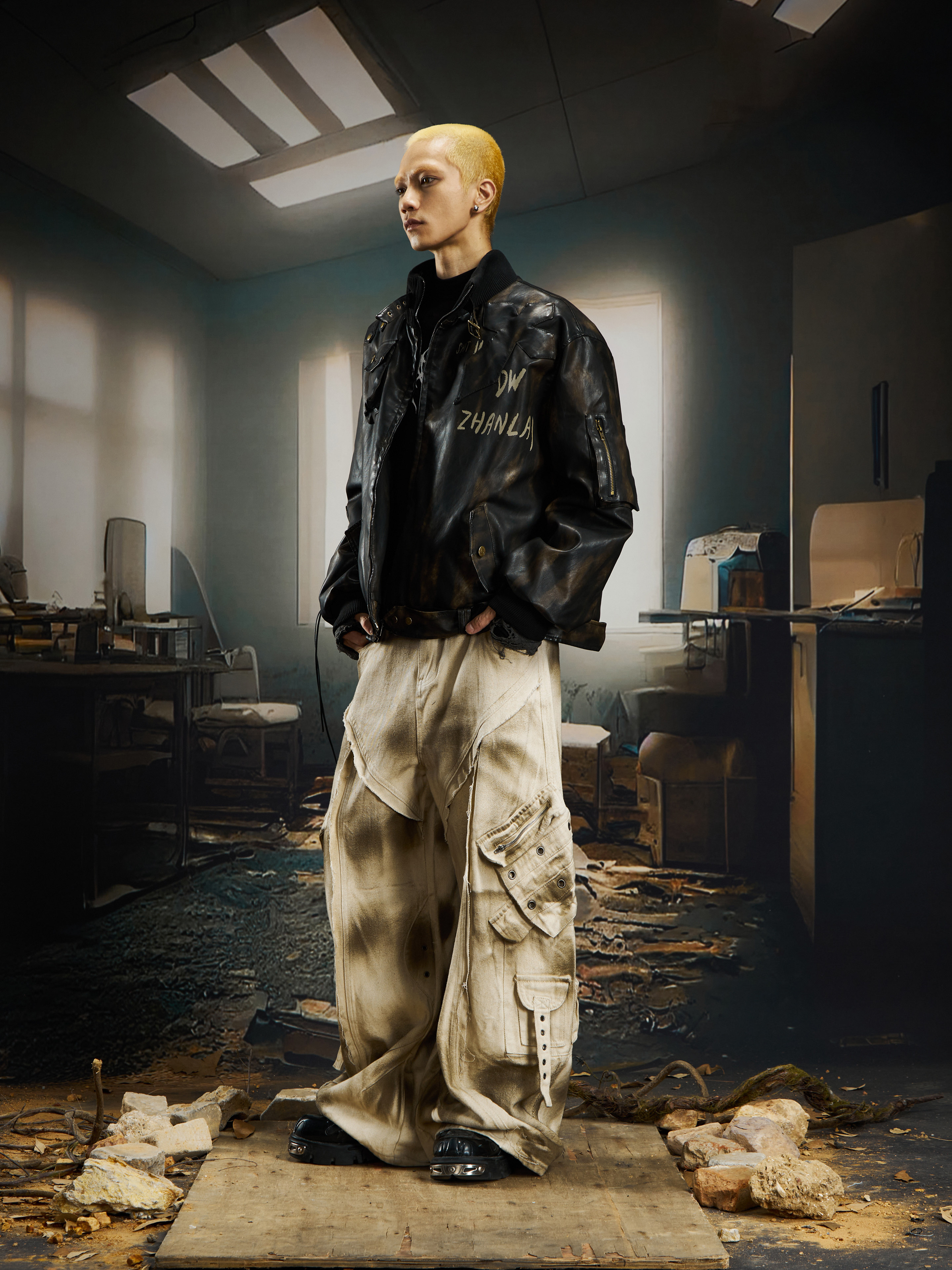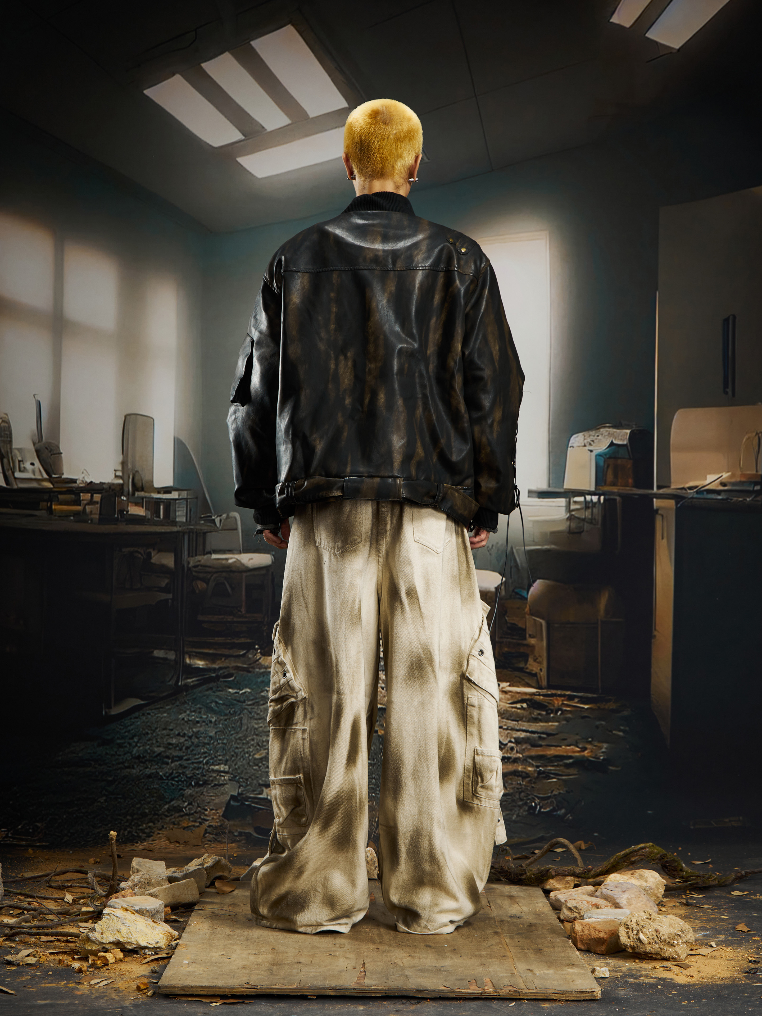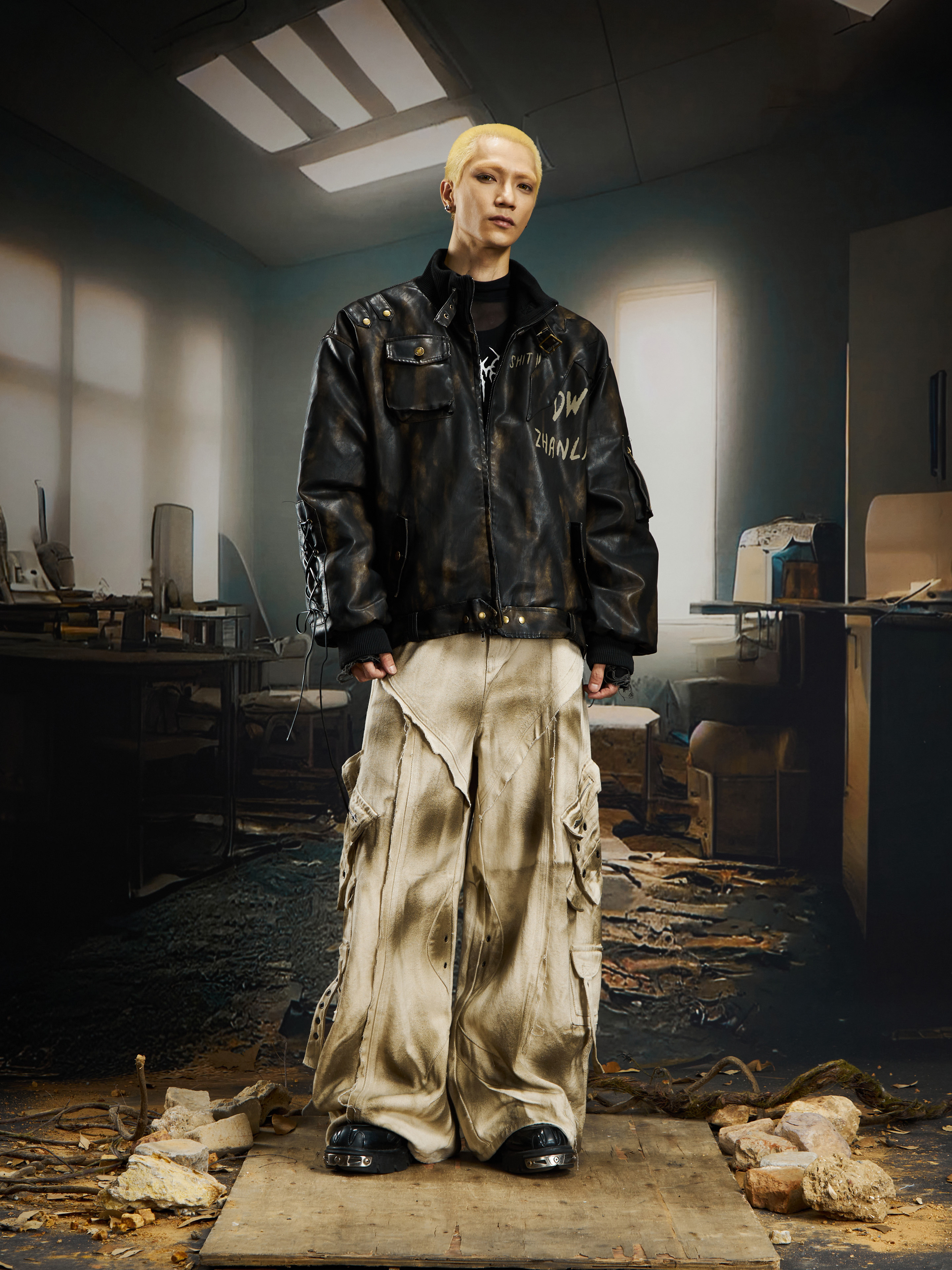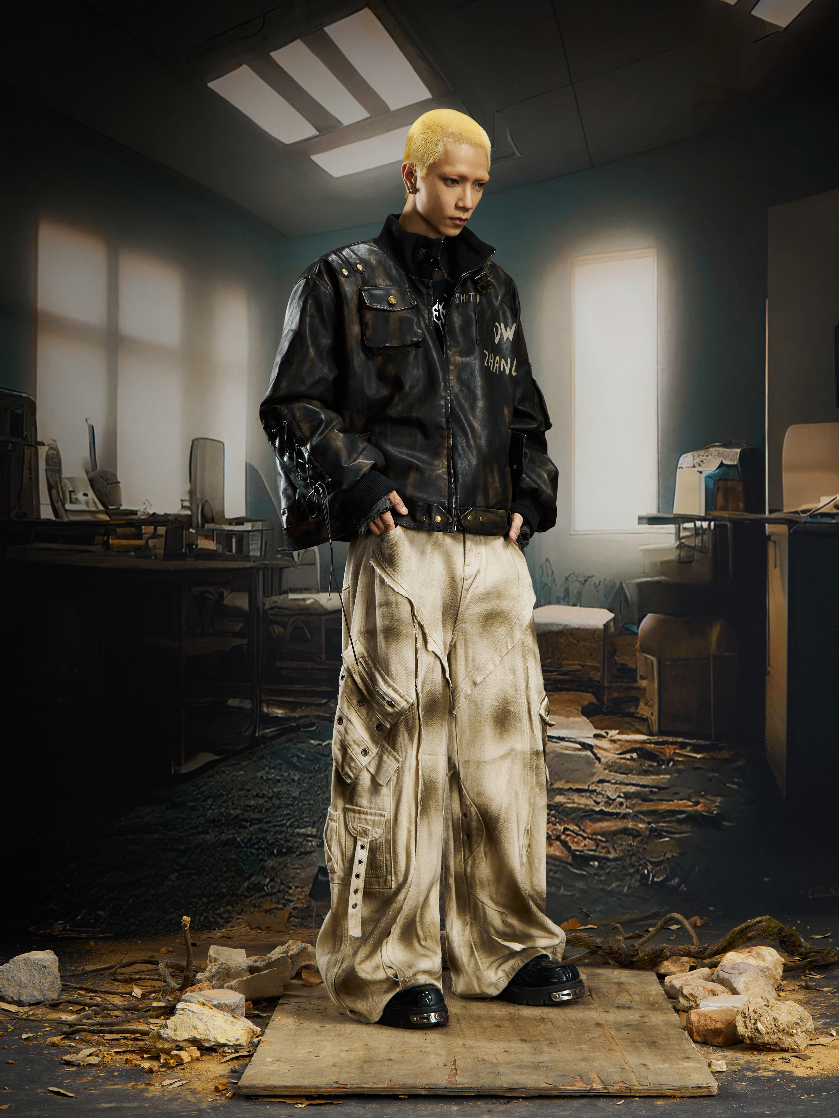 Washed Ink Spray Multi Pocket Cargo Pants WN22769