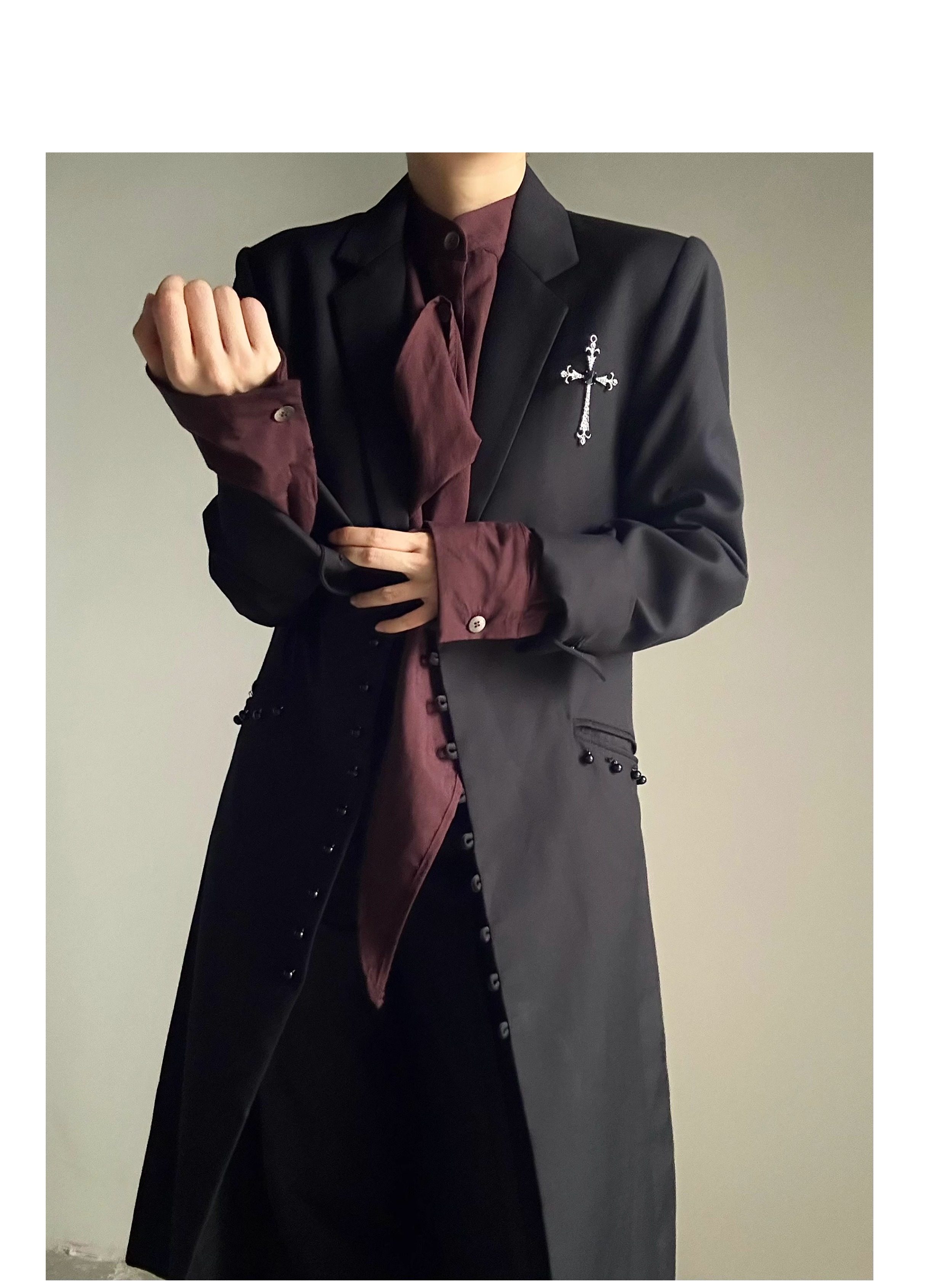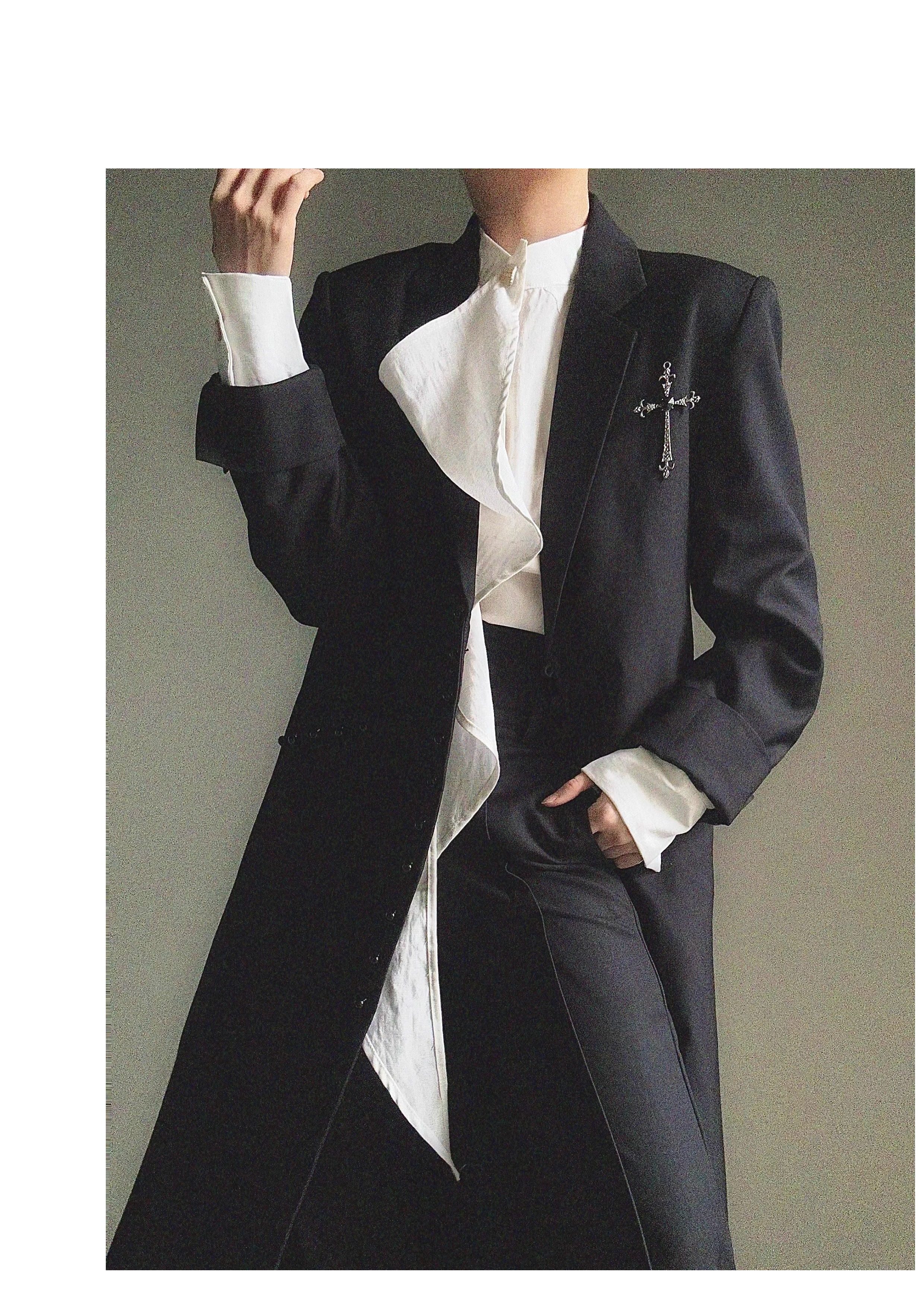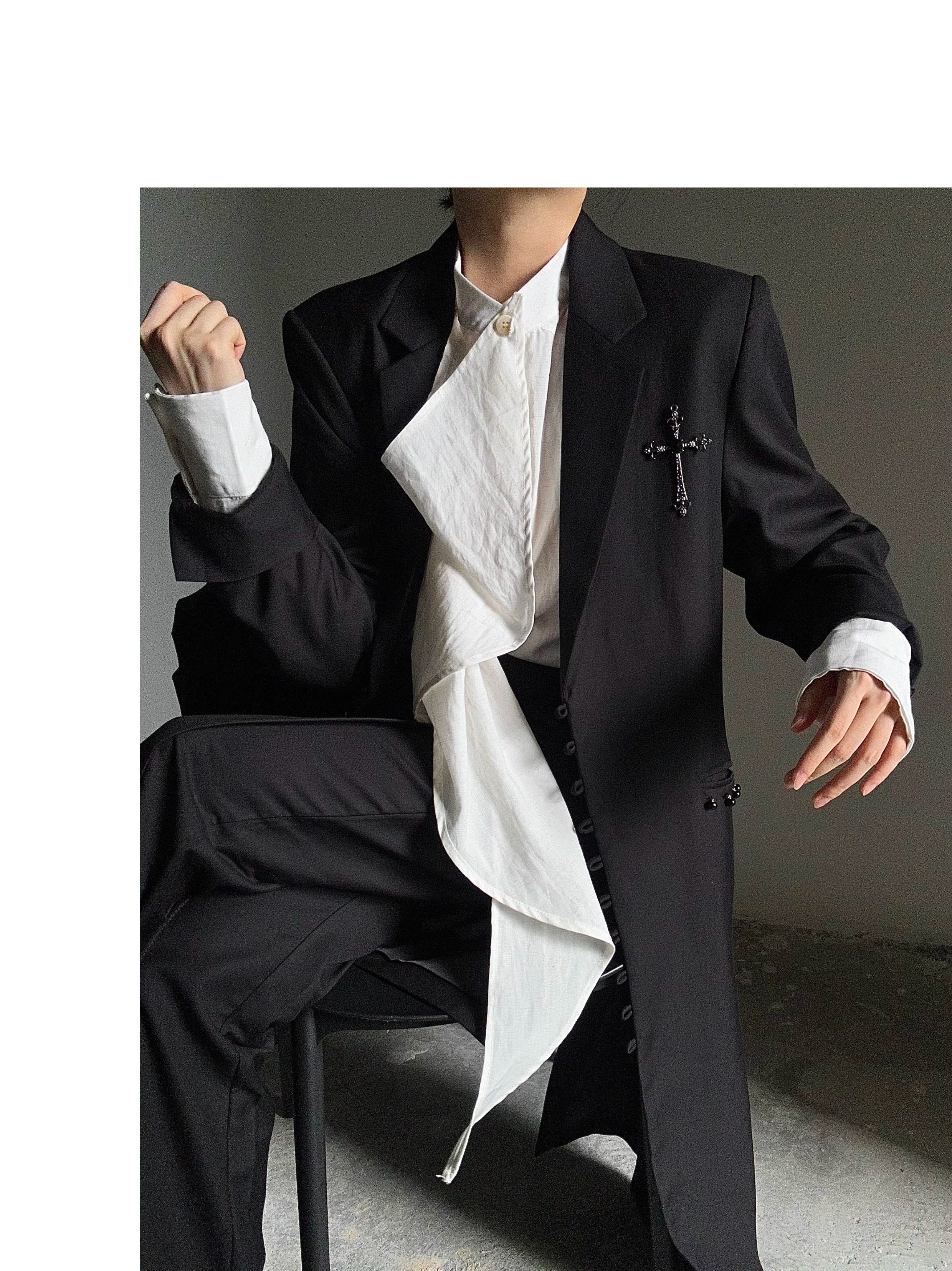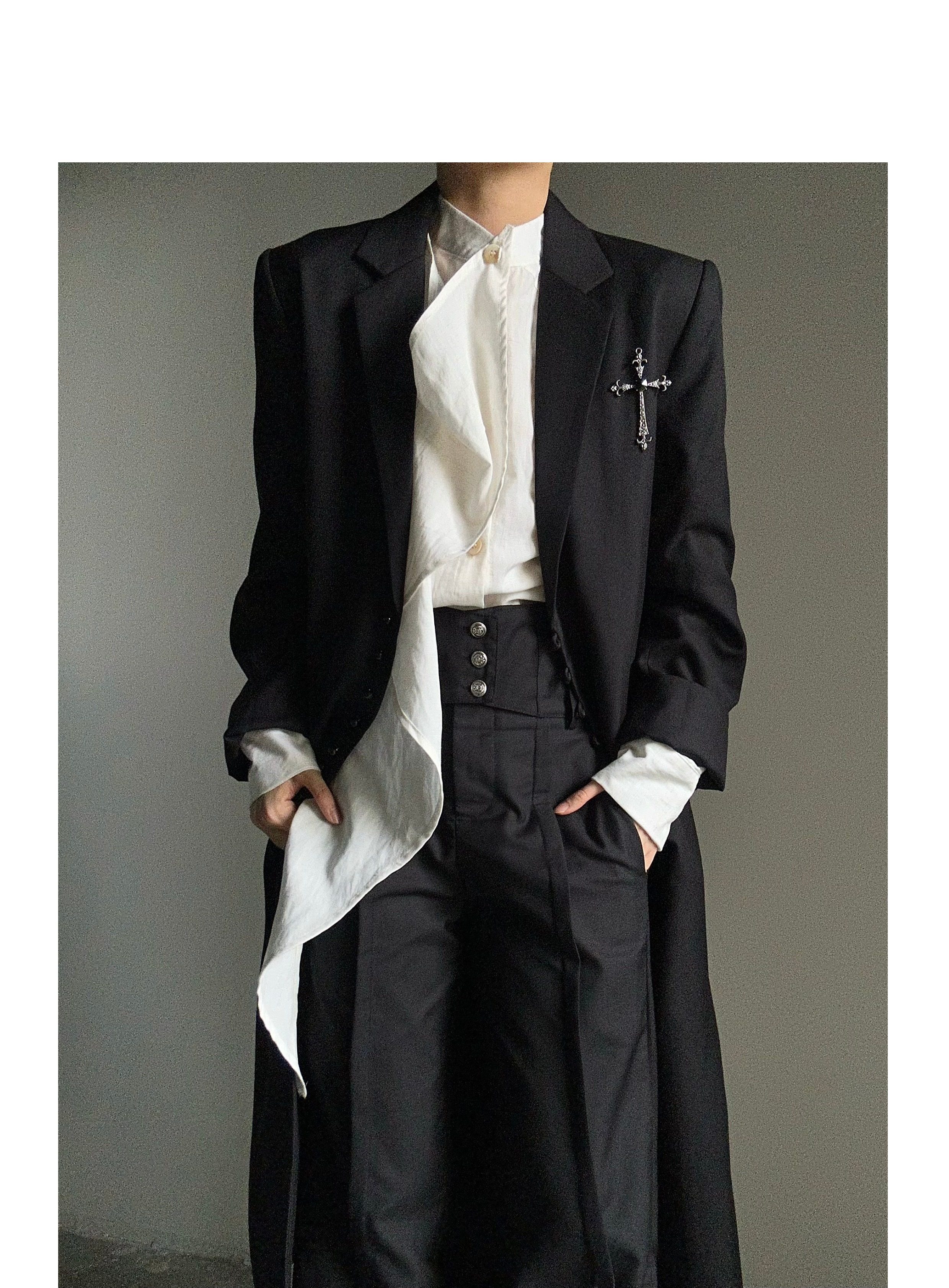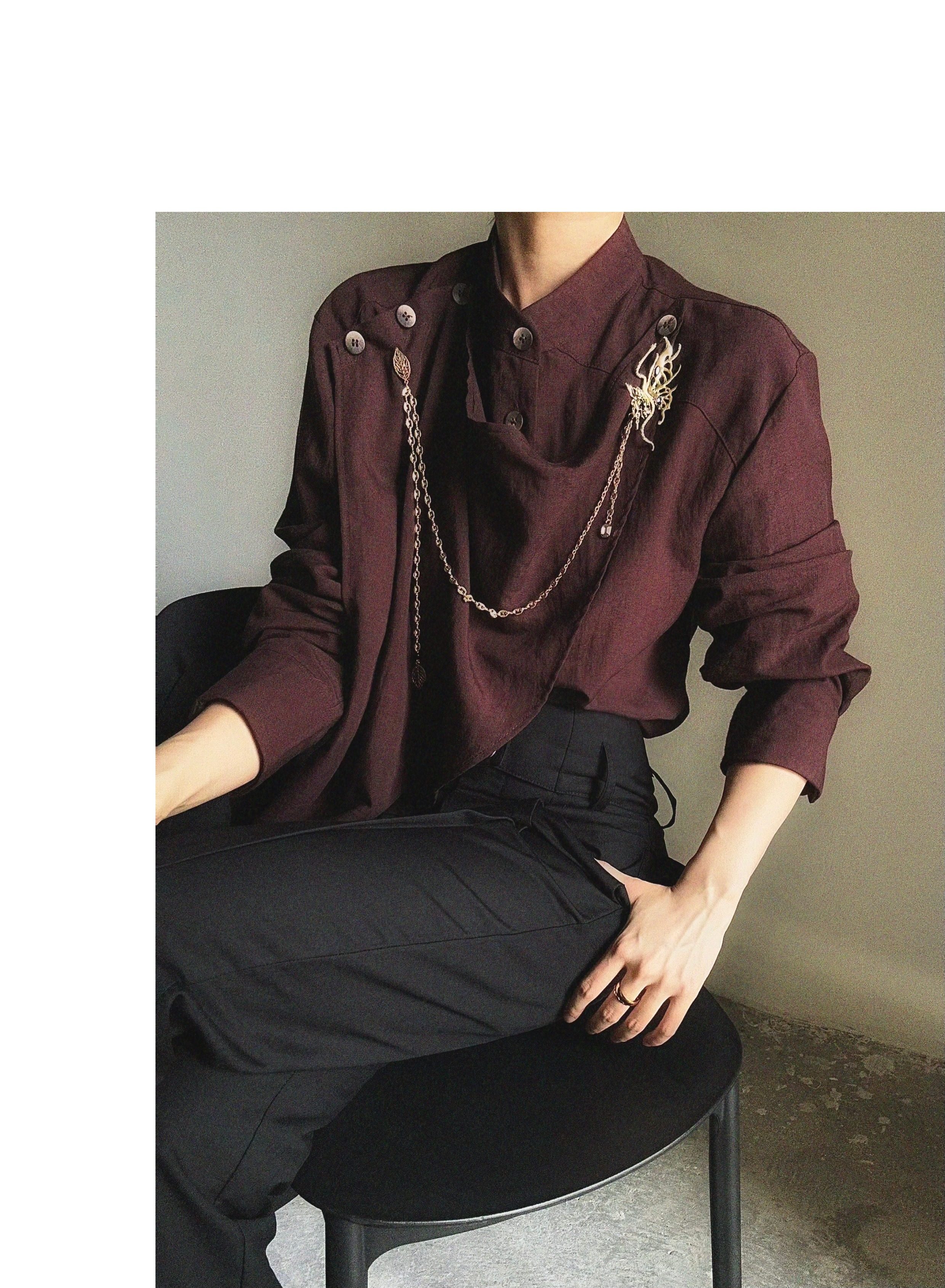Standing-Collar Asymmetric Drape Long Sleeve Shirt WN23132