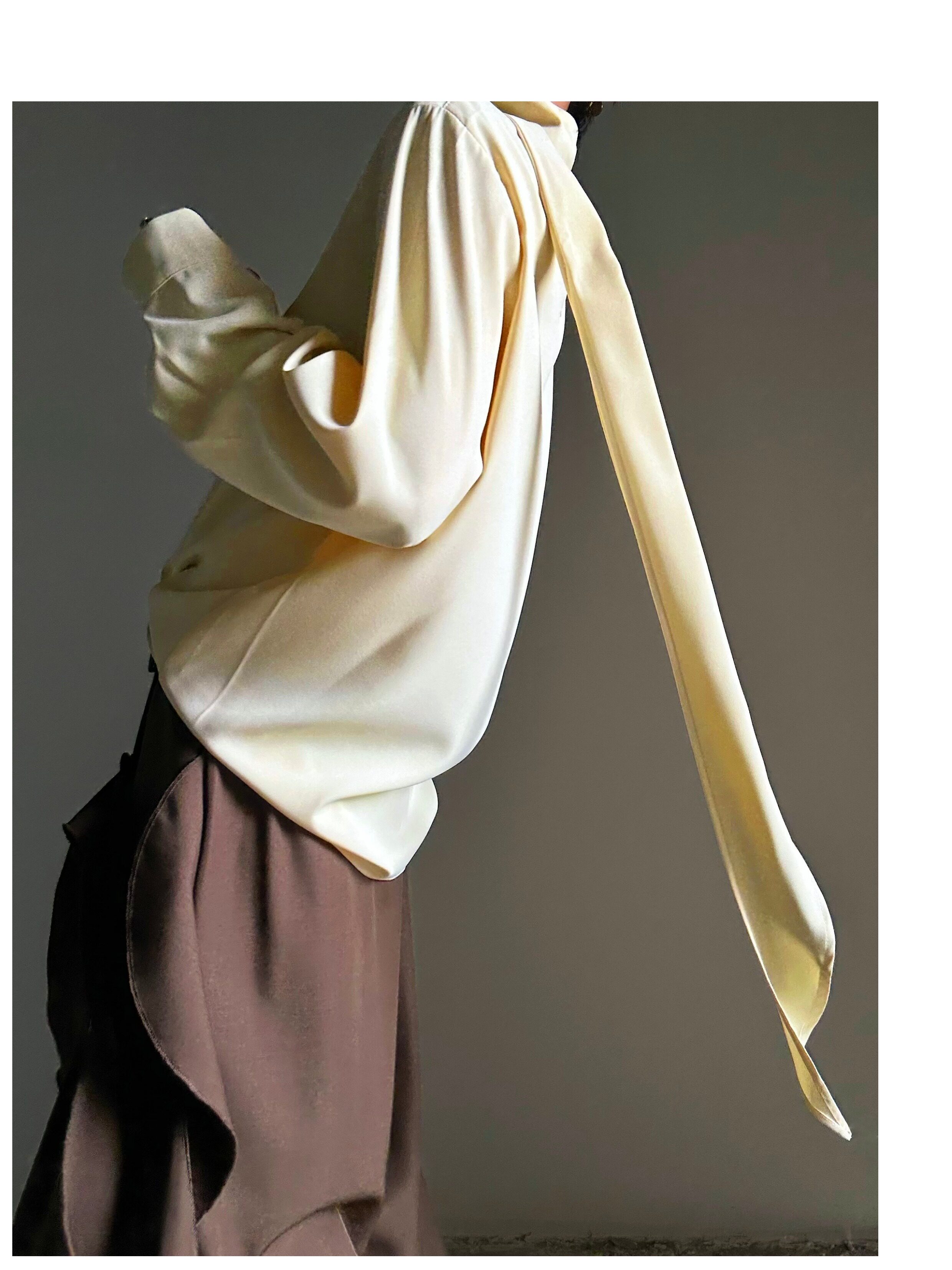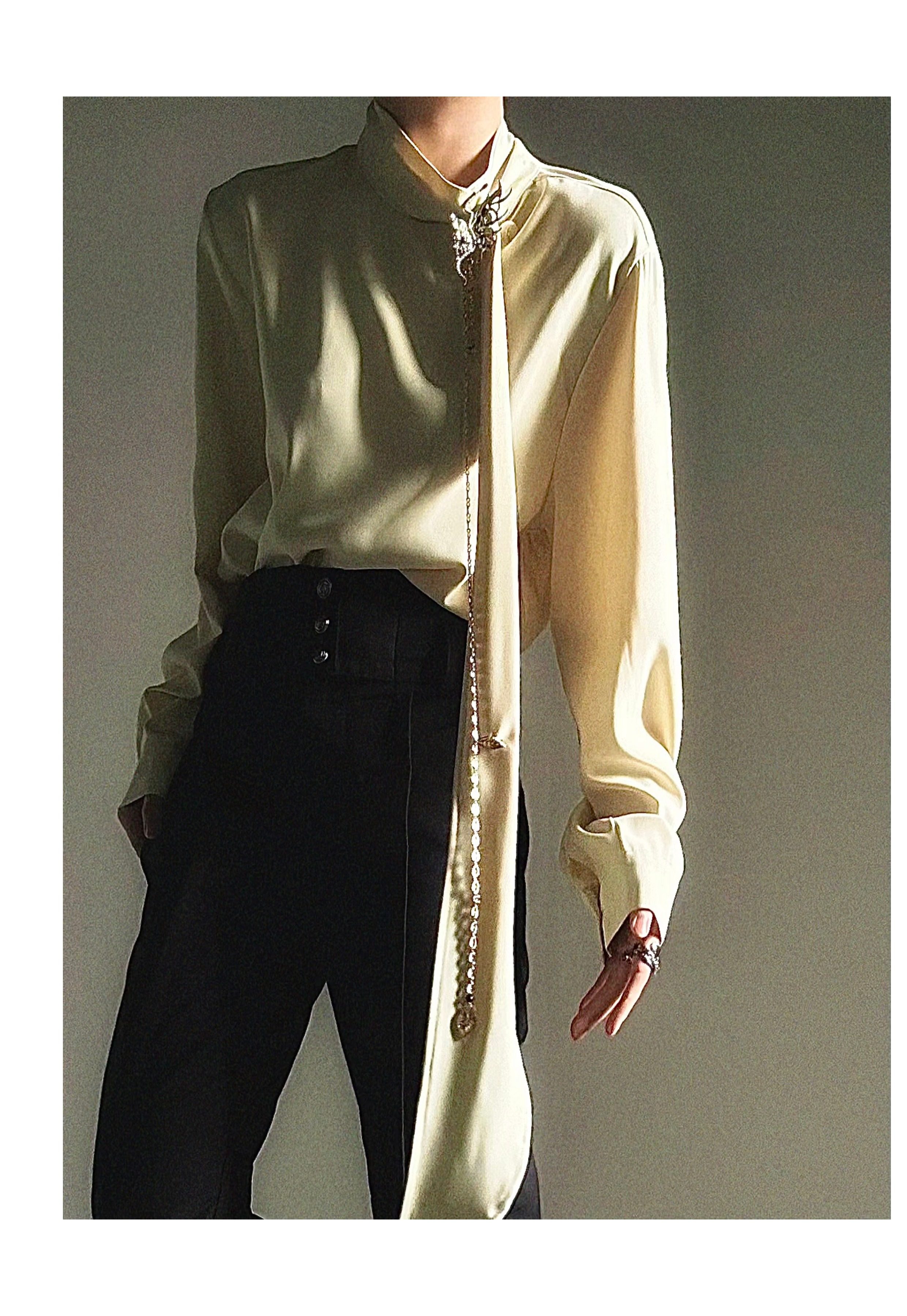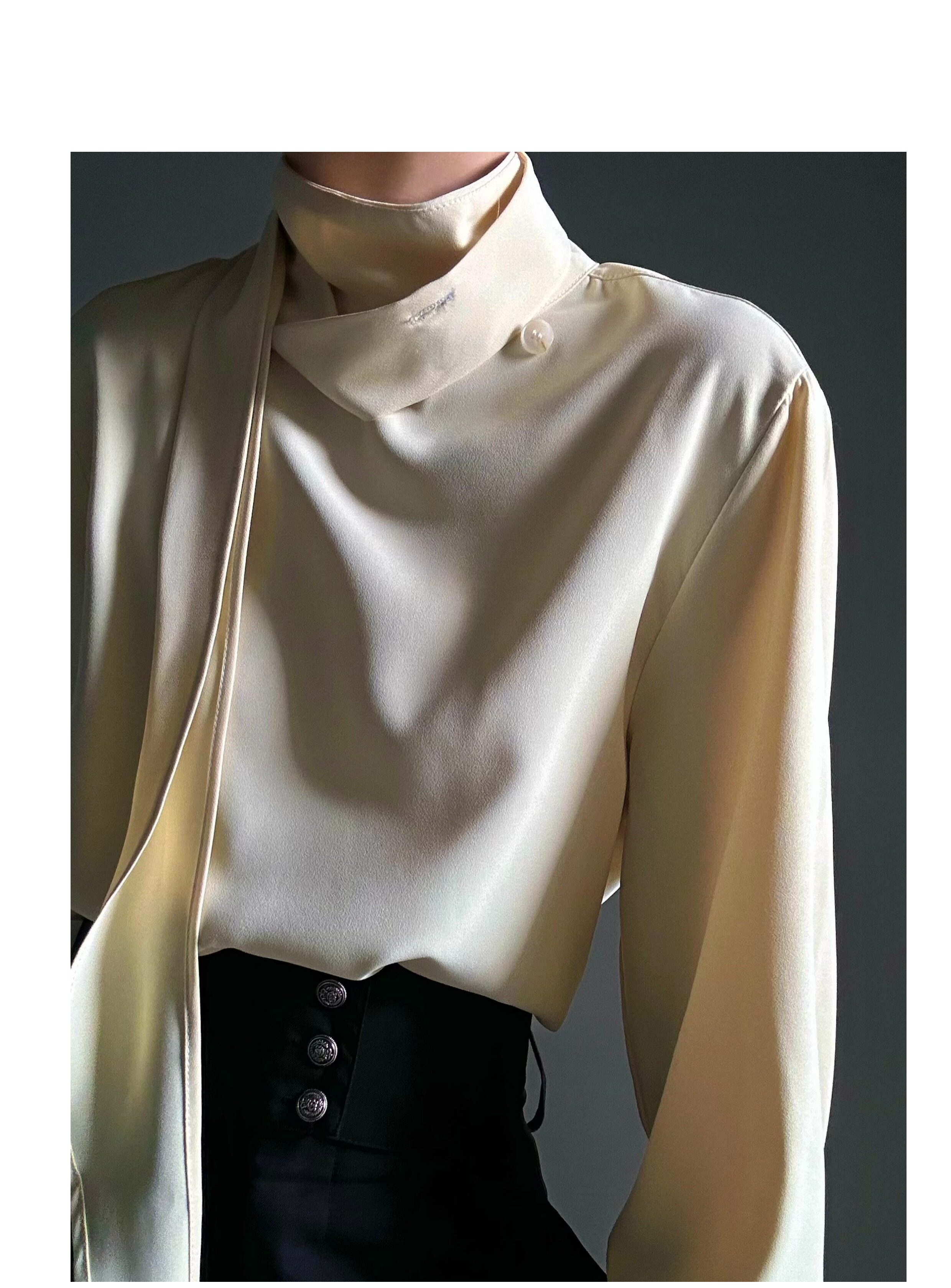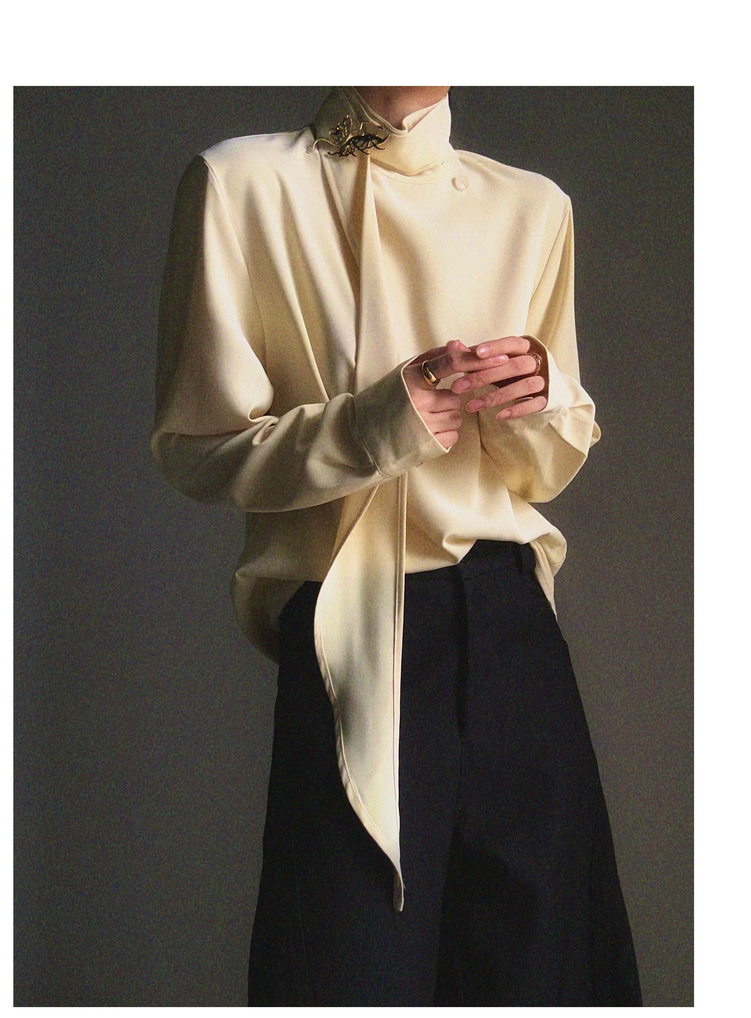 Standing-Collar Tie Drape Long Sleeve Shirt WN23136