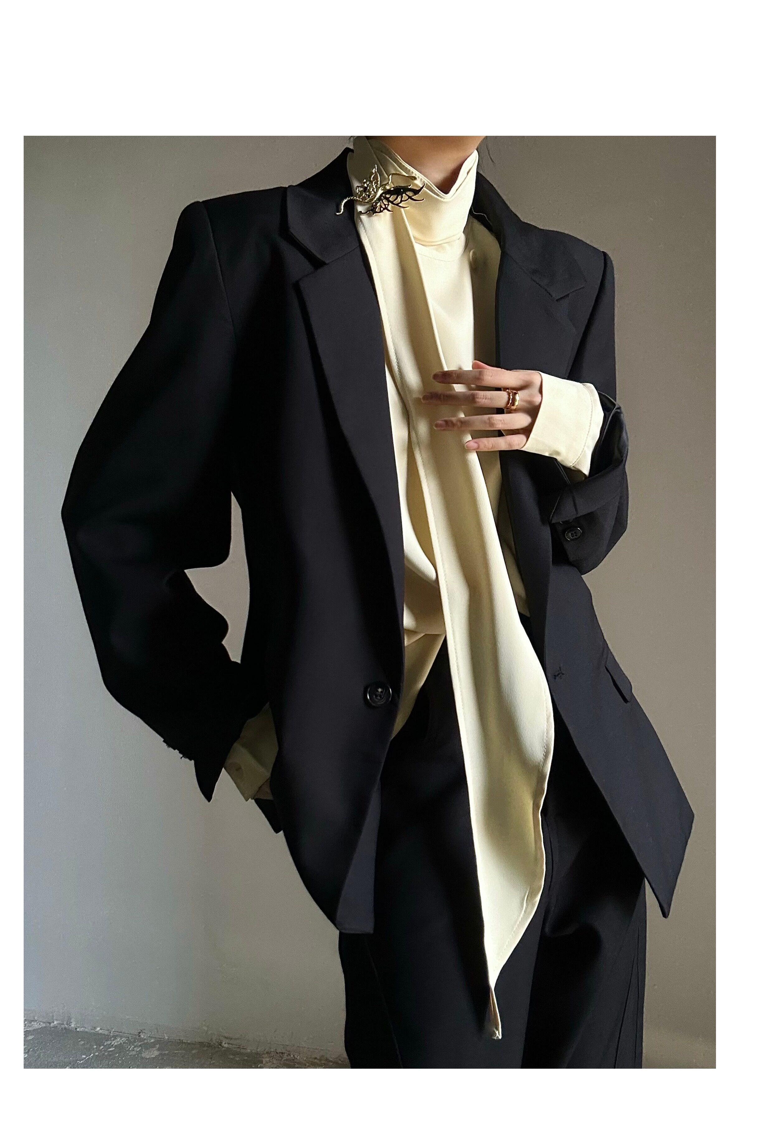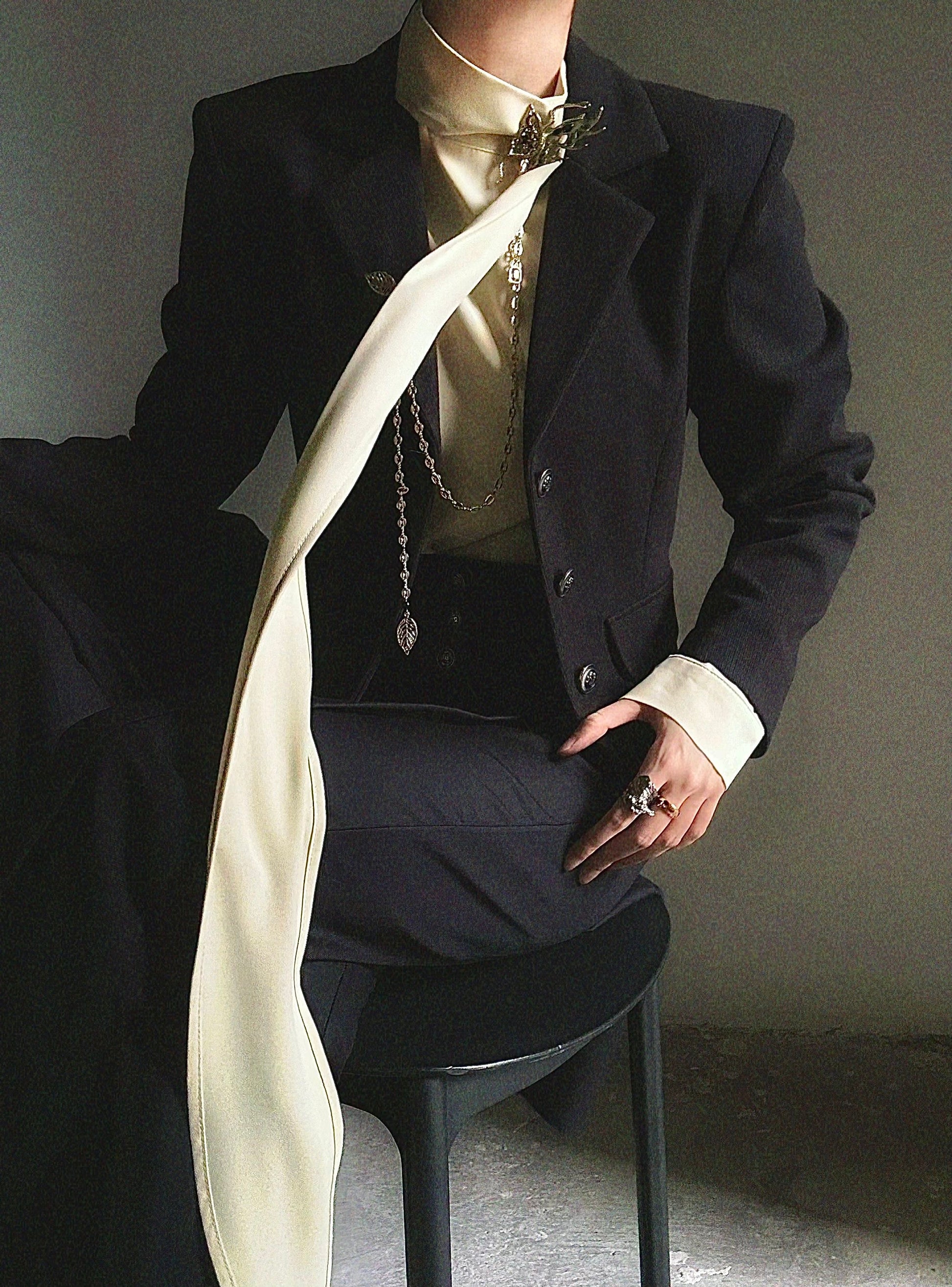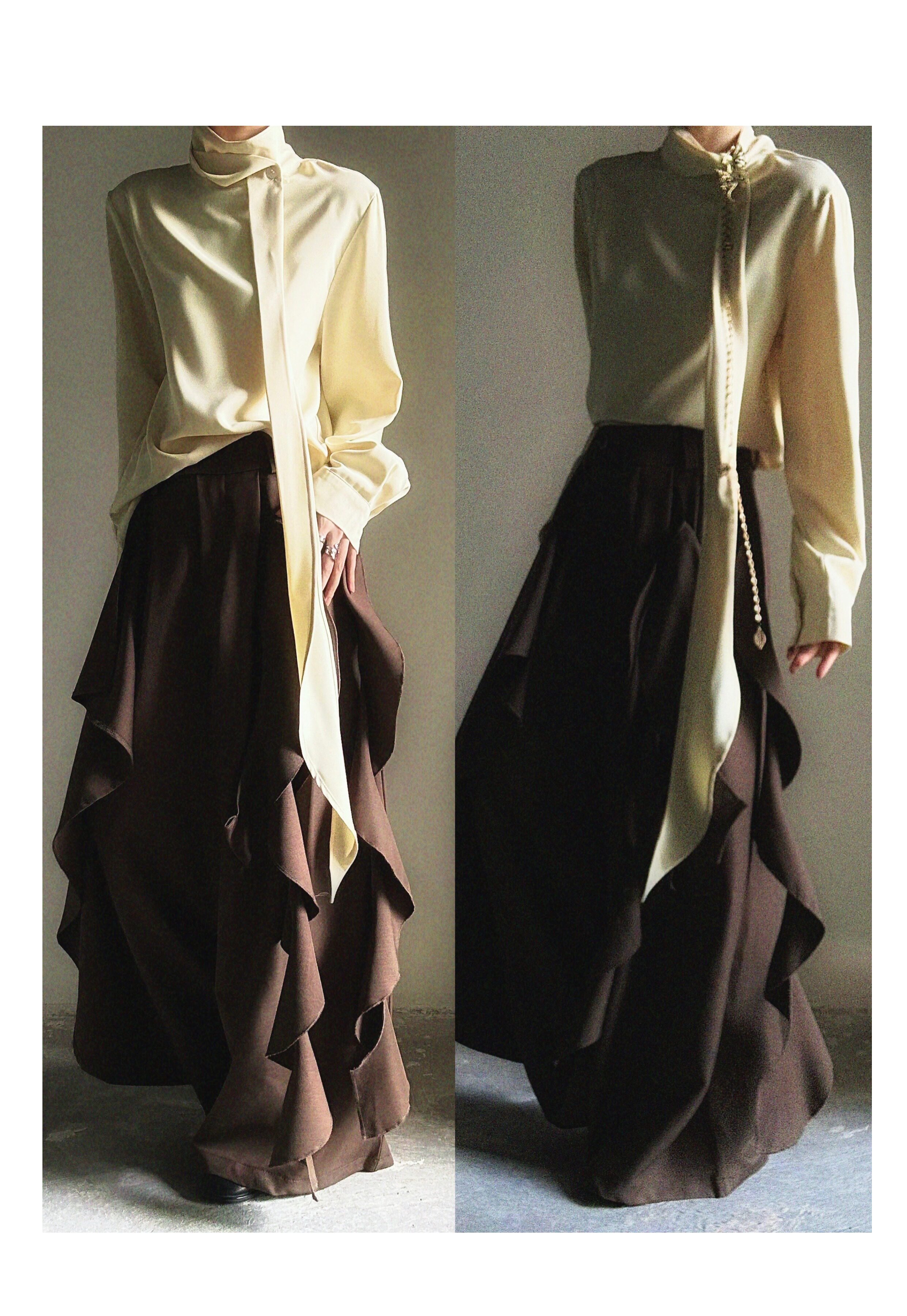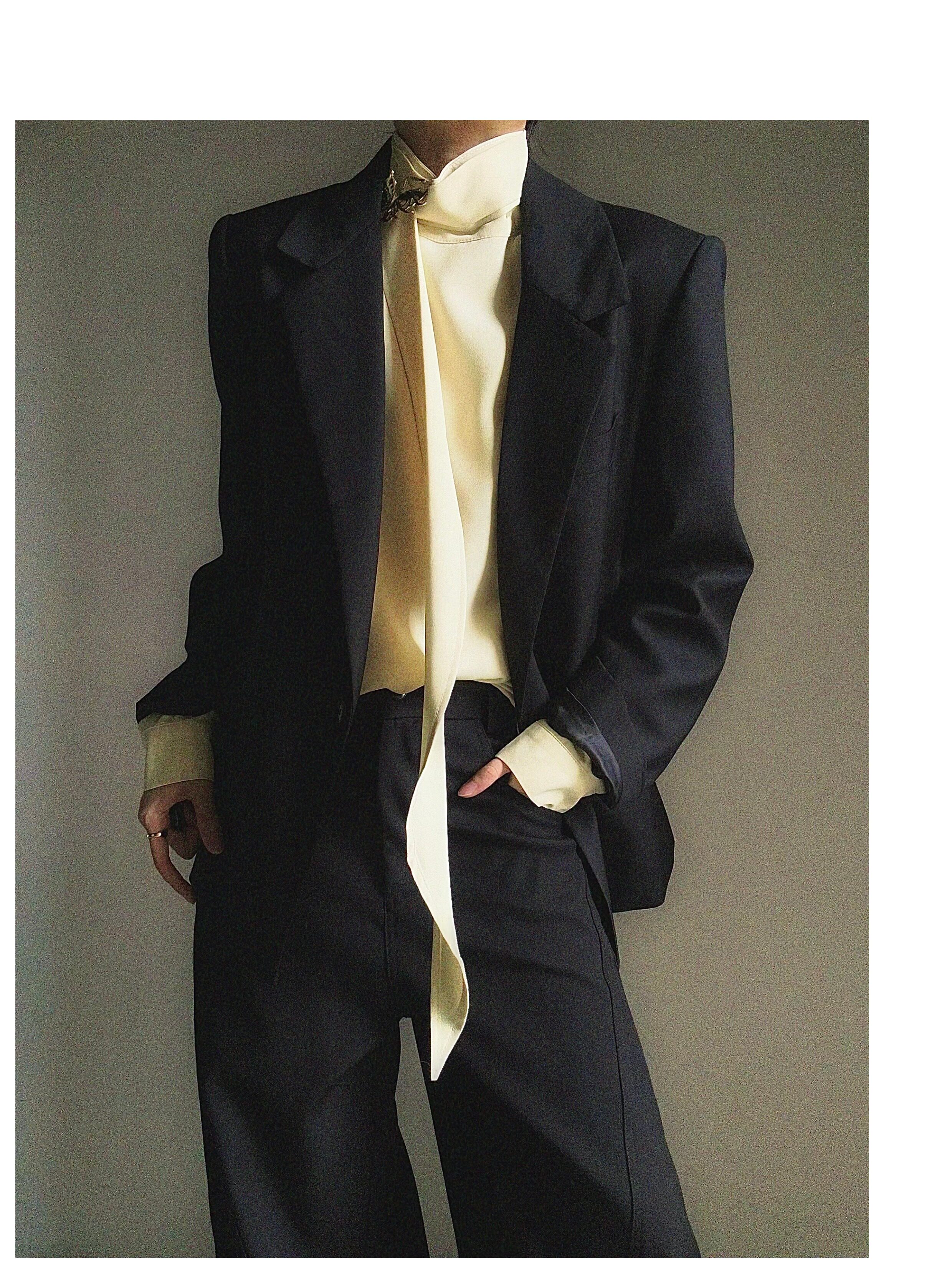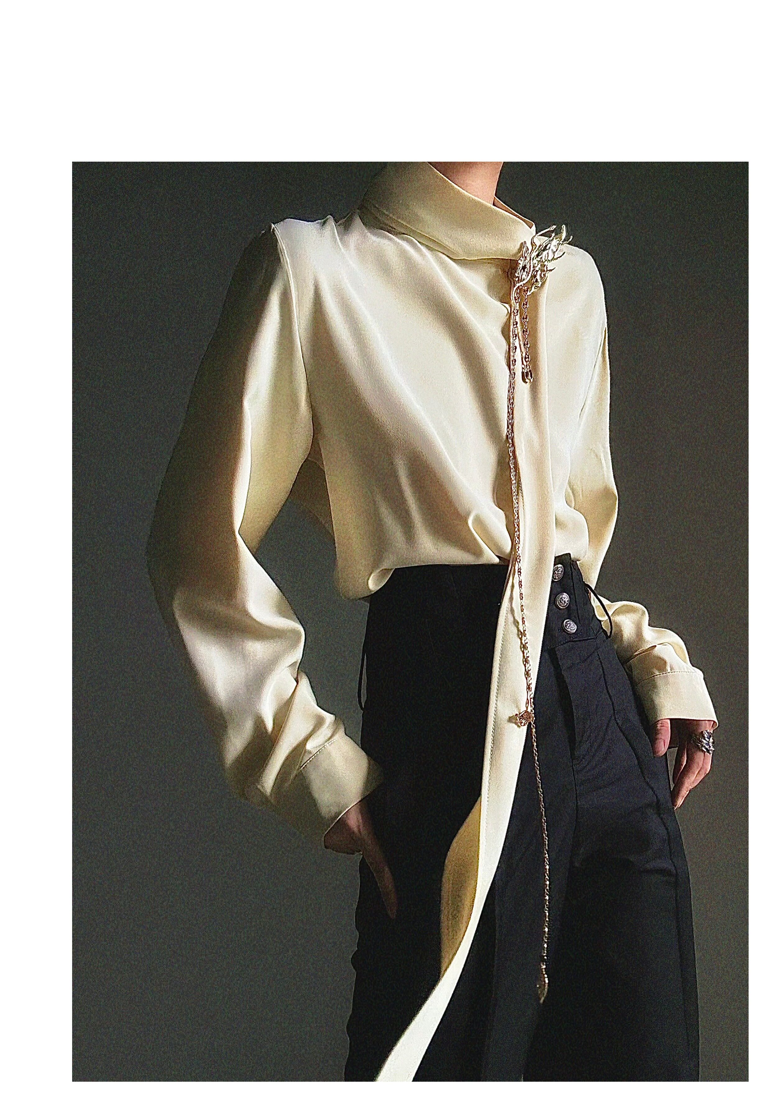 Standing-Collar Tie Drape Long Sleeve Shirt WN23136