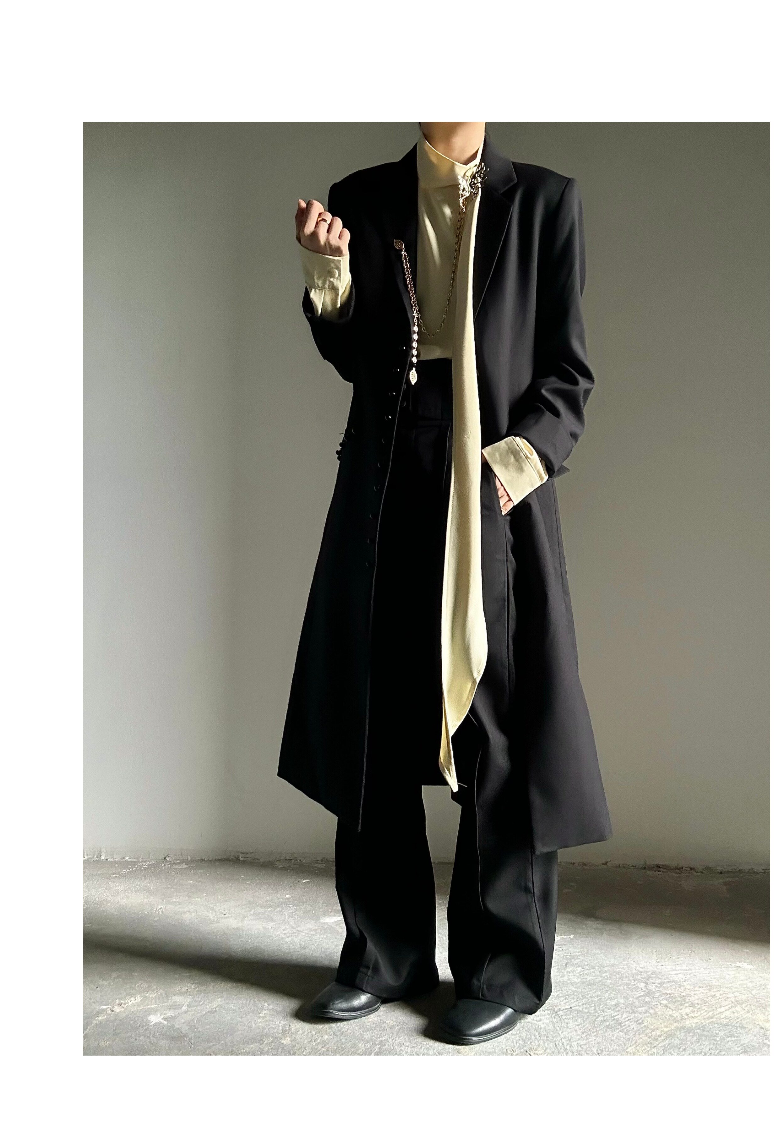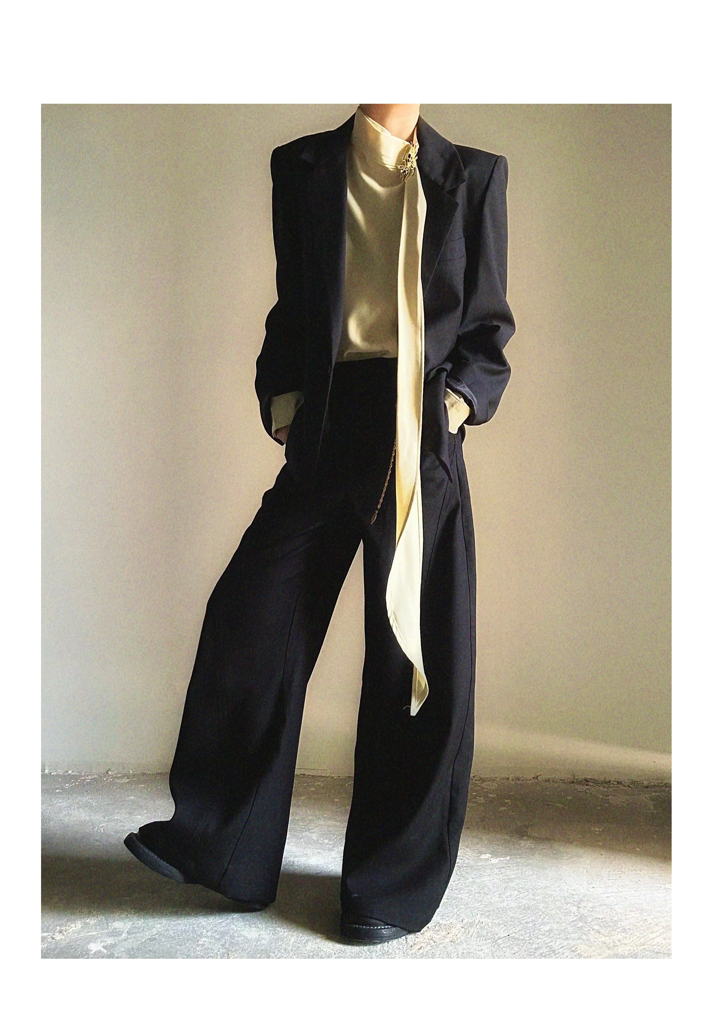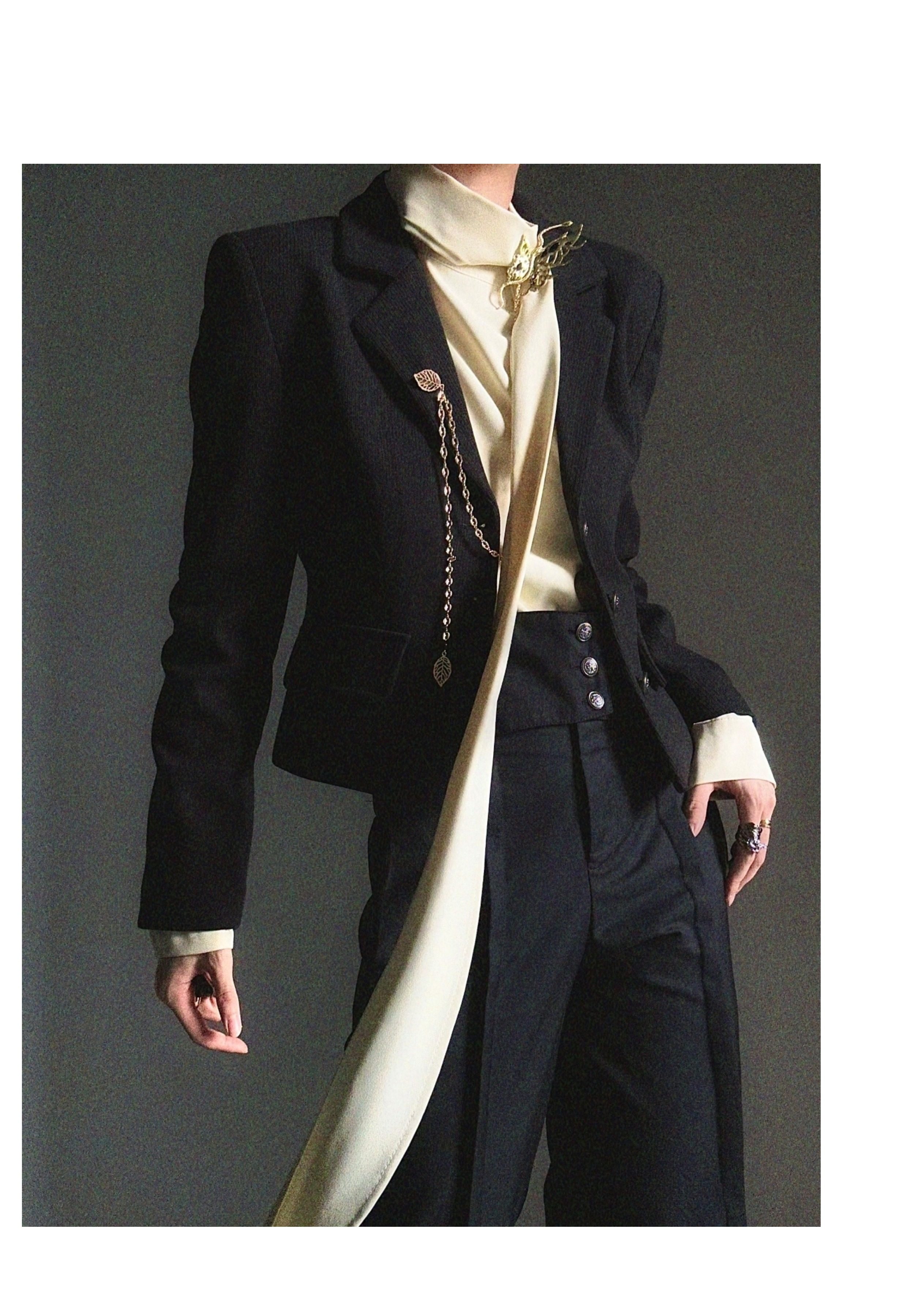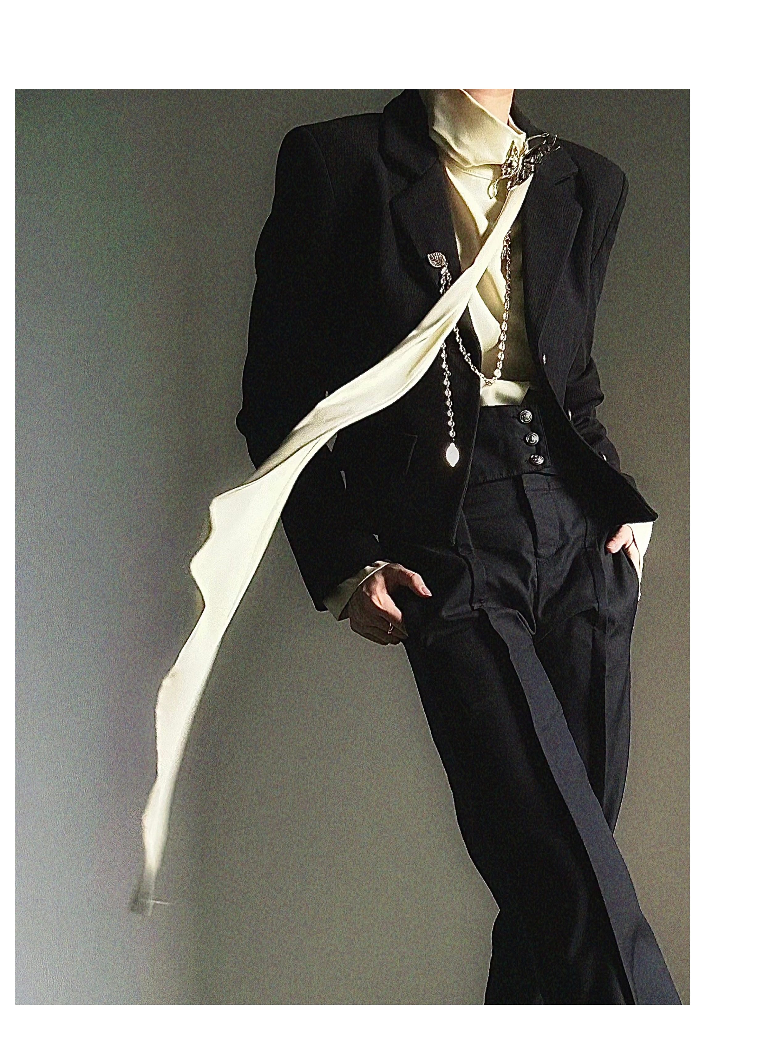 Standing-Collar Tie Drape Long Sleeve Shirt WN23136