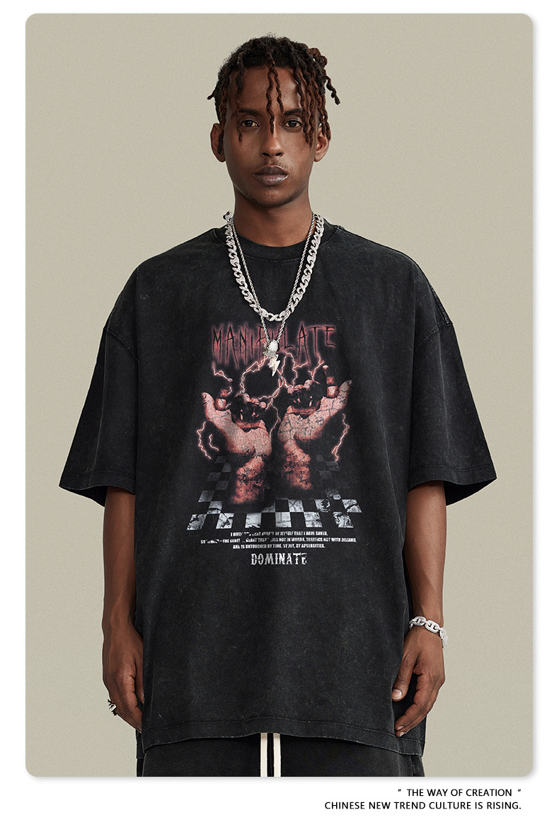 Washed Print Oversize Short-sleeve T-shirt WN6395