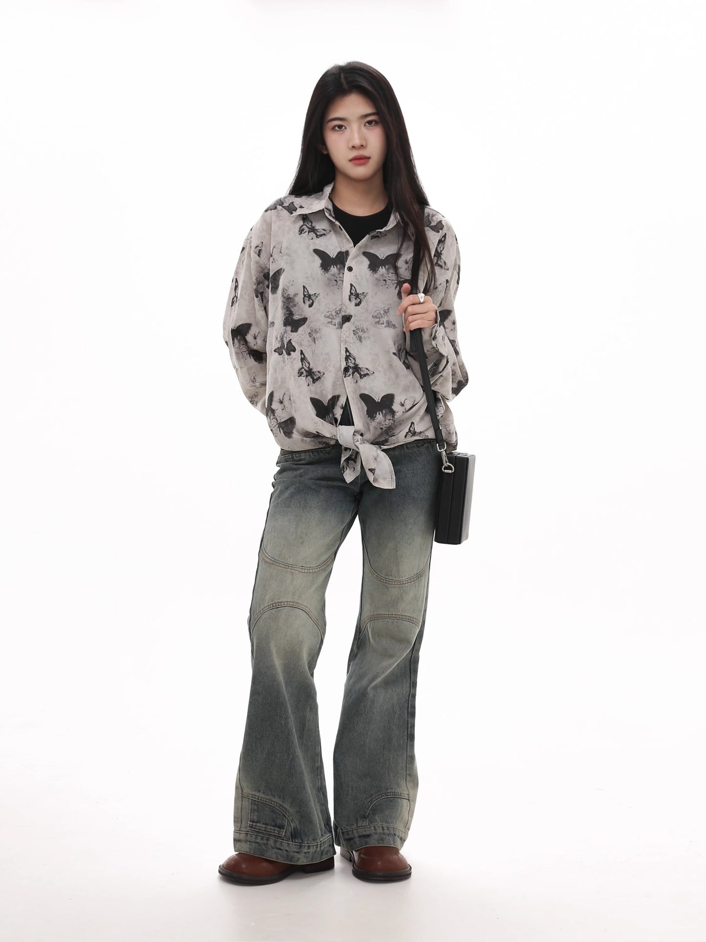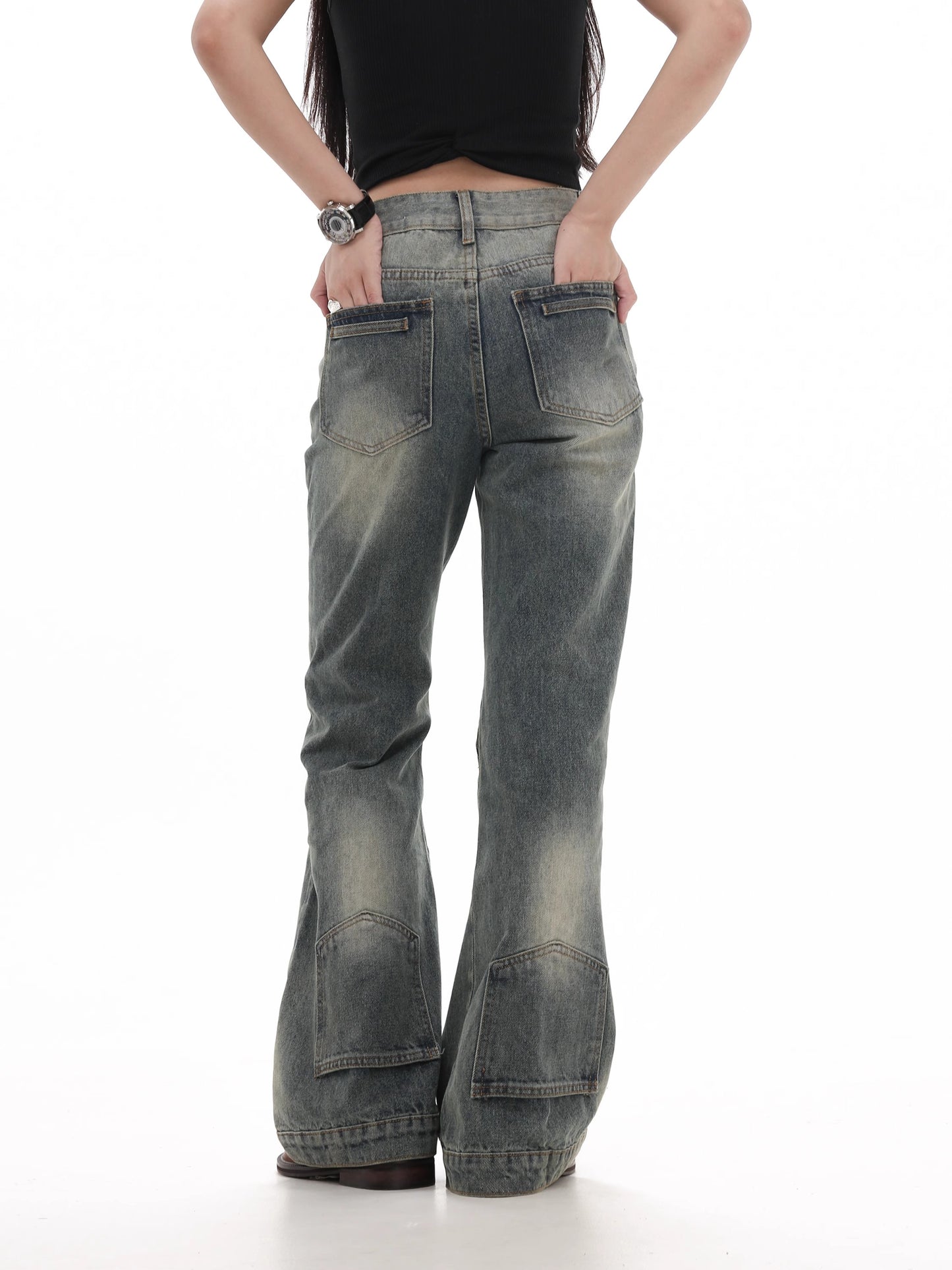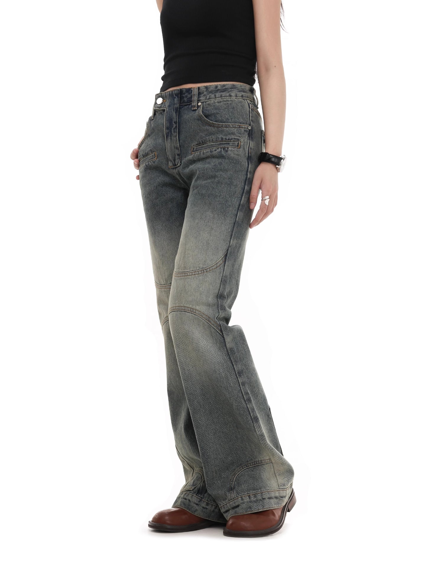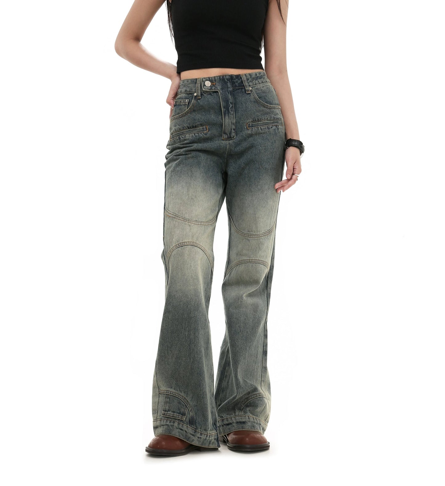 Damage Wide Leg Straight Denim Jeans WN7983