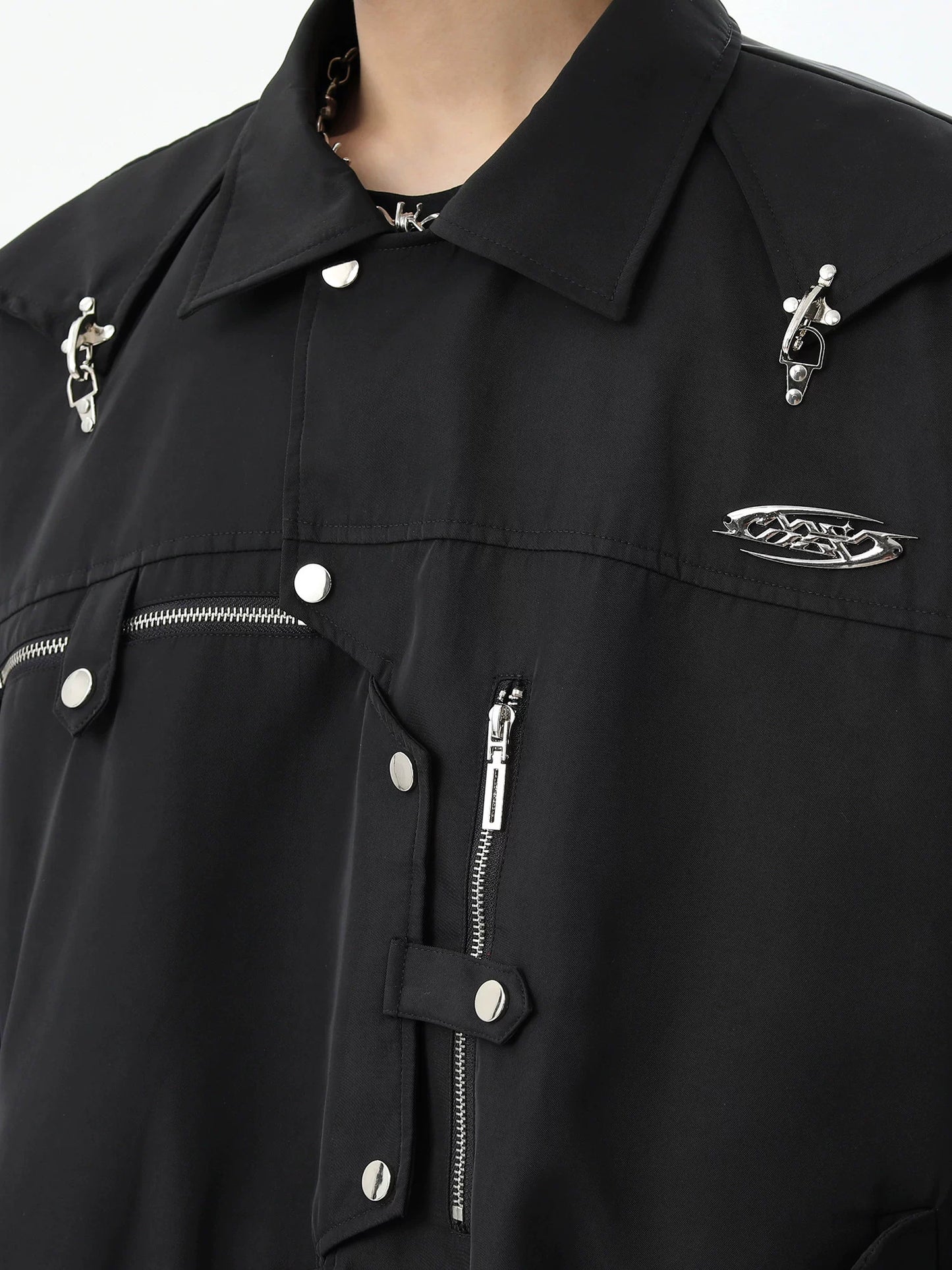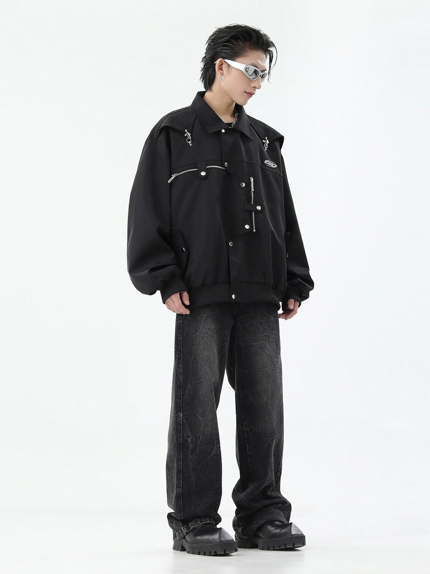 Oversize Metal Design Buckle Jacket WN10262