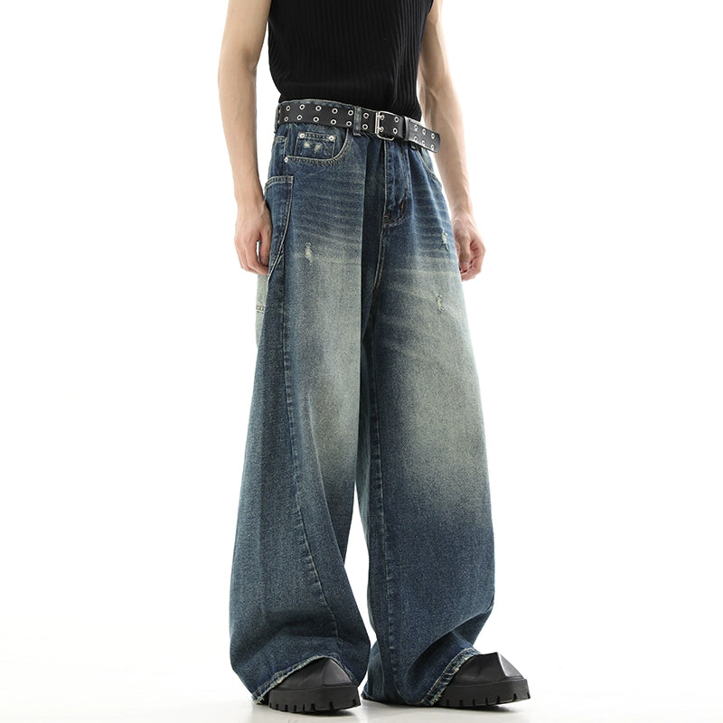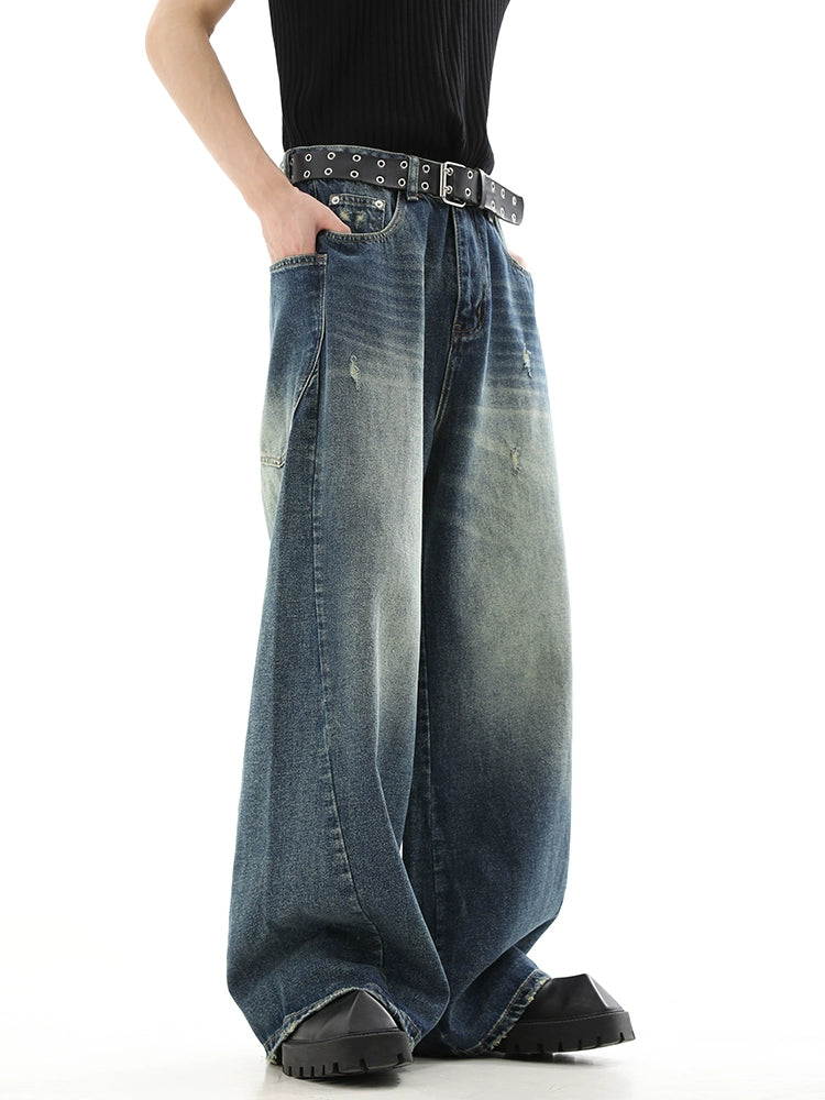 Faded Wide-Leg Straight Denim Jeans WN10266