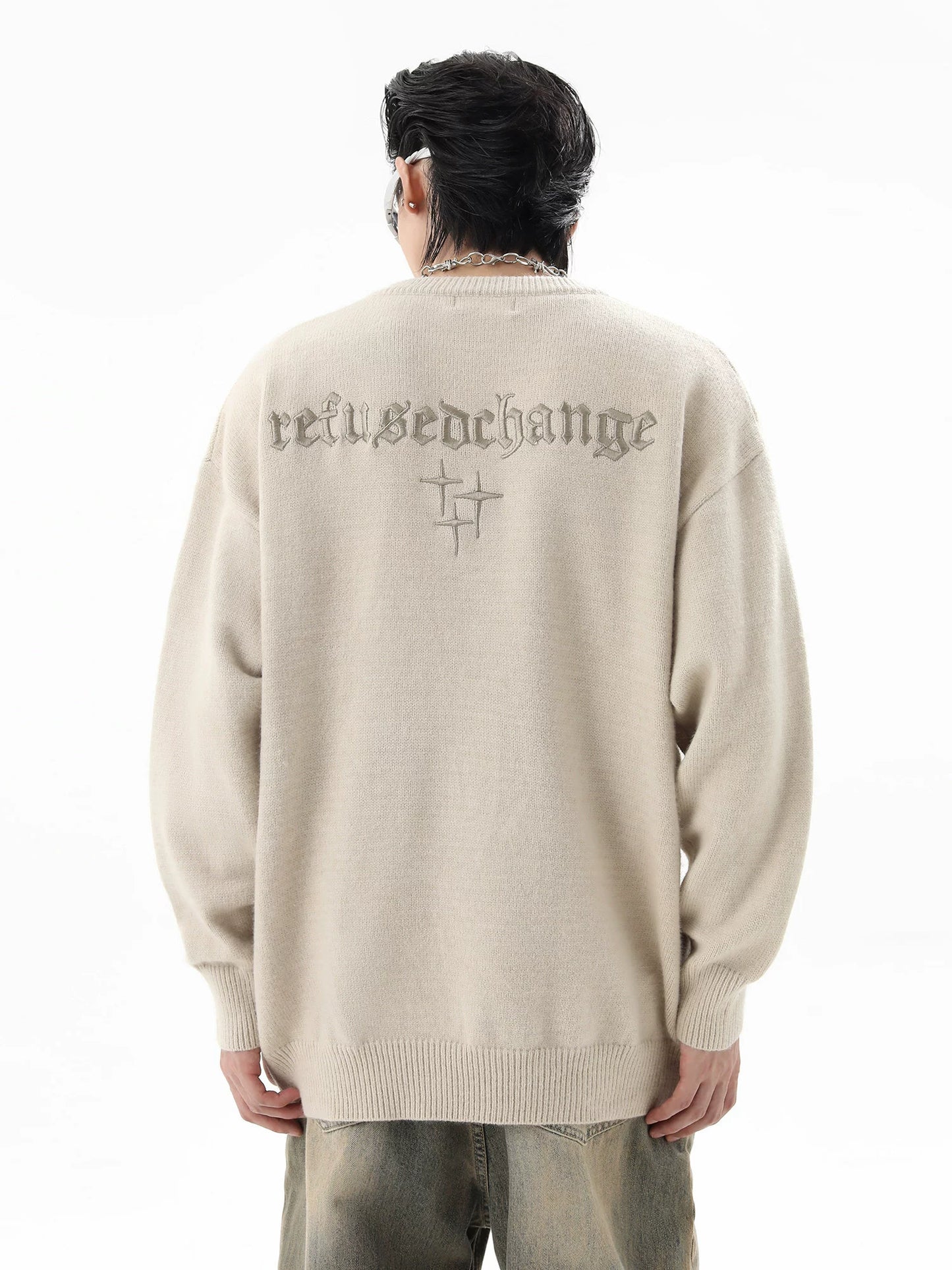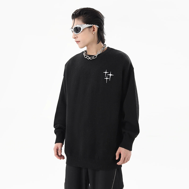 Embroidery Oversize Crewneck Knit Sweater WN10344