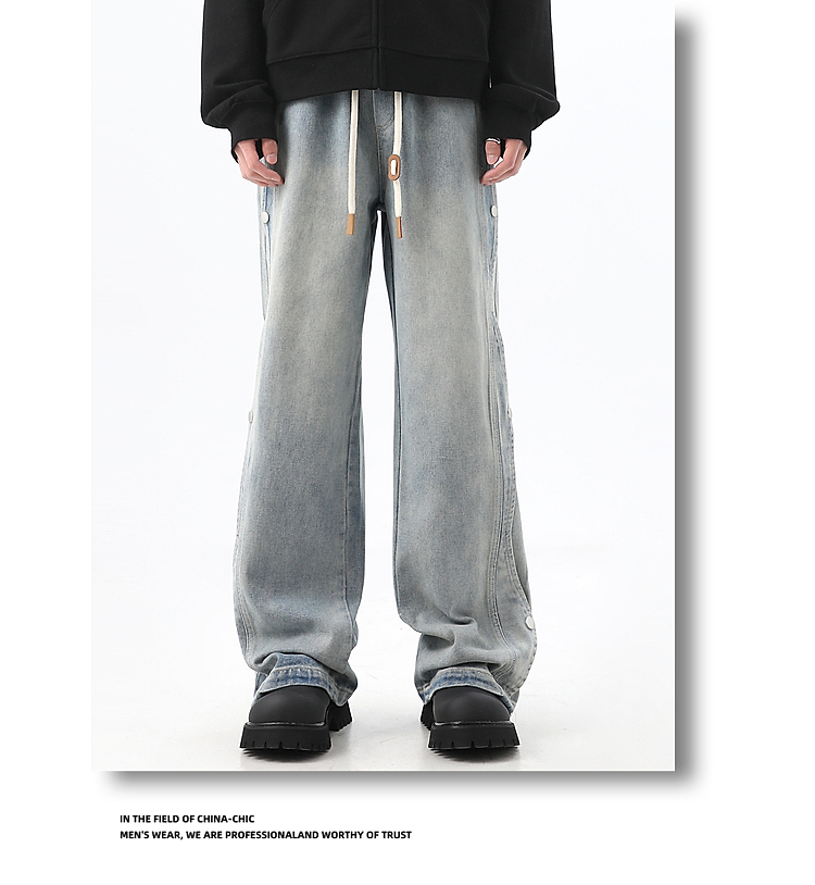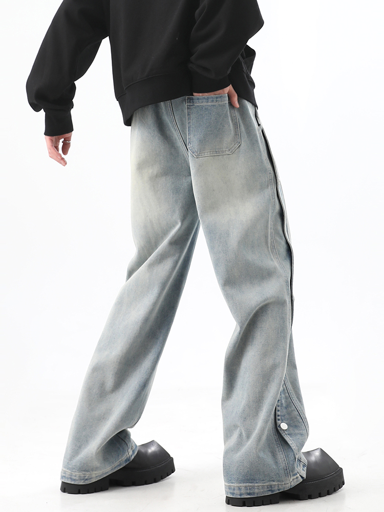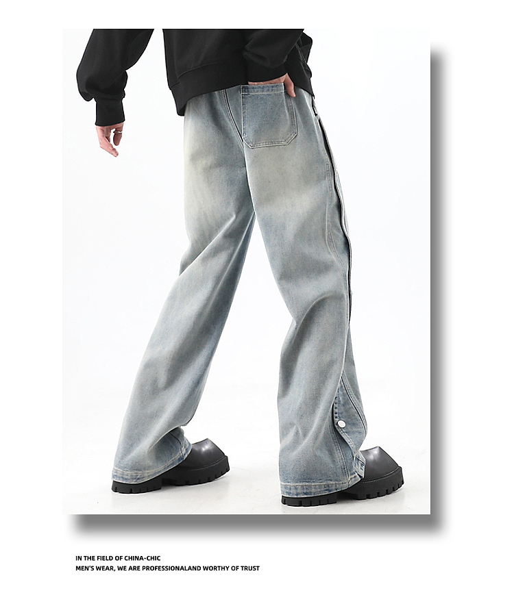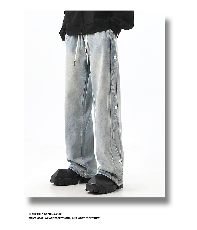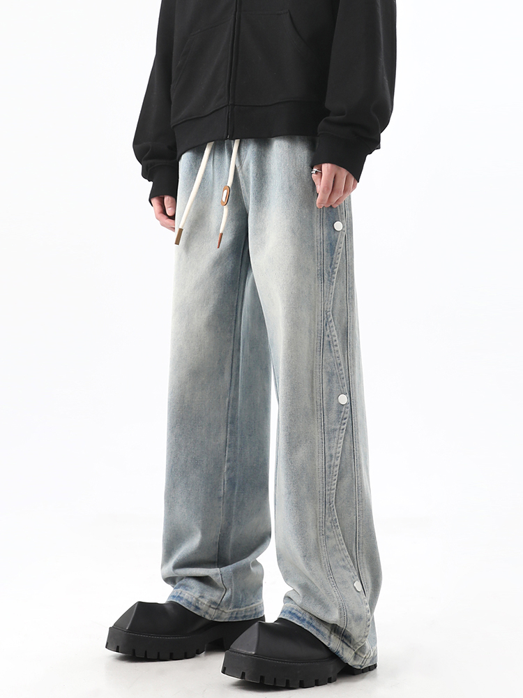 Button-Up Wide-Leg Straight Denim Jeans WN10368