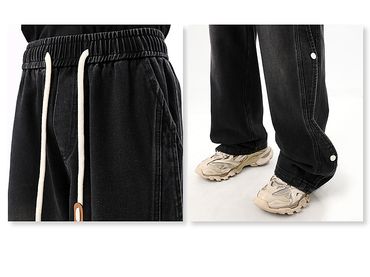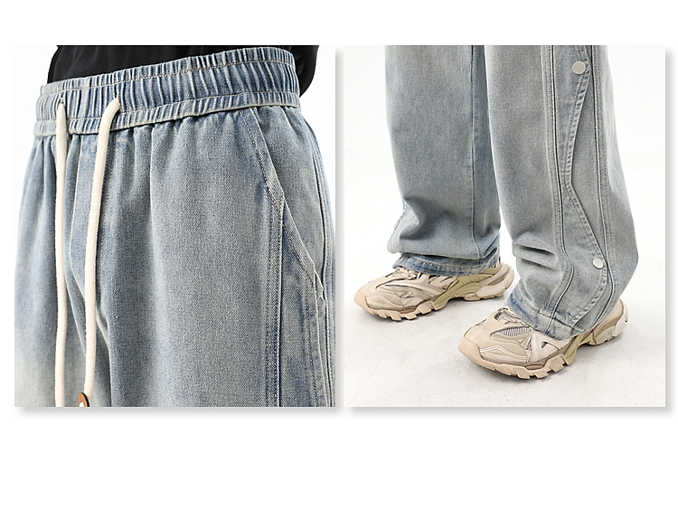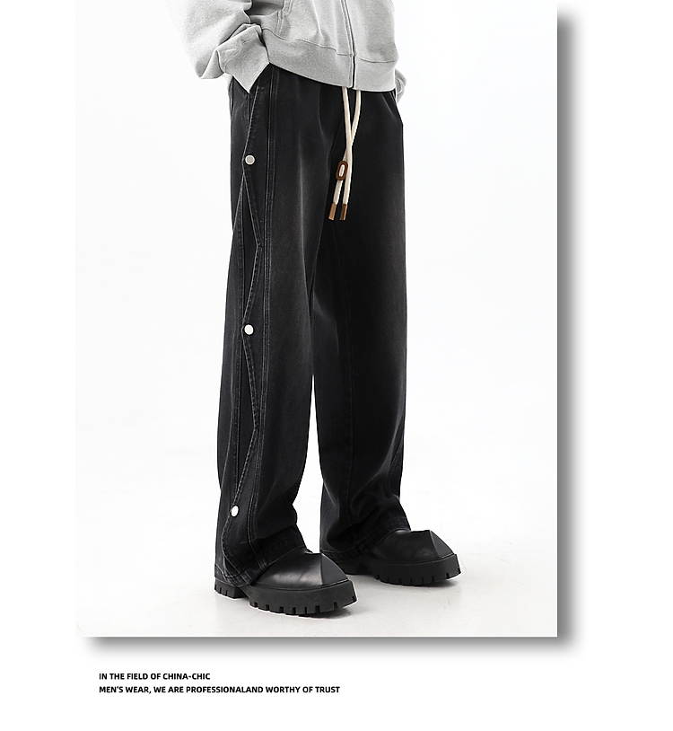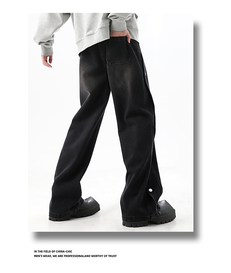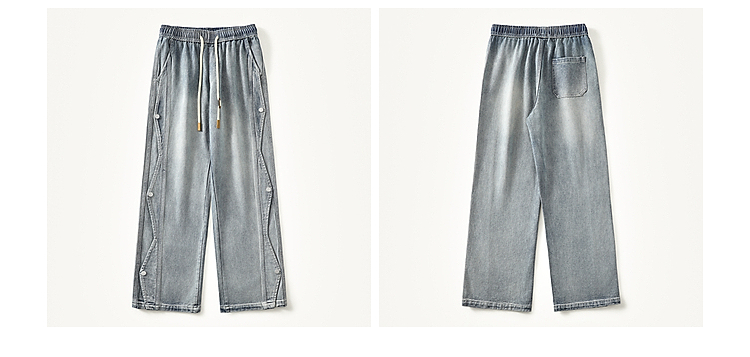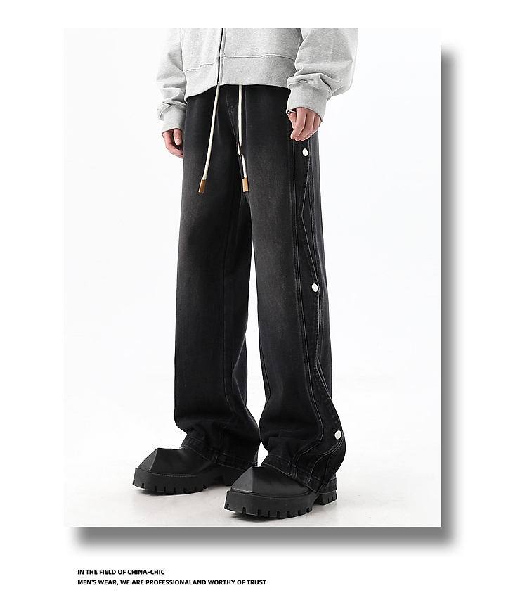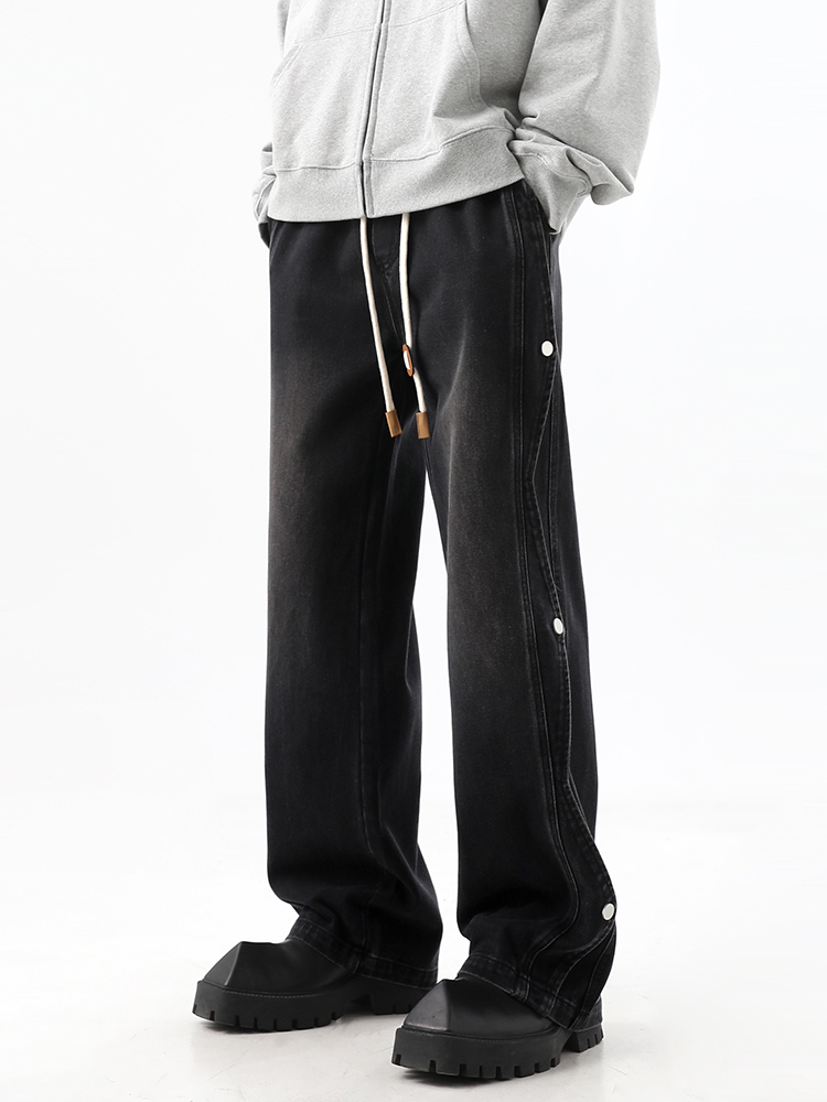 Button-Up Wide-Leg Straight Denim Jeans WN10368