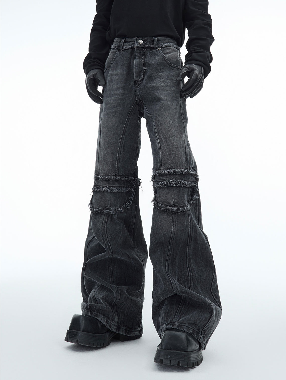 Raw Hem Washed Straight Denim Jeans WN10882