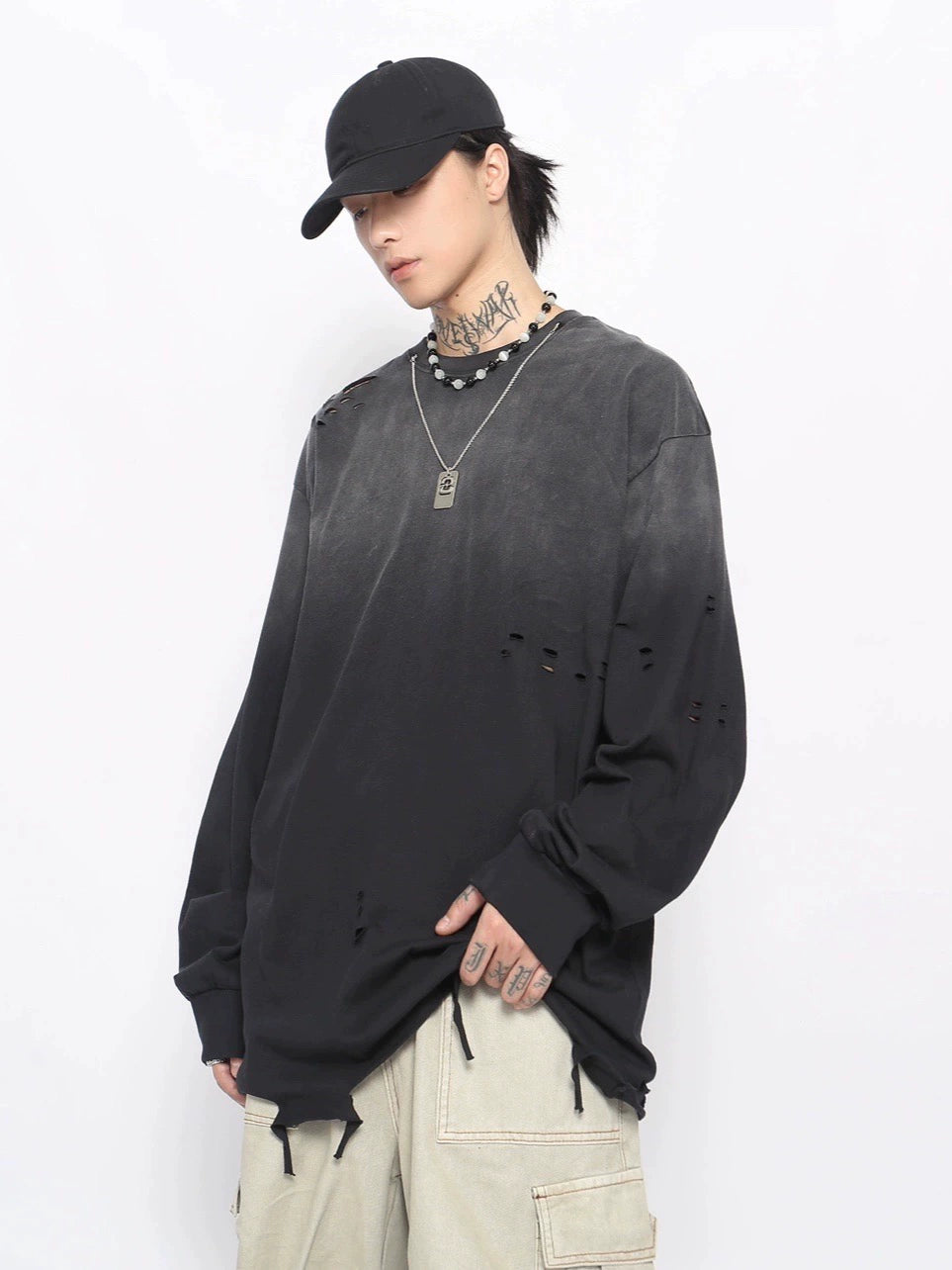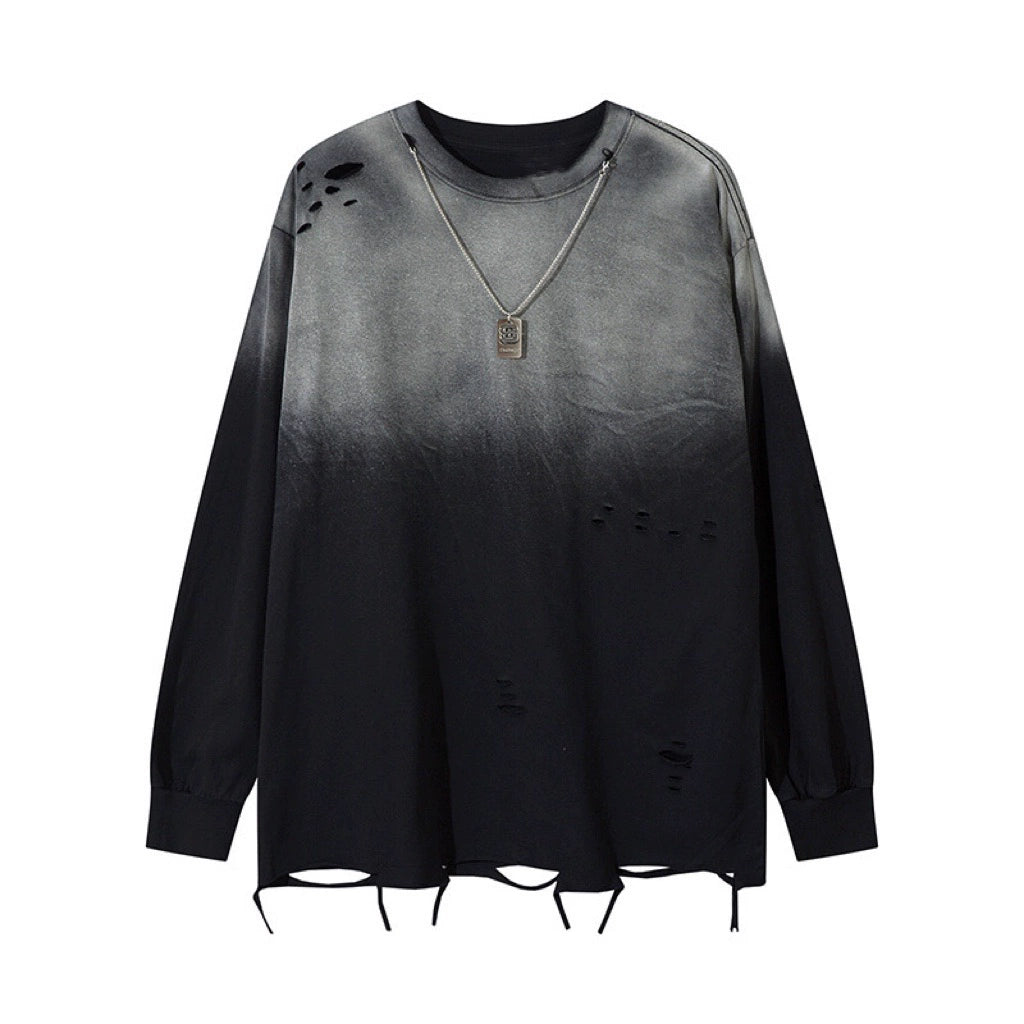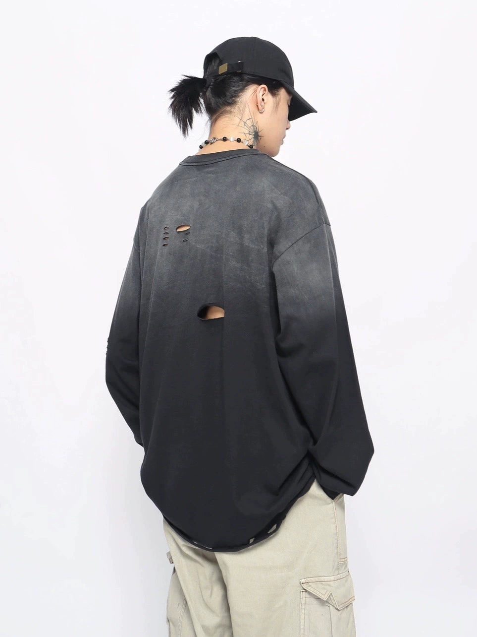 Washed Damage Hem Long Sleeve T-Shirt WN10887