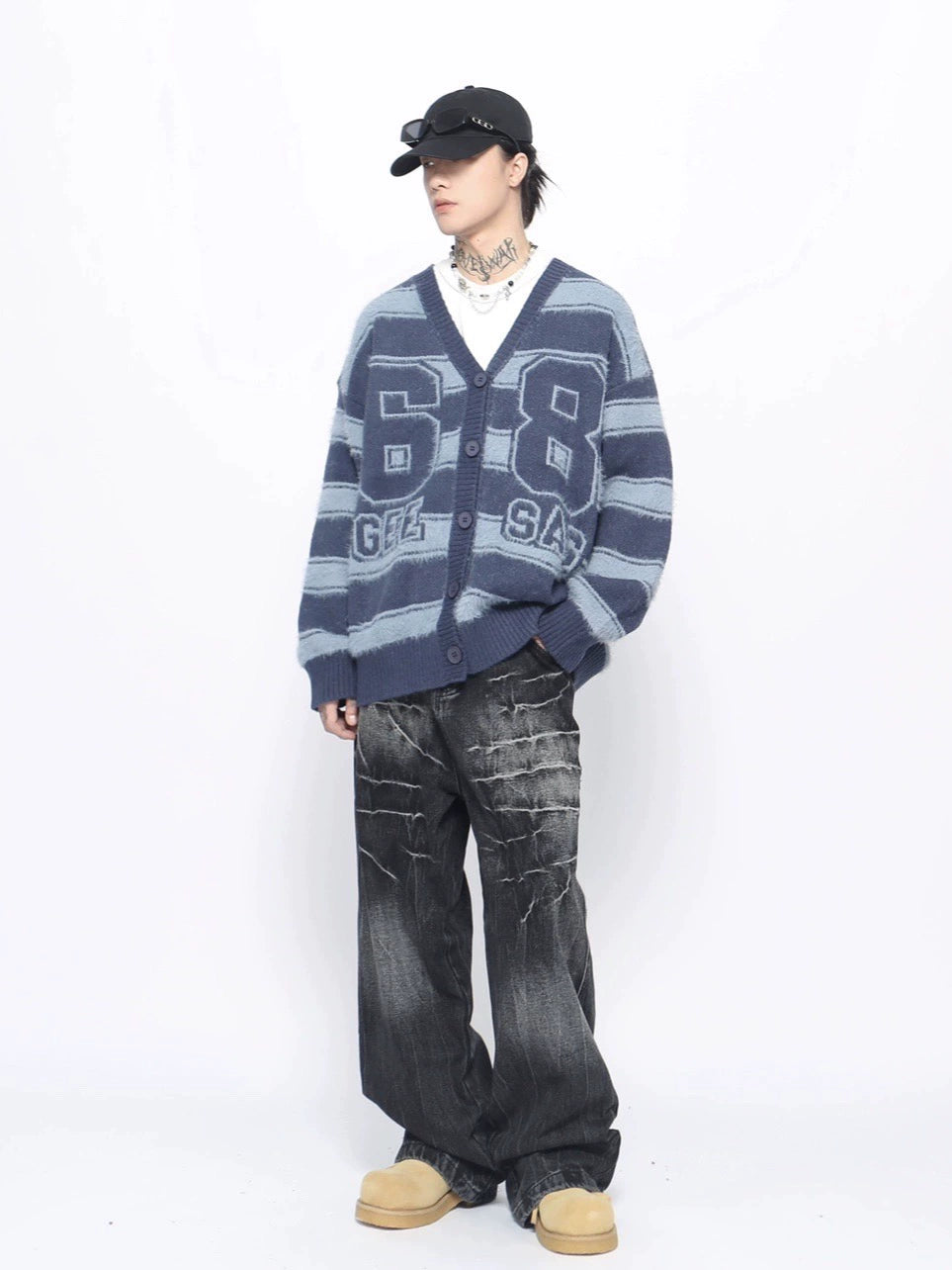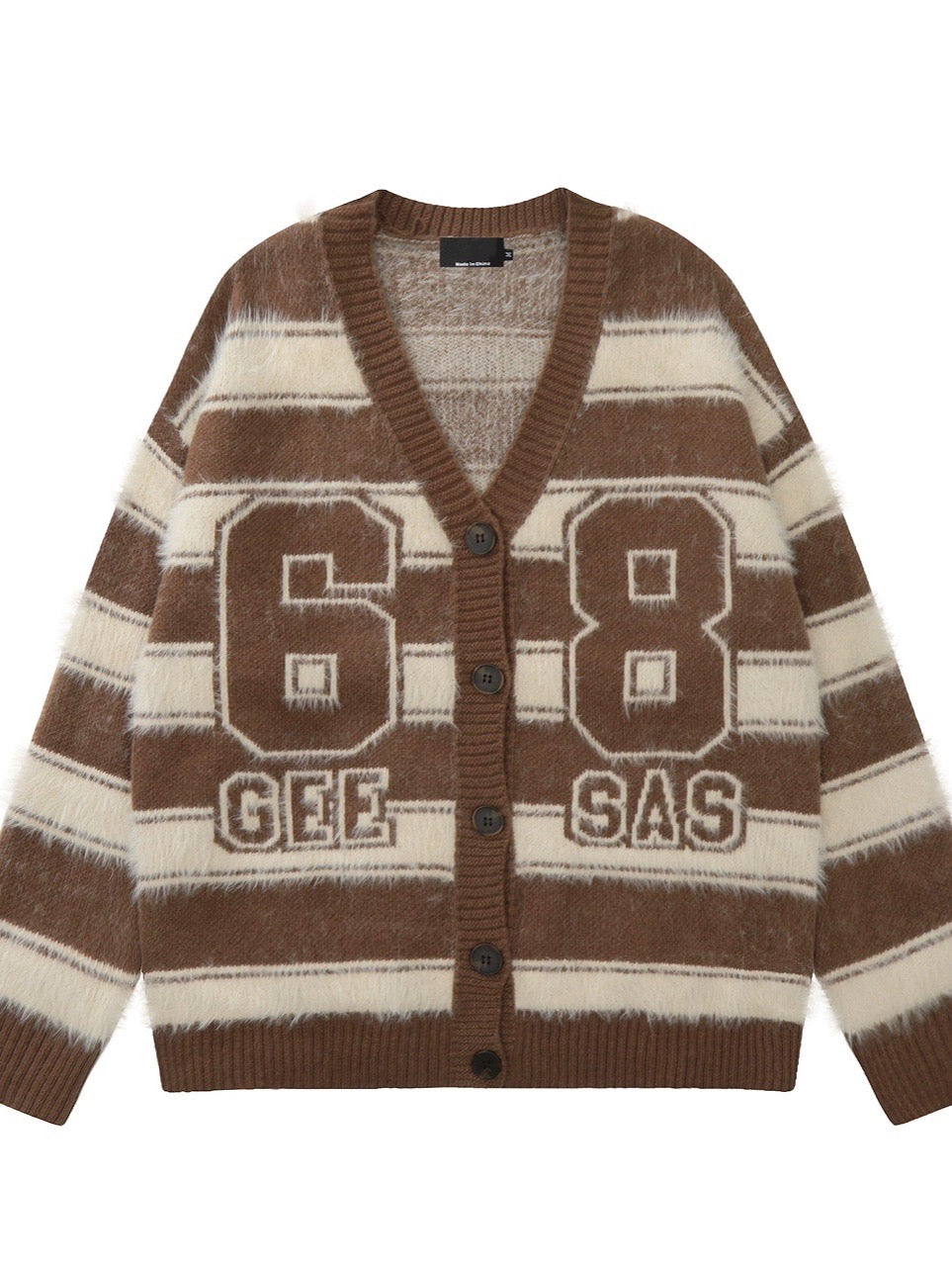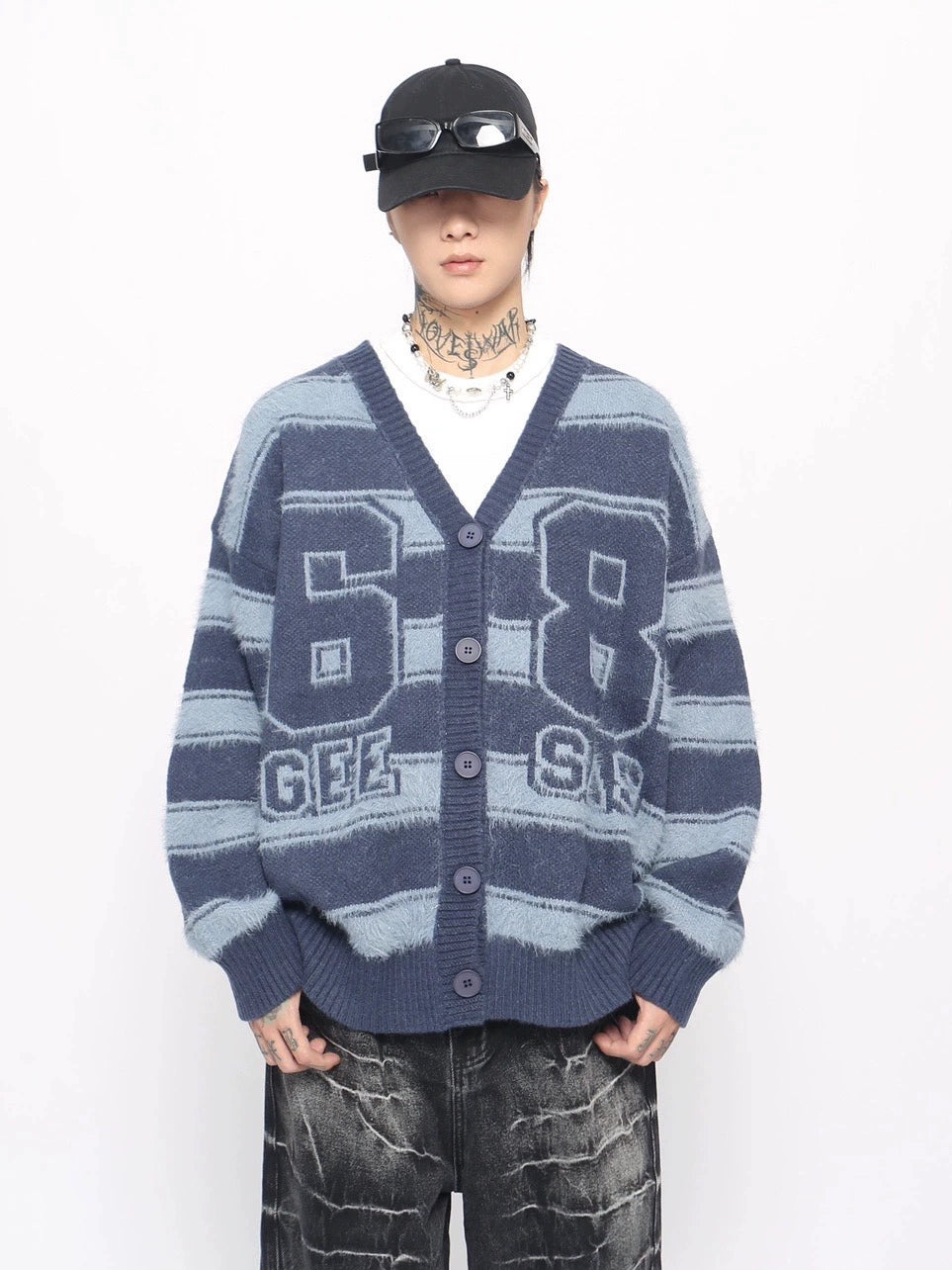 Stripe Oversize V-neck Knit Cardigan WN10895