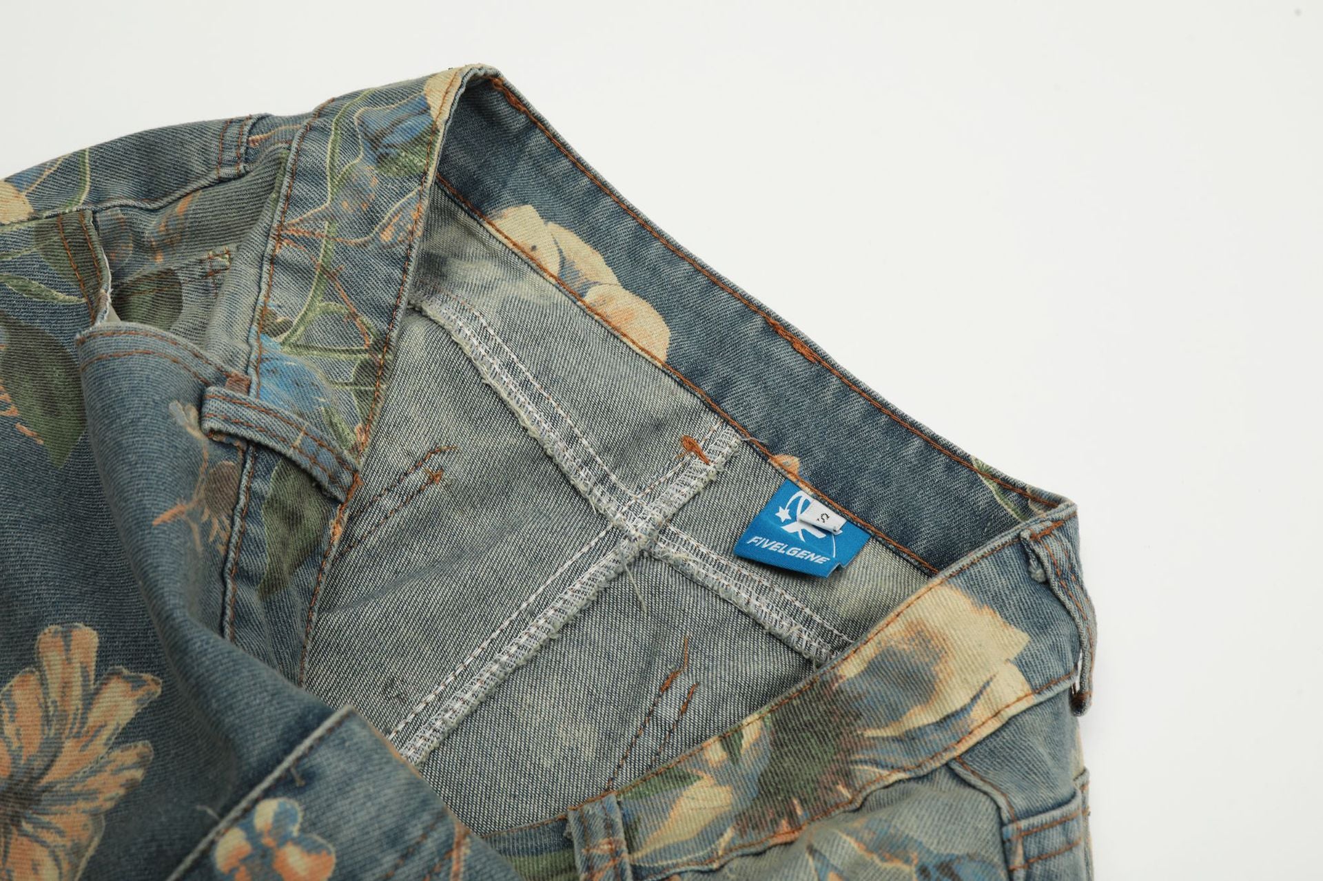 Froral Print Wide-Leg Straight Denim Jeans WN11110