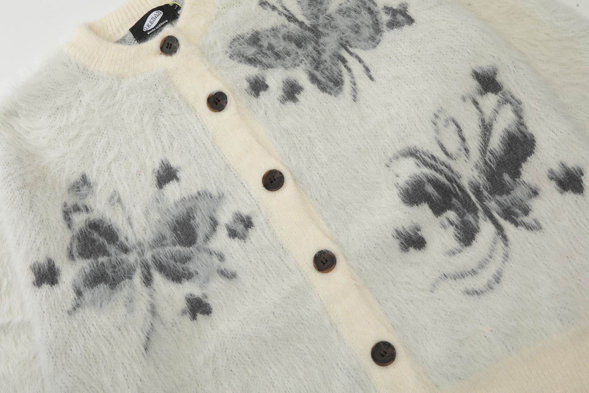 Butterfly Jacquard Fake Mink Knit Cardigan WN11180