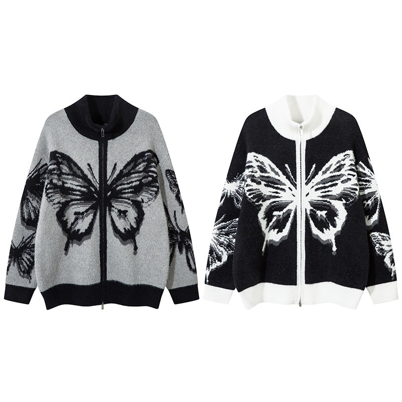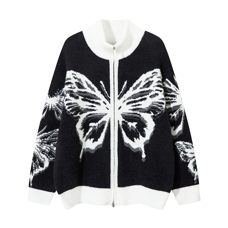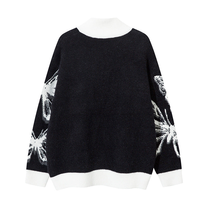 Colorblock Butterfly High-Neck Oversize Knit Cardigan WN11422