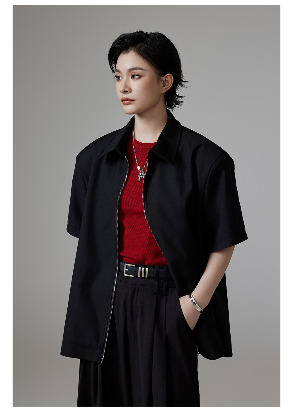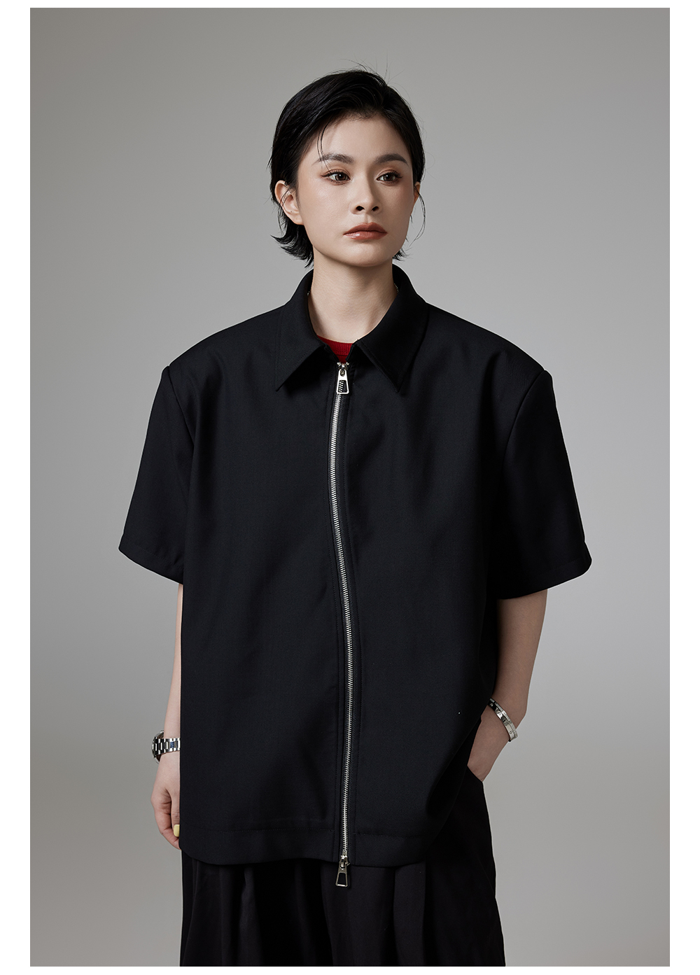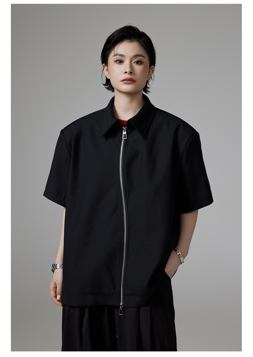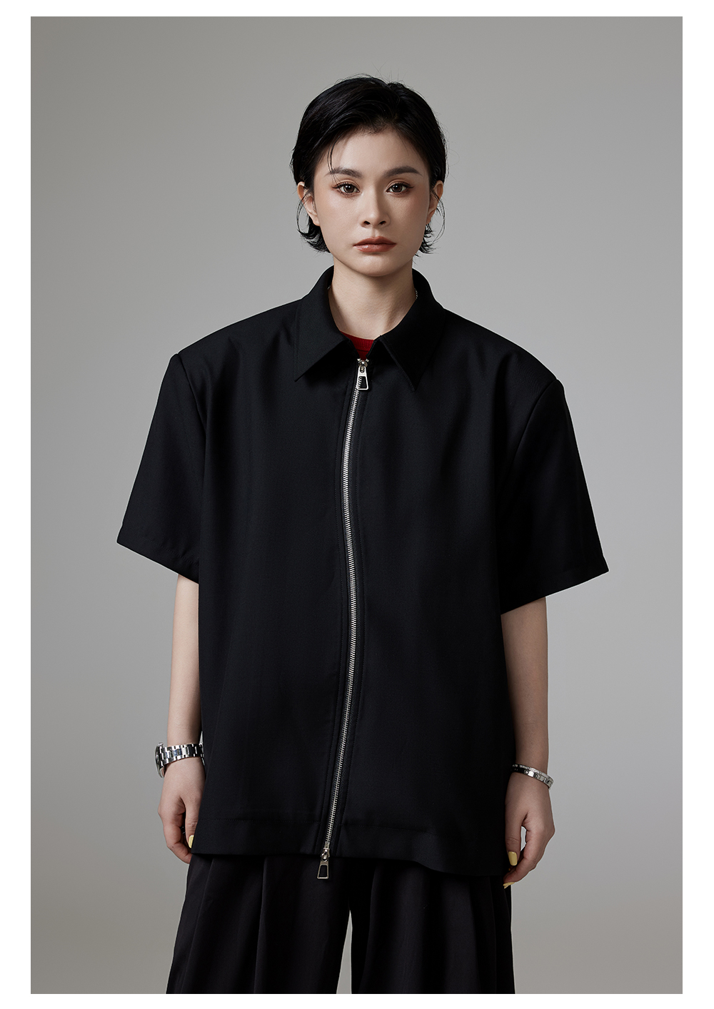 Oversize Stand Neck Zipper Short Sleeve Shirt WN13375