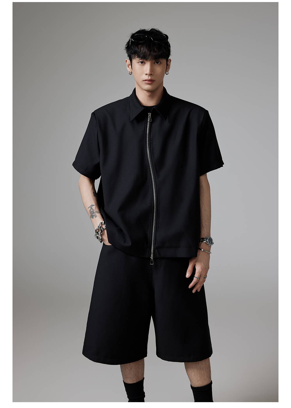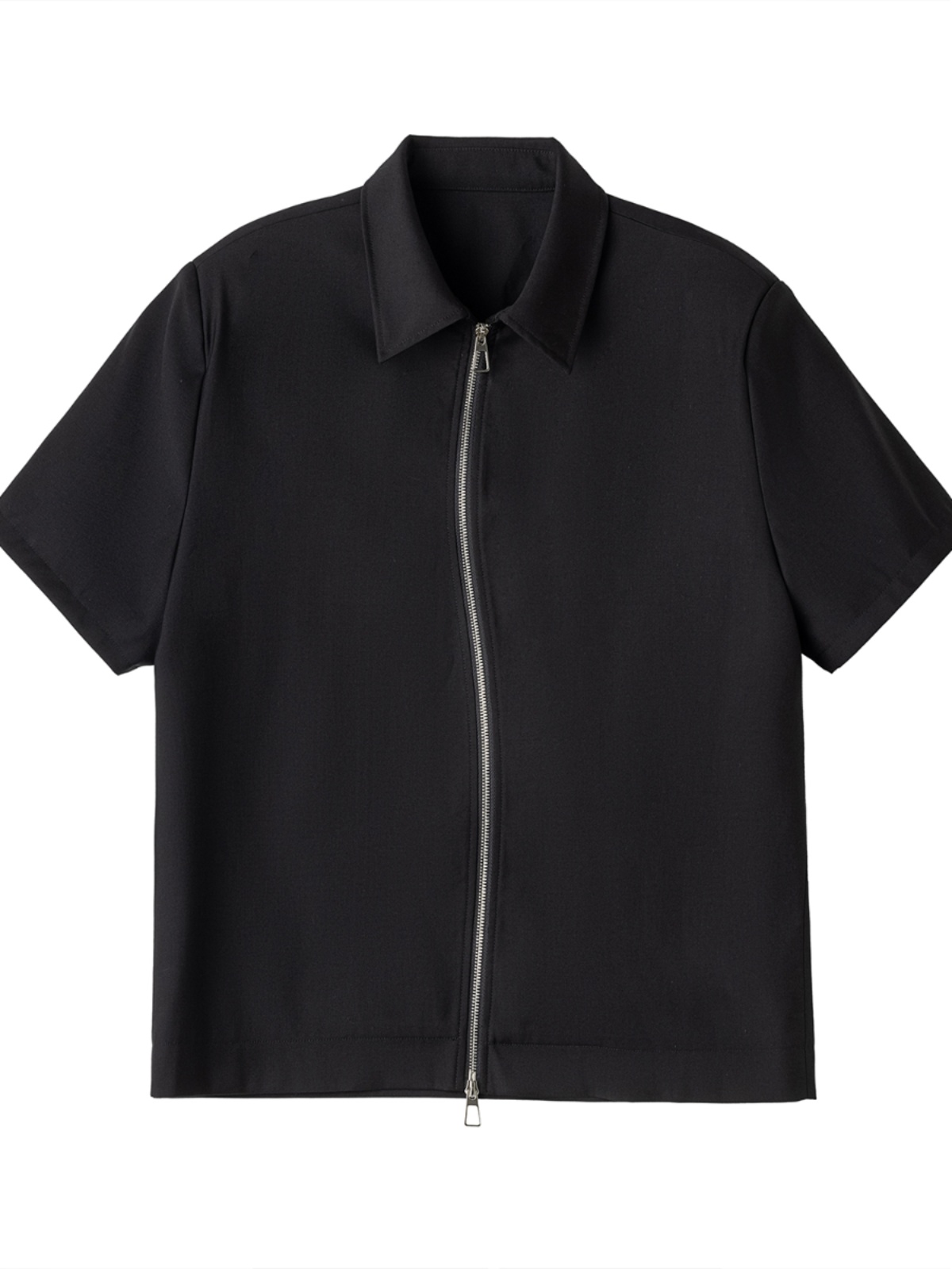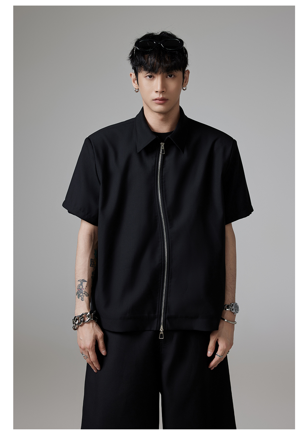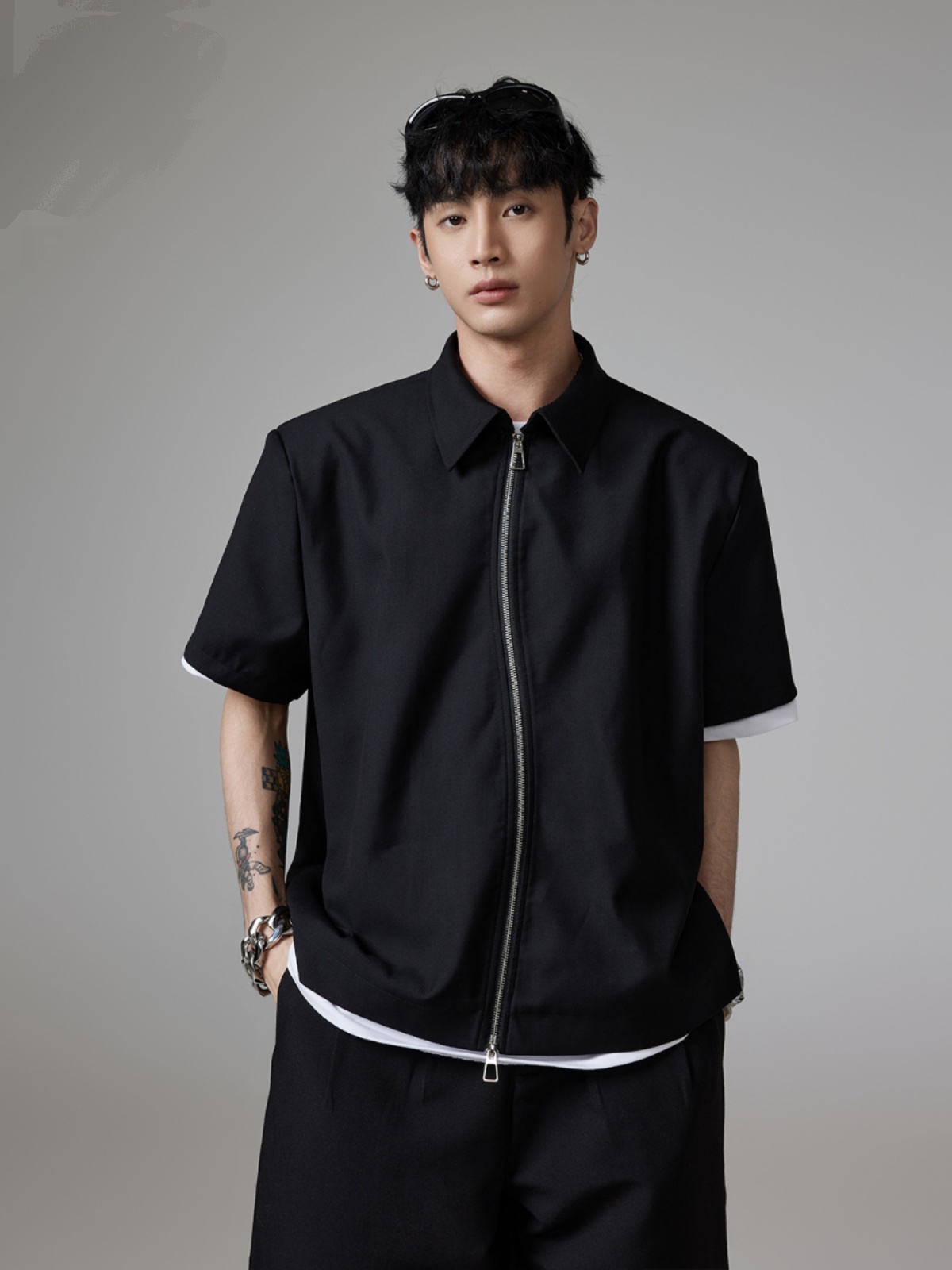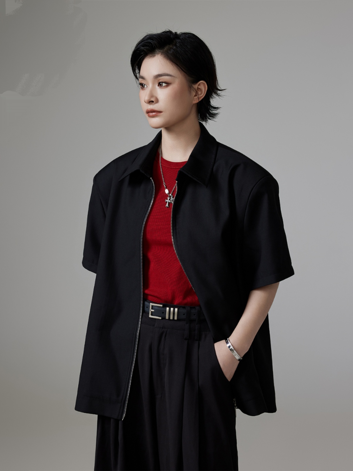 Oversize Stand Neck Zipper Short Sleeve Shirt WN13375