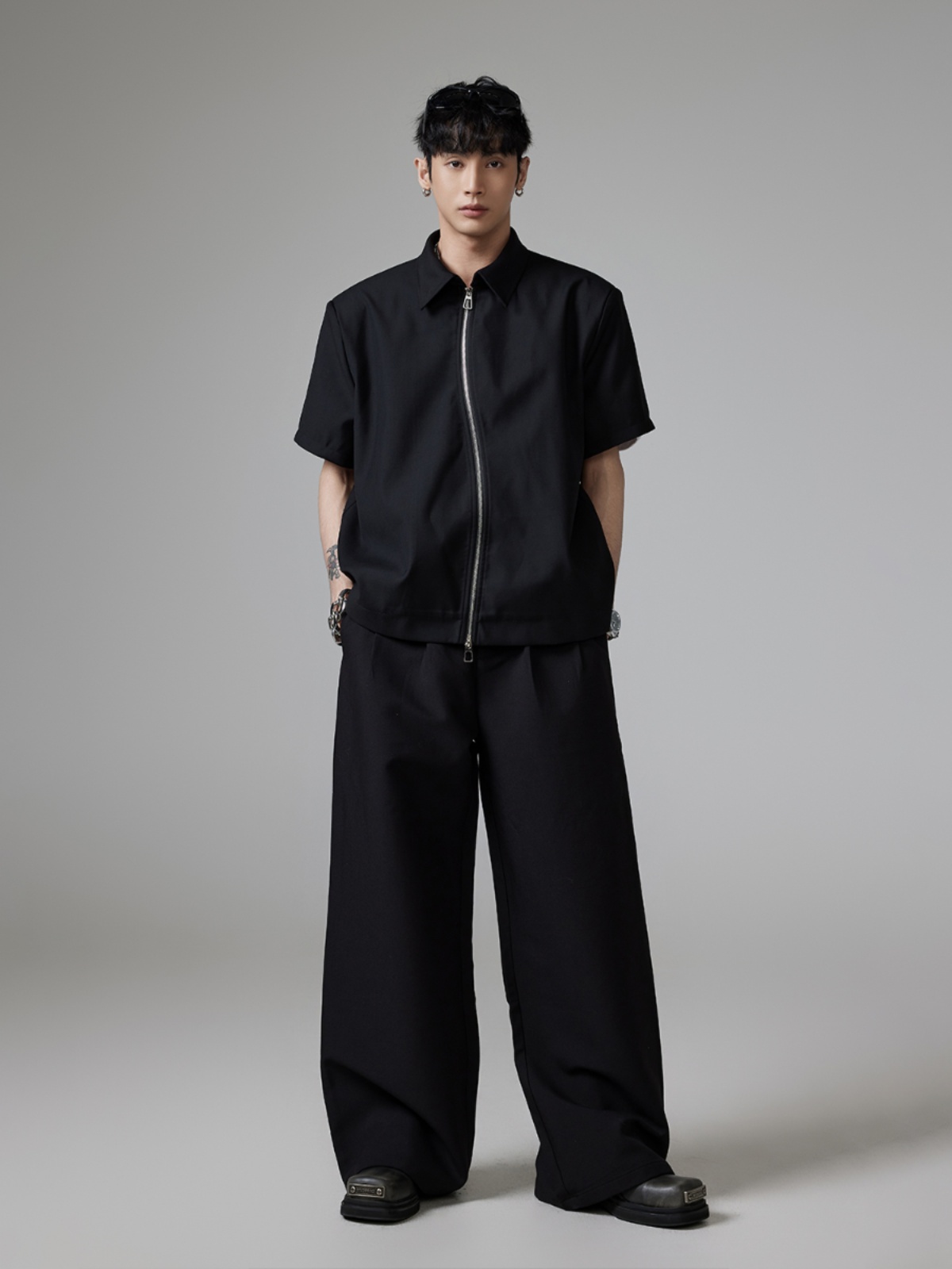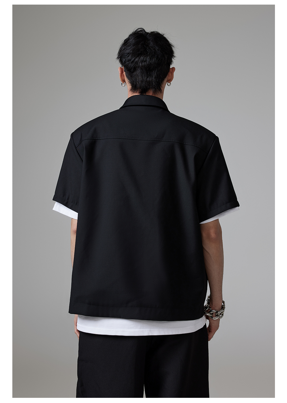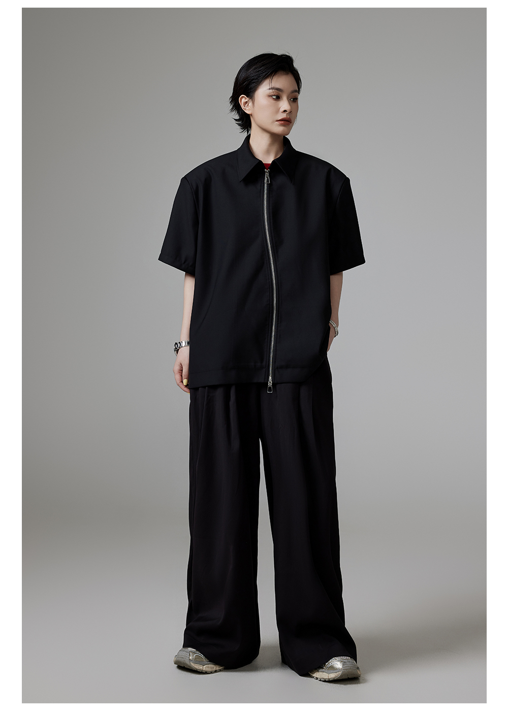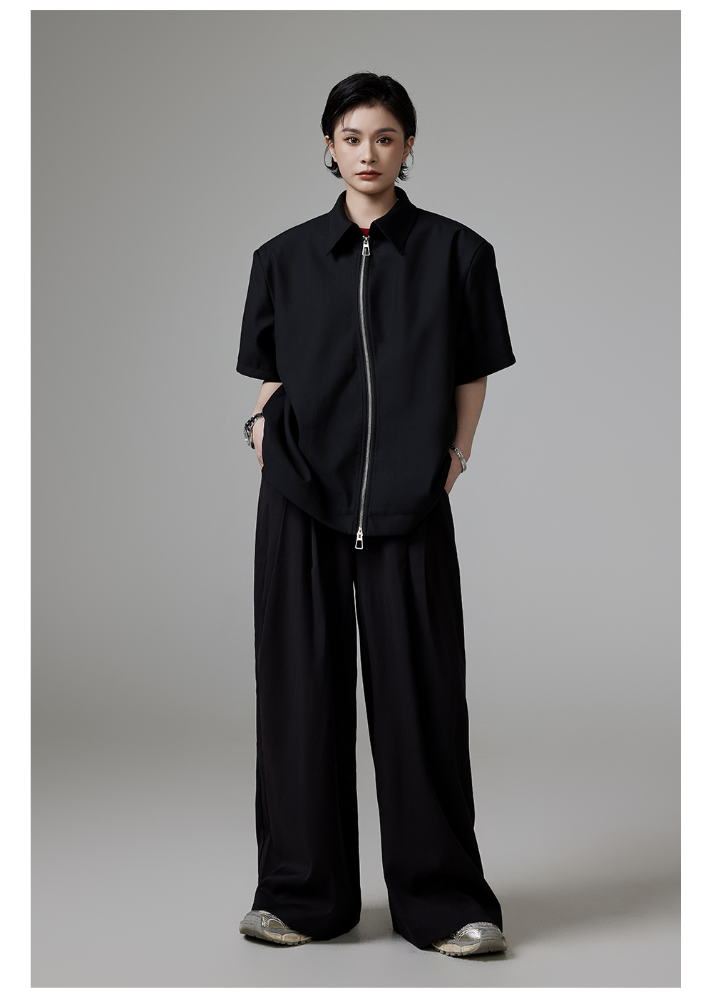 Oversize Stand Neck Zipper Short Sleeve Shirt WN13375