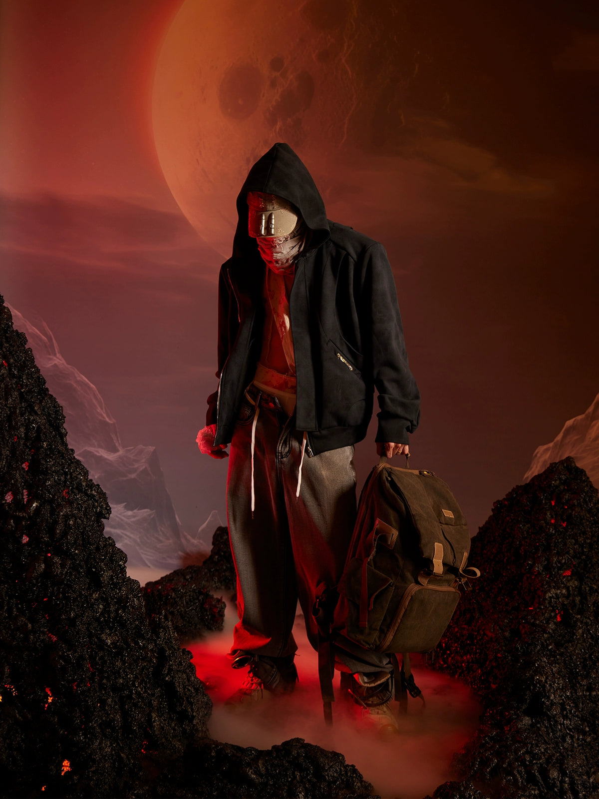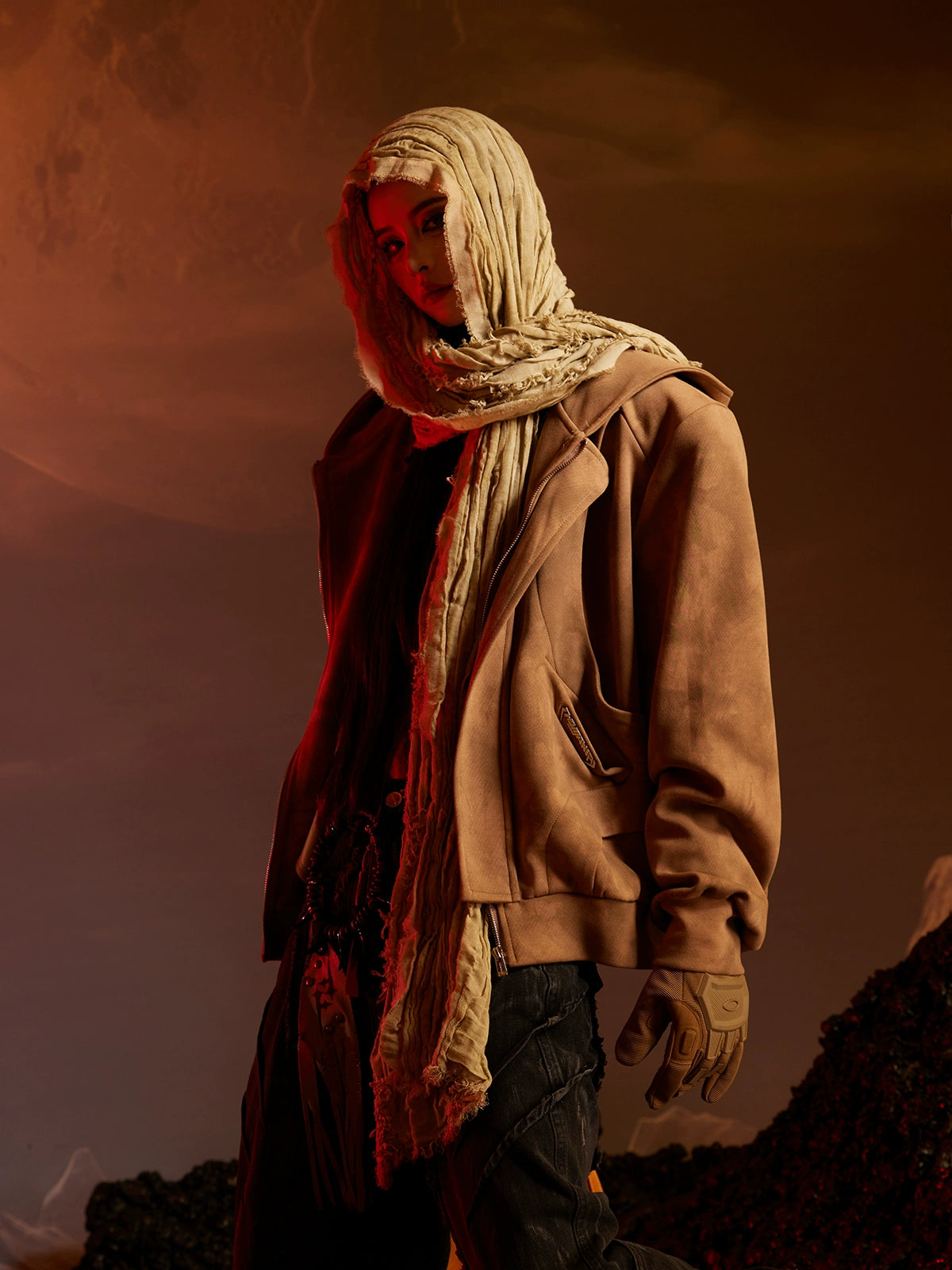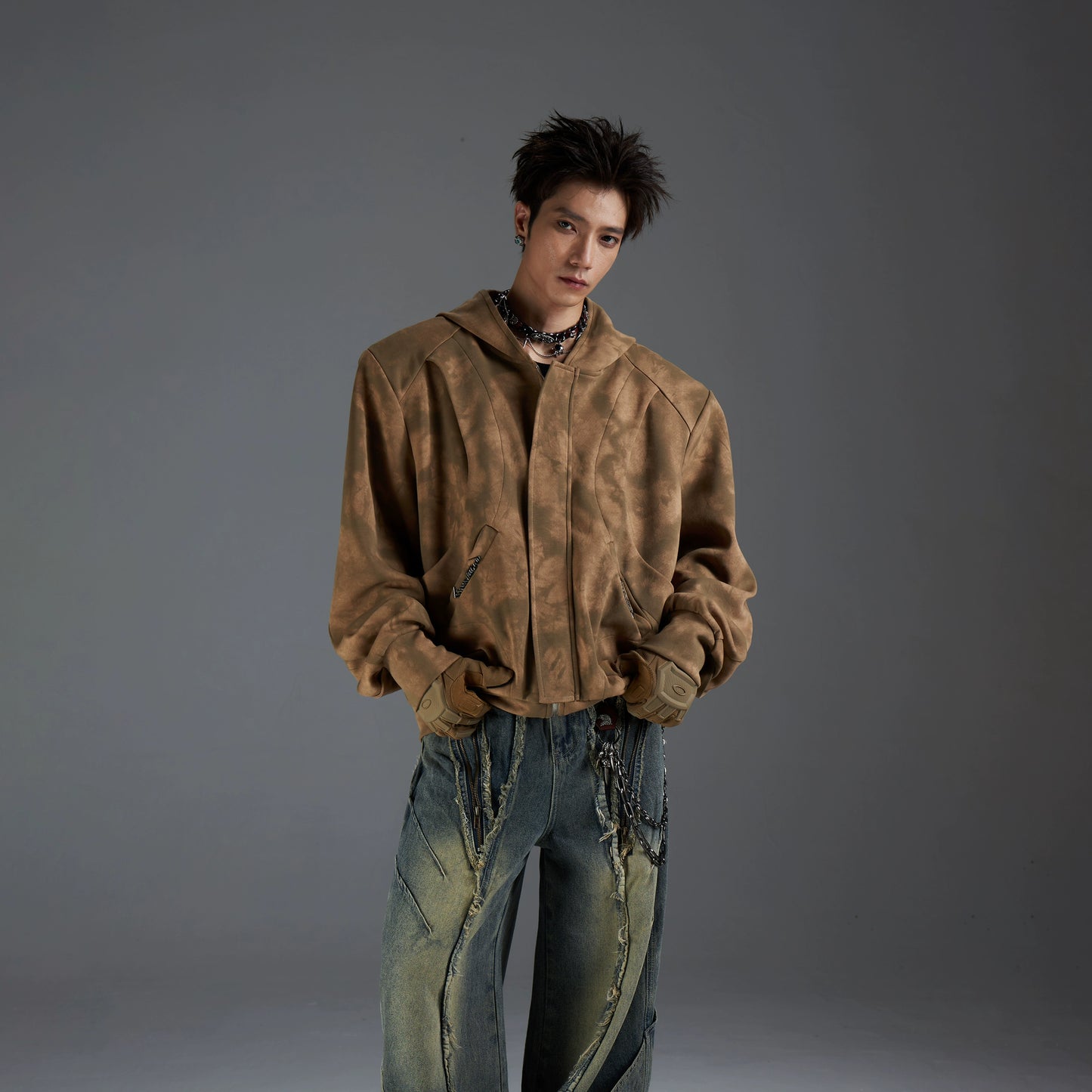 Heavy-Duty Washed Zipper Hooded Jacket WN13512
