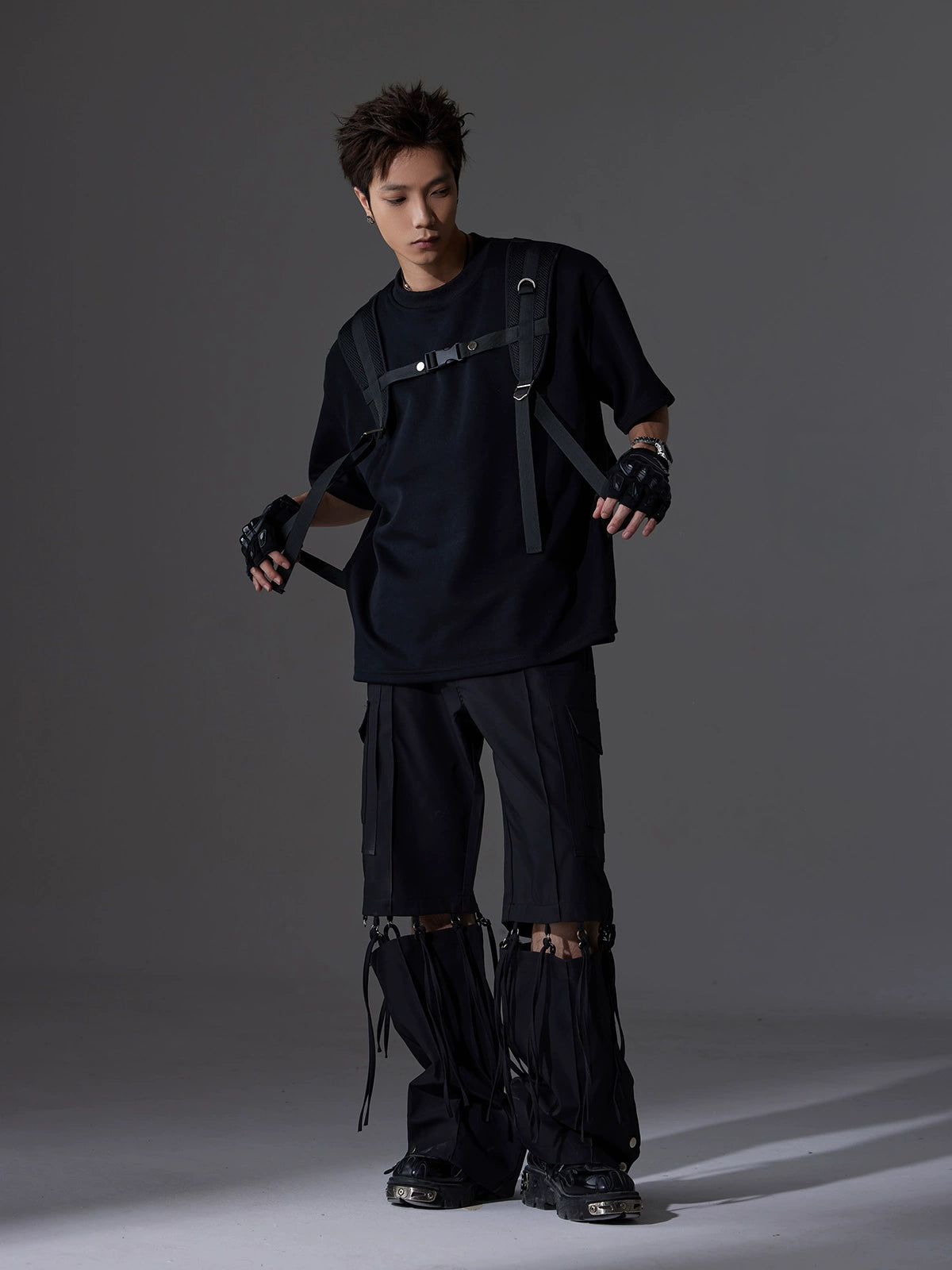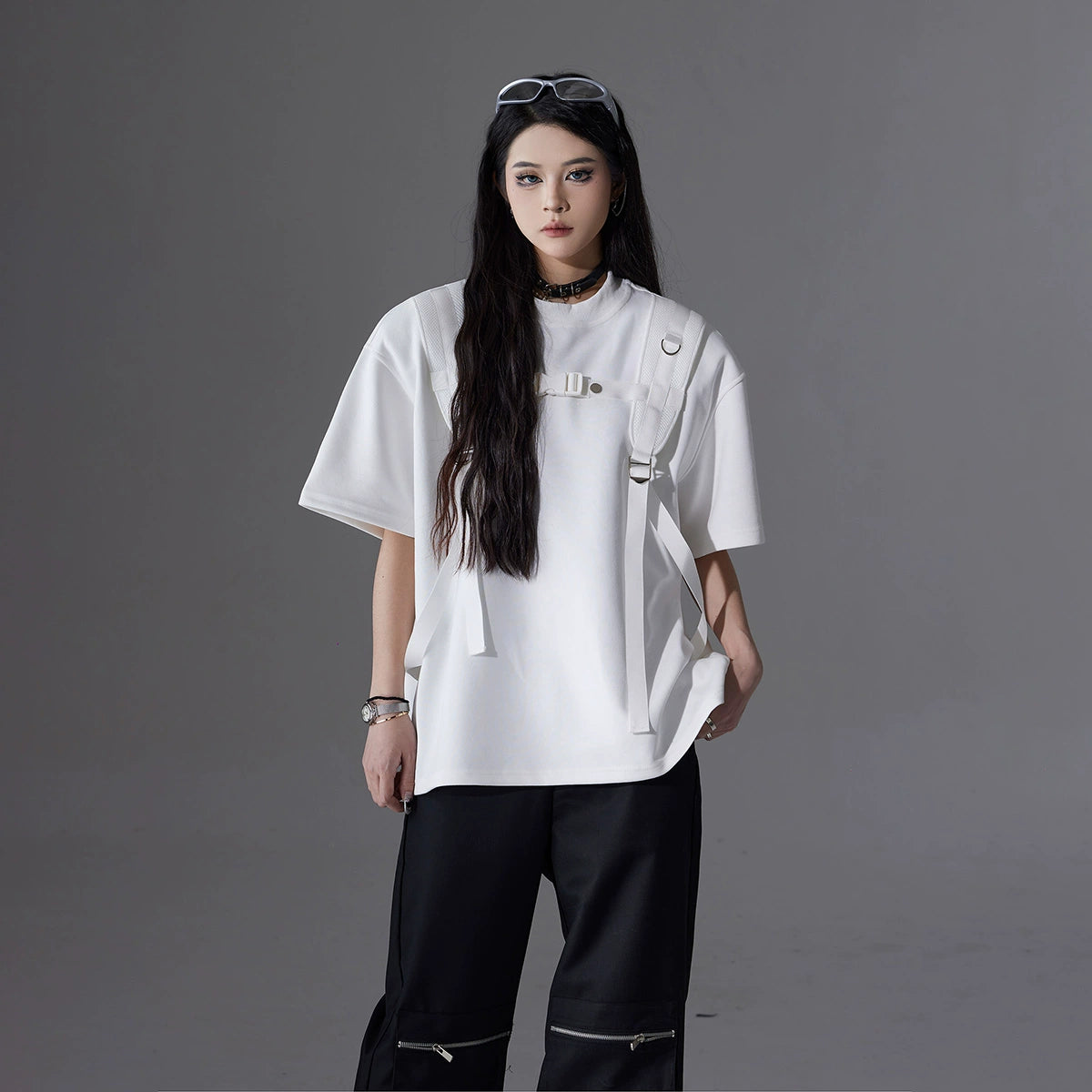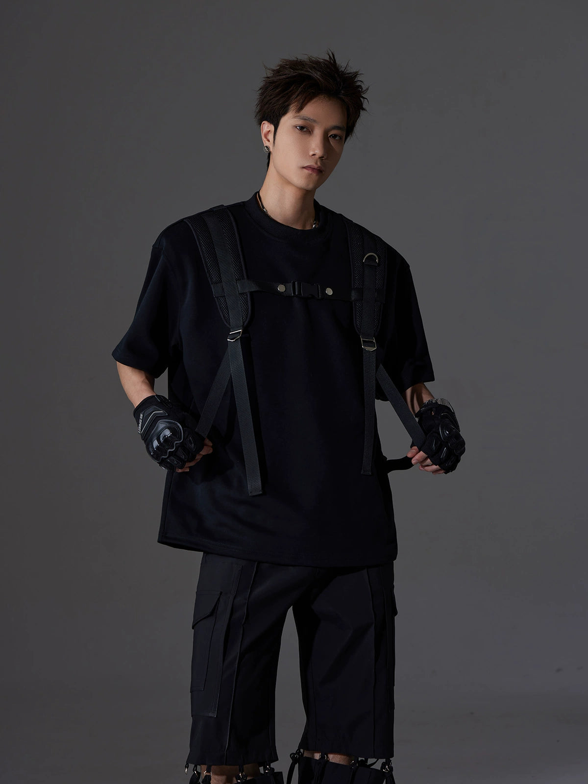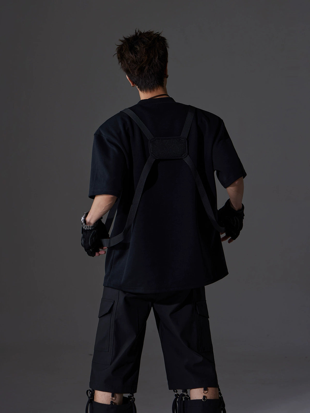 Backpack Strap Patchwork Short Sleeve T-Shirt WN13582