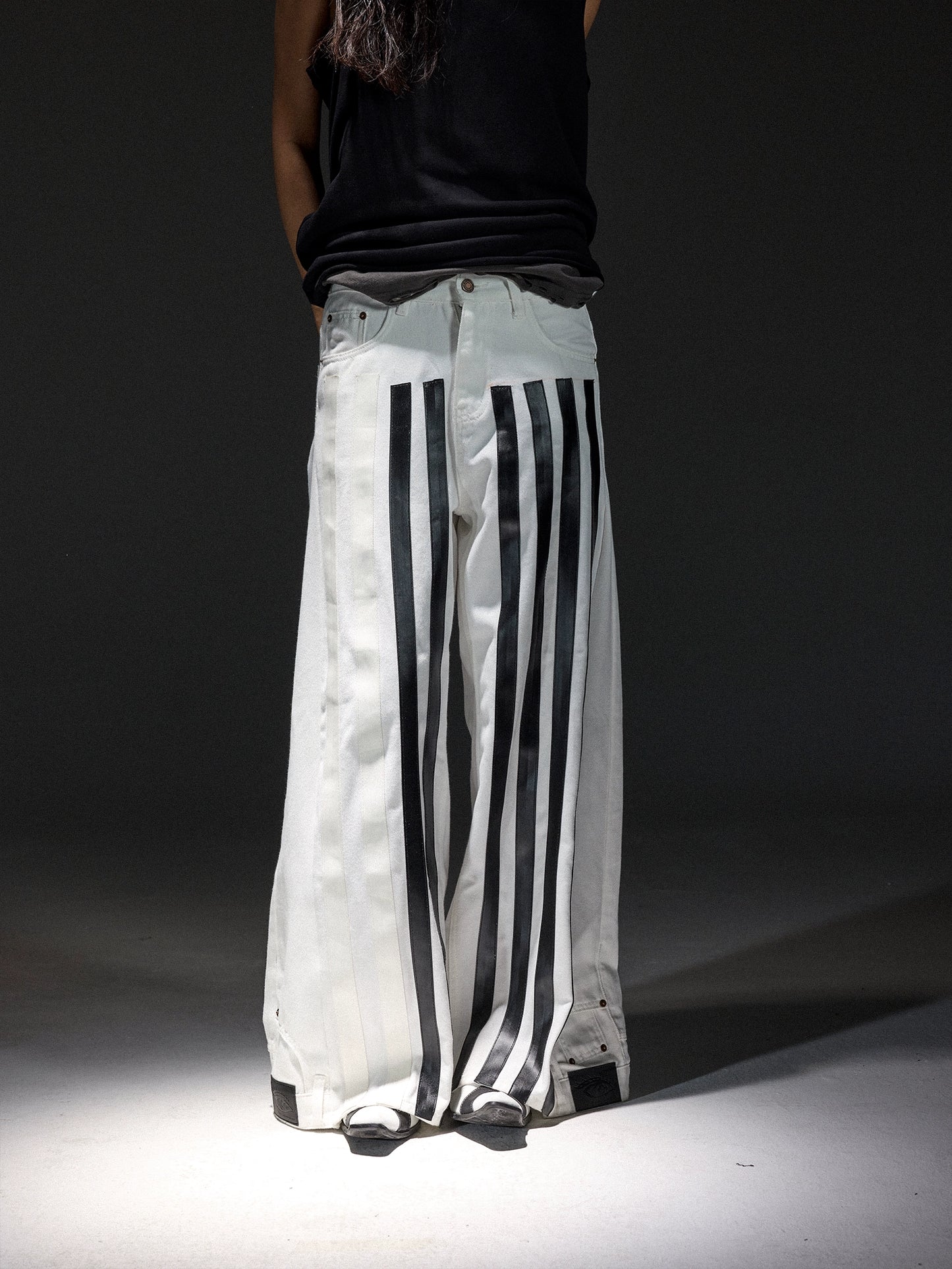 Stripe Zipper Hoodie & Line Design Denim Jeans Setup WN13678