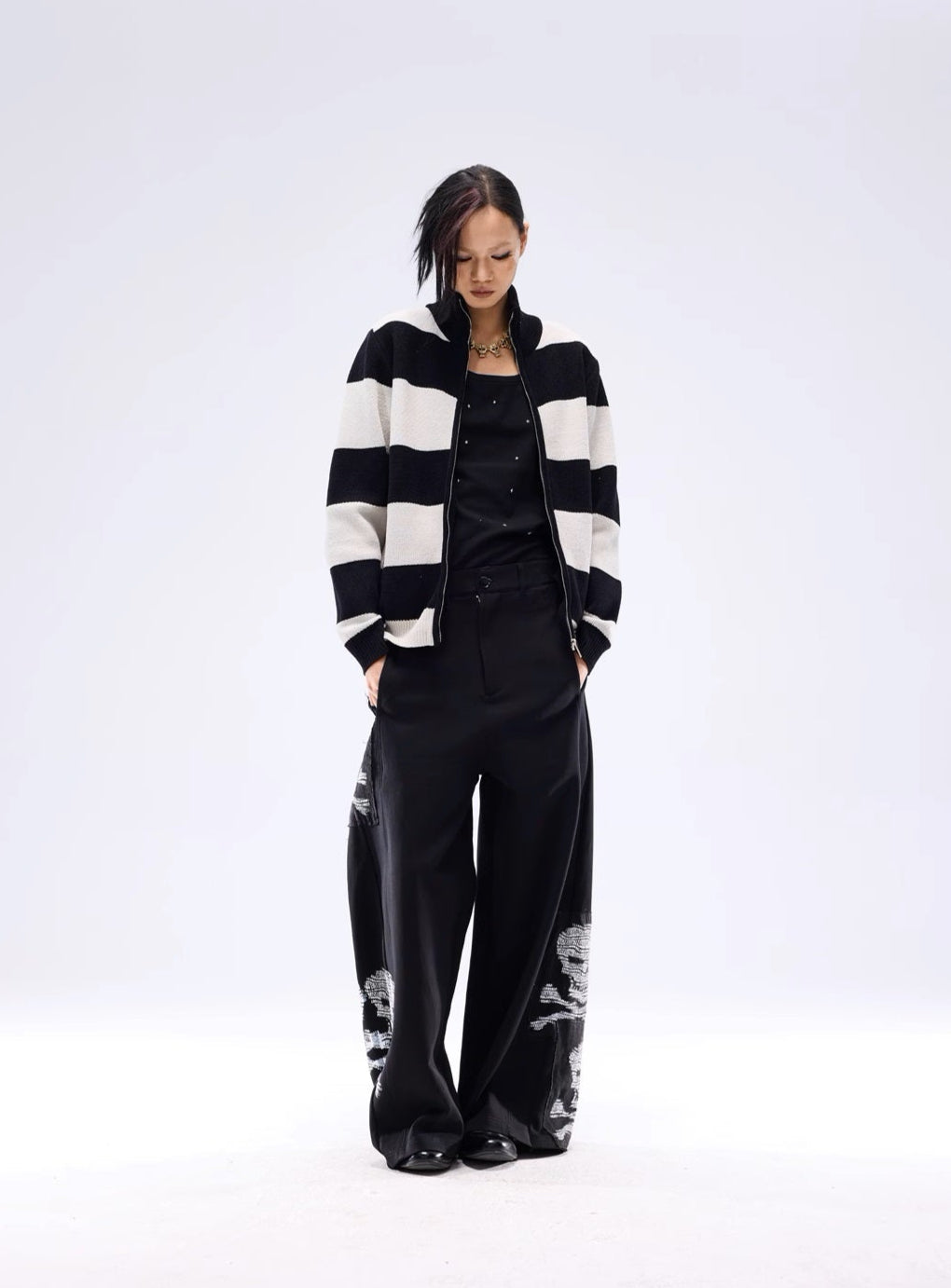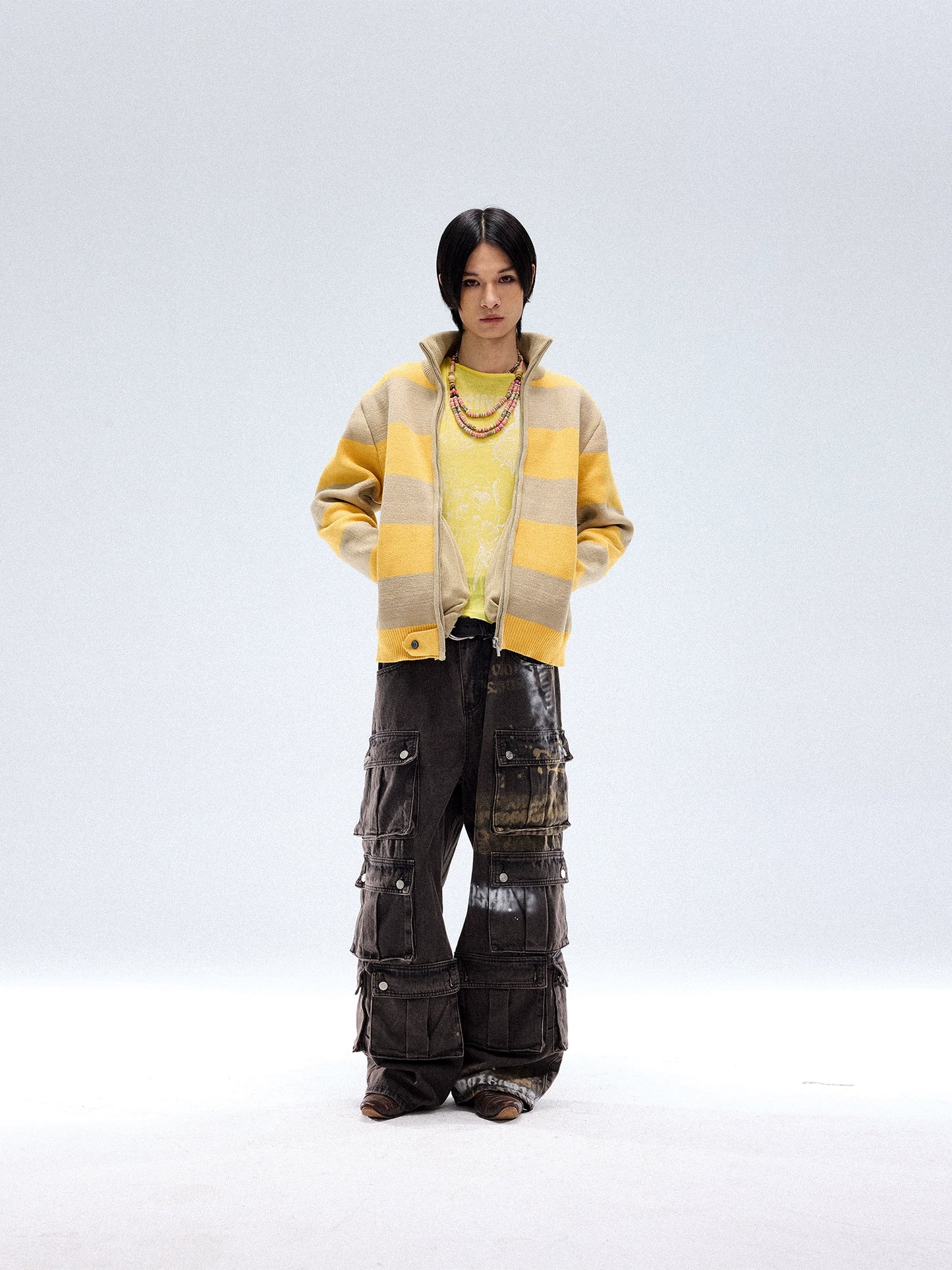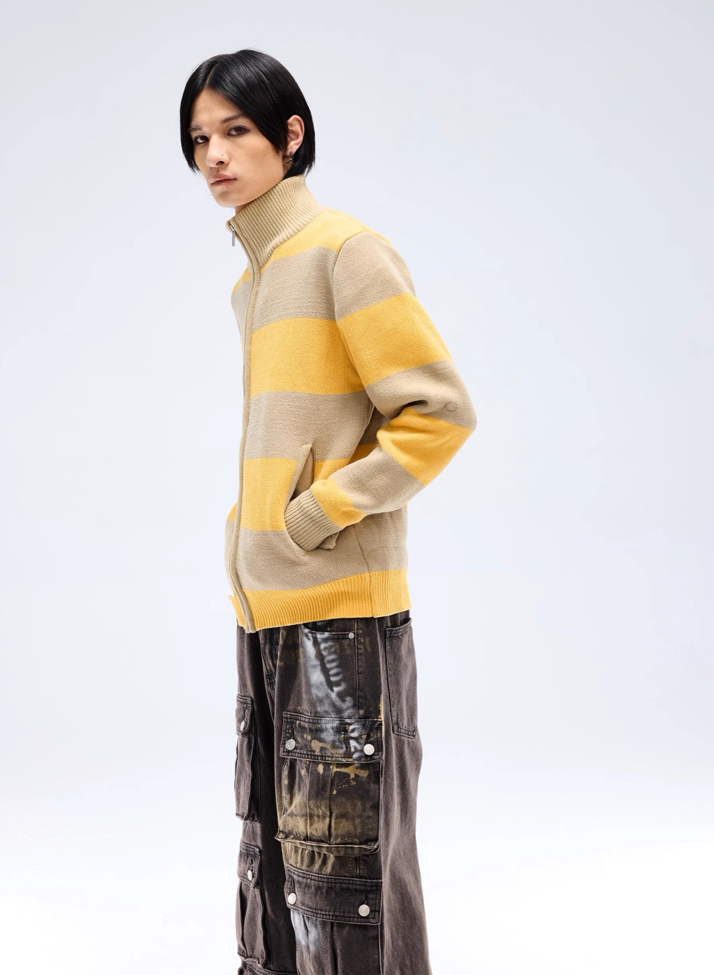 Stripe Soft Zipper Knit Cardigan WN13683