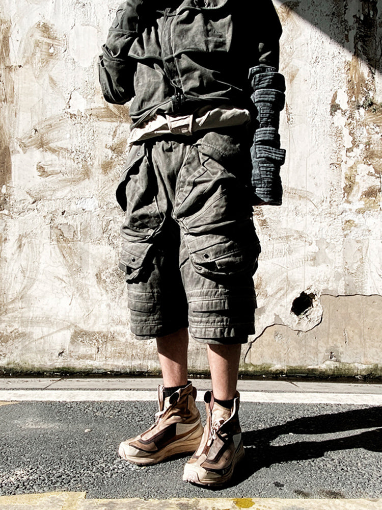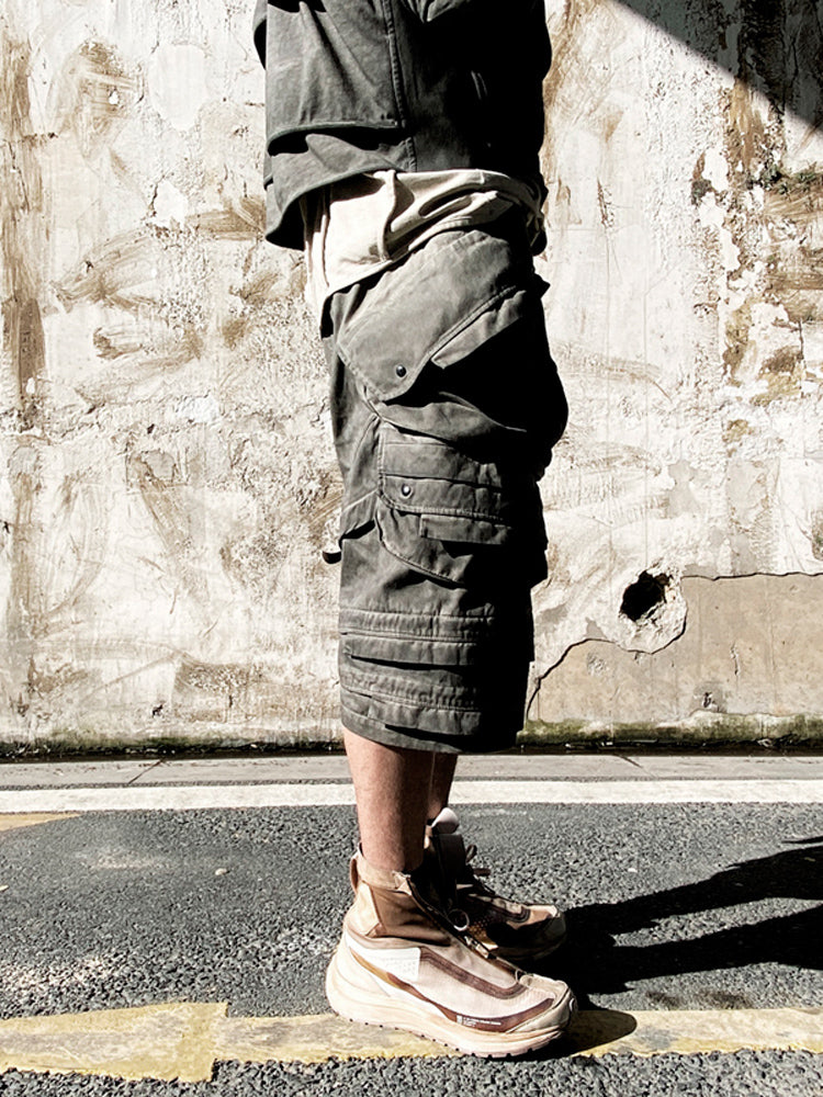 Heavy-Duty Washed Pleats 3D-Pocket Cropped Cargo Pants WN13818