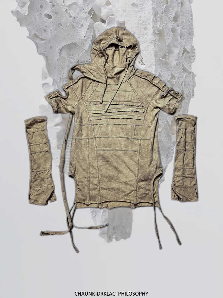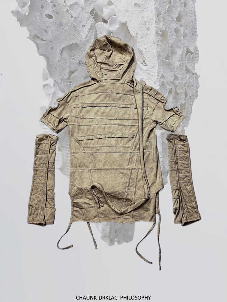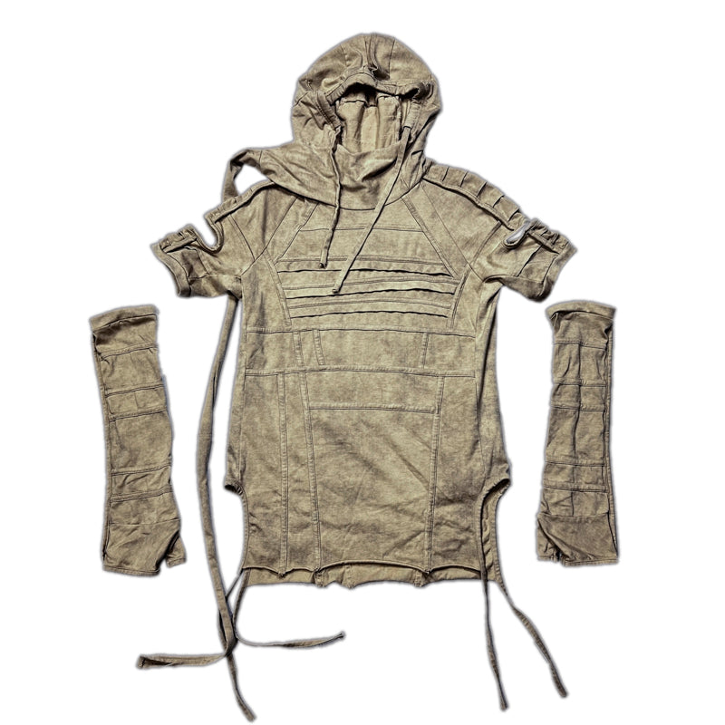 Hooded Wax-Dyed Washed Sleeve-Layered Short Sleeve T-Shirt WN13820