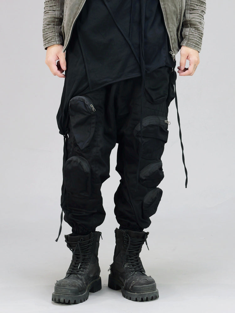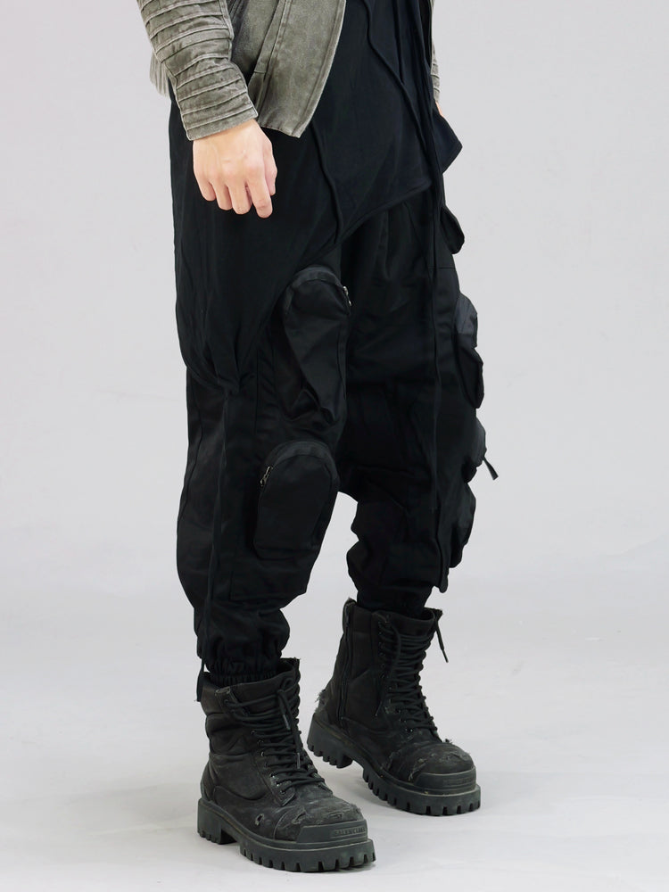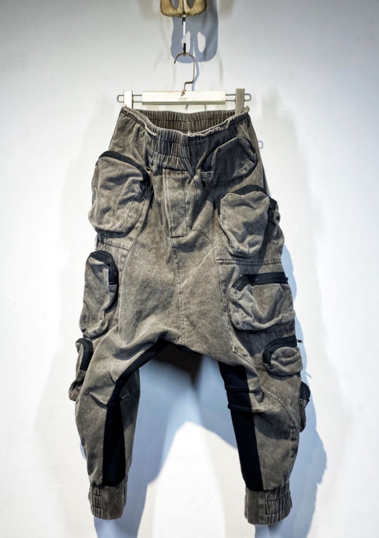 Asymmetric Multi-Pocket Cropped Tapered Cargo Pants WN13935